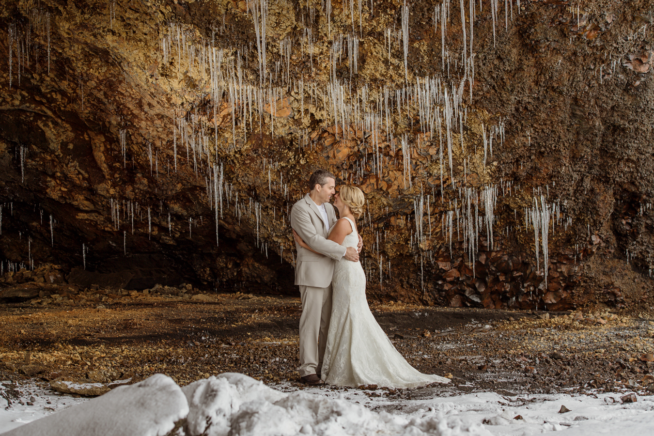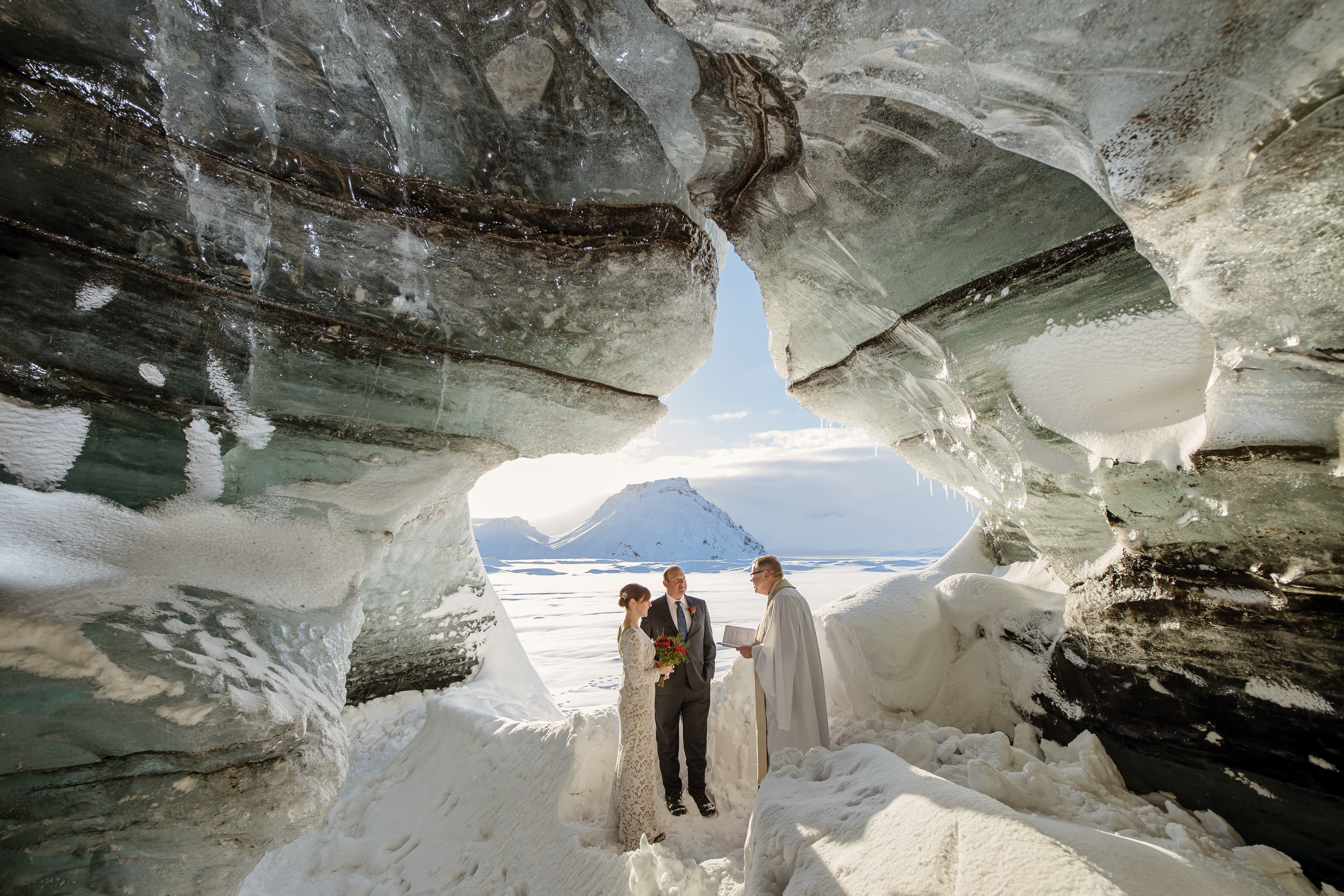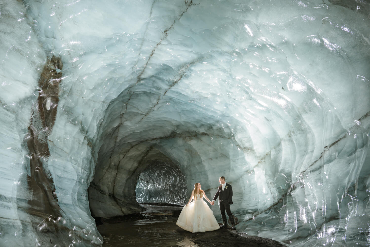 Winter in Iceland is an enchanted time of the year to visit and get married! However, we typically do not take on weddings in Iceland between mid-November to January because of the amount of daylight (we need more to adventure in!) and the super bad weather. Our ideal winter wedding season is between February to March. This is when the Northern Lights are strongest and when there are more ice caves than we can count to explore! Check out more of our amazing Iceland winter weddings!