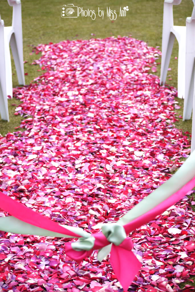 Our biggest and most important detail hurdle was that we wanted over a 30 x 4 foot rose petal isle that was very dense with a very specific shade of pink (In my opinion, wedding colors are uber important for photographs!). So that means I had to order 8 cups per square foot of my isle (see a helpful petal calculator here). The Icelandic florists quoted me over $2,000 USD and they could only promise white petals and not my shade of pink. It was not in our budget to have that additional cost no matter how much I wanted it. But my Iceland wedding photographs absolutely needed colorful a rose petal walk way so I needed a thrifty way to make this happen.