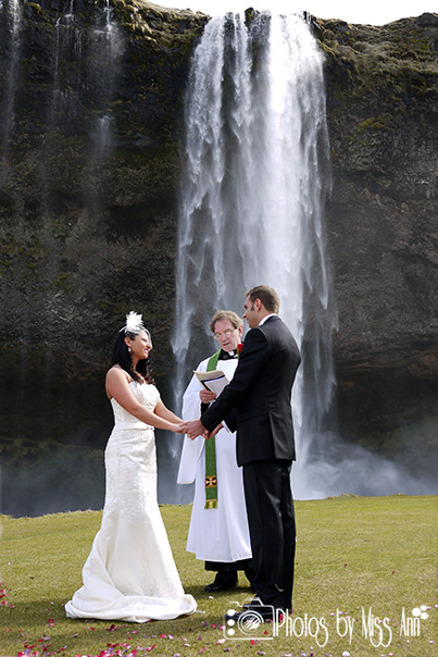 My husband and I planned our Iceland destination wedding in less than 6 months- from October to April 2011-2012. We’re super planners and experienced Iceland wedding photographers so we had a very good idea of what we liked and didn’t. We chose the most dynamic place in Iceland to get married: Seljalandsfoss Waterfall in 2012. With a champagne toast at Vik Beach, a pit stop at the infamous wool shop and a final stop at Skogafoss Waterfall before heading back to Hotel Ranga for our reception.