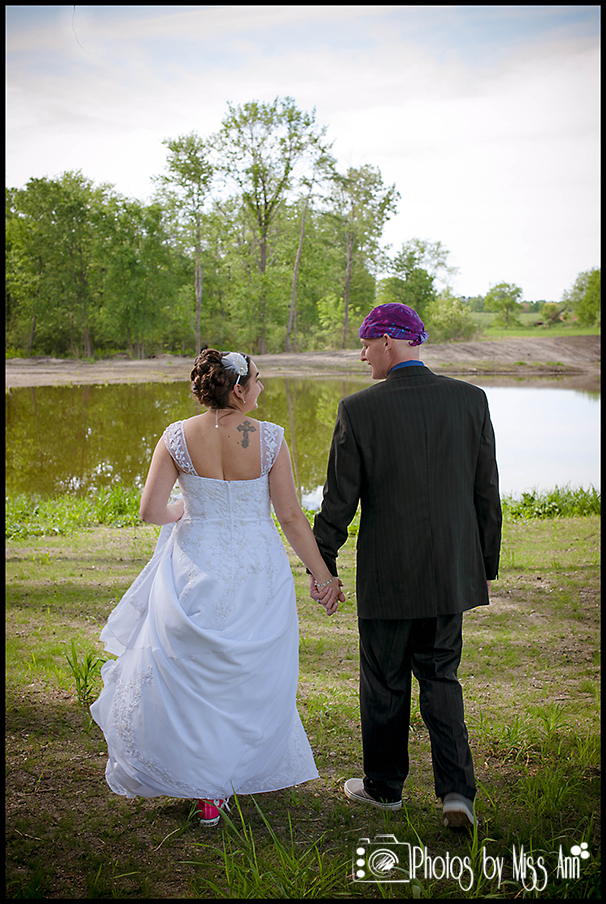 It was fitting they have the most beautiful day in Michigan for their wedding day. The scene was set in the Grass Lake Michigan countryside where you hear and see chickens running around, a gorgeous 125 year old barn, walk a stone path passing by alpacas and donkeys to get down to a beautiful lake, stunning tall woods, a brick pathway to charming wedding pergola. The bride and groom had a playful funky style, created all of their flowers, reception decorations, and other details all themselves and were so ready to get the show on the road! Their wedding vows expressed their unremitting adoration and respect for each other. It was lovely along with the rest of the evening’s events! Feel free to check out a few of their Metro Detroit wedding photographs below.