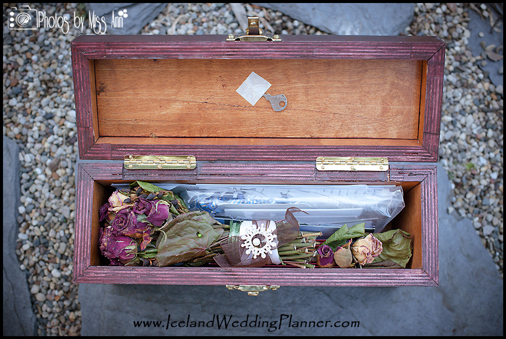 Back when all of our parents were getting married, fresh flowers were not as popular as they are now (silk flowers were most popular then). As the eras have gone on, it seems as though wedding niceties have become more detailed and elaborate. One way many years ago to preserve your wedding details was to shadow box it and display it somewhere in your home. This is totally still an option but not everyone has the space to do this. An idea for you from our Iceland wedding experience: Put your favorite wedding items in your Love Letter Ceremony Box! Why? Because it serves a dual purpose! It helps you transport your items safely back to your home country once your destination wedding in Iceland is complete and also acts as a time capsule of your wedding day.