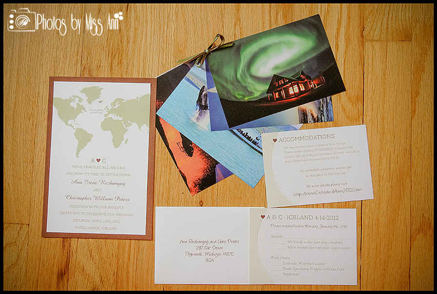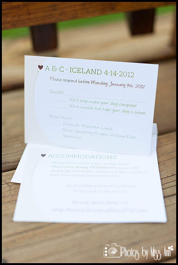 - The Iceland Wedding Insert Card (Opening line of: “Please Join Us in the Land of Fire & Ice!,” accommodation details, and our Iceland destination wedding website which was chock-full of the full details on everything happening).