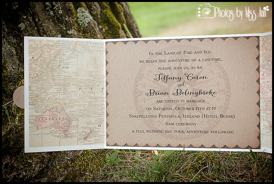 We felt that by providing our guests with an undeniable visual as to why we chose Iceland (IE, dramatic scenery, endless adventures, etc) and putting as much information in front of them as possible would make the decision easier. Most of our guests were skeptical of traveling to Iceland so overcoming those inhibitions was important and we did this with our invitation and destination wedding website. So maybe think about putting your own twist on something similar? I challenge you to have fun with it! For a moderately priced detailed destination wedding invitations like the ones photographed below, you can expect to budget ~$4-12 each (plus postage).