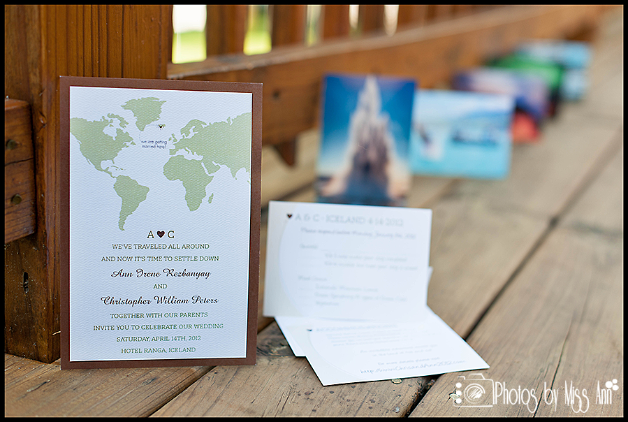 - Our Iceland wedding invitation was designed in our wedding colors, brown and sage. We also had a catchy line that opened our wedding invites saying: “We’ve Traveled All Around, Now It’s Time to Settle Down.” We cordially invited our guests to join us for this epic adventure in Hella, Iceland on Saturday, April 14, 2014.