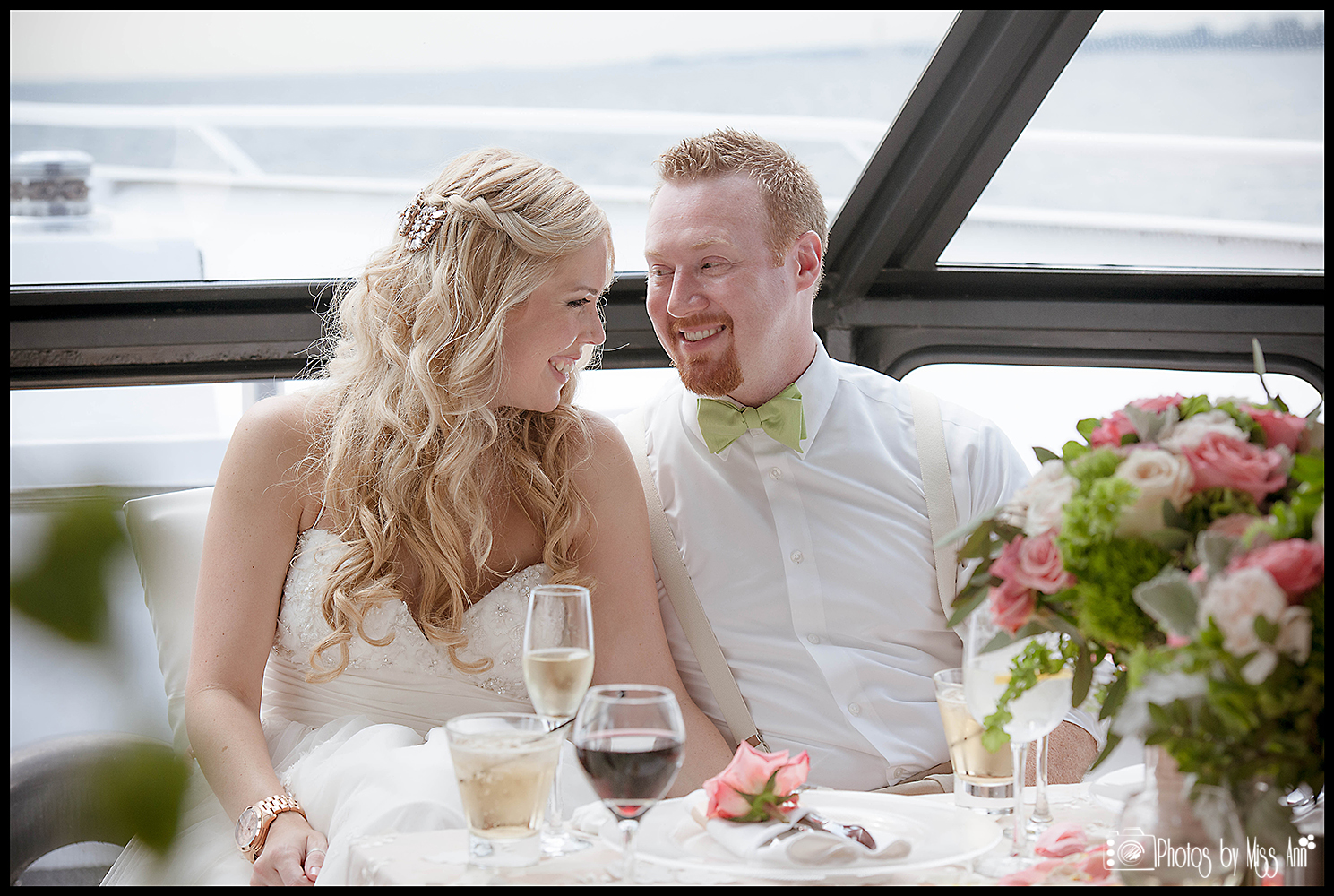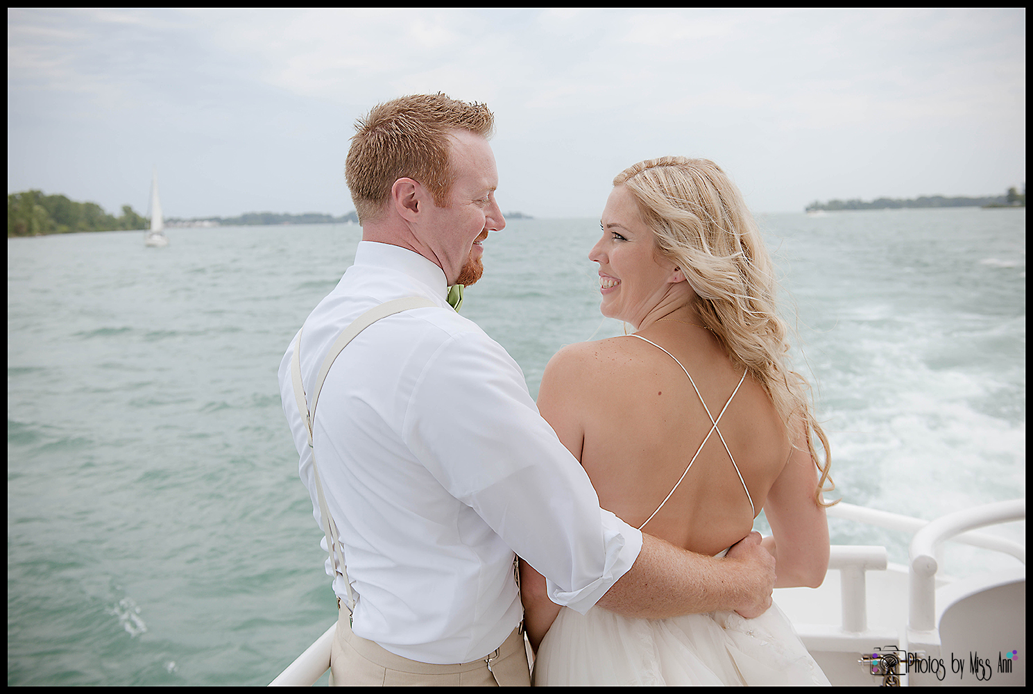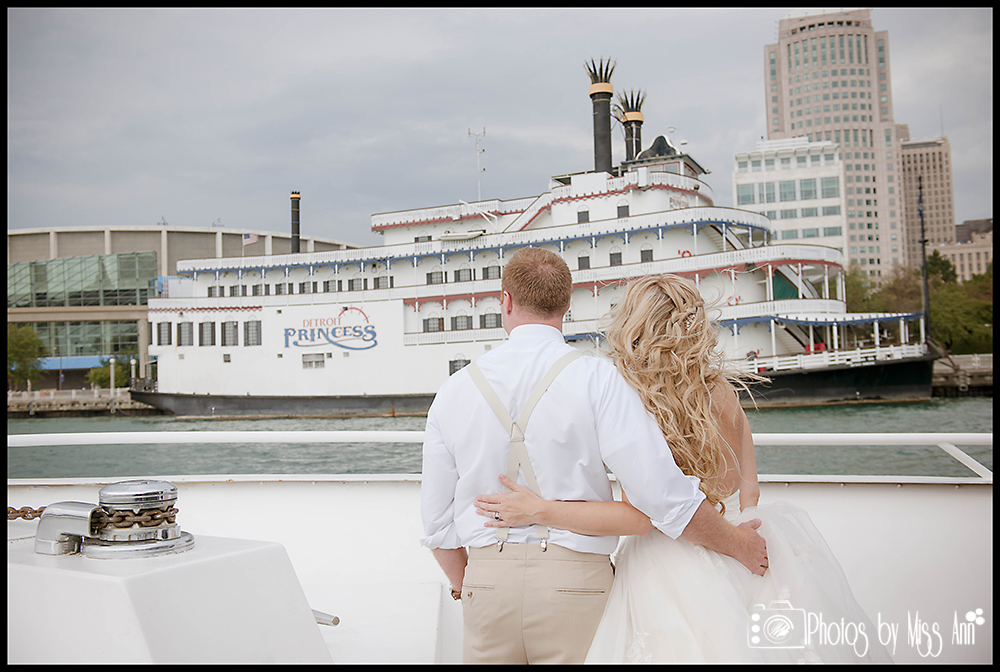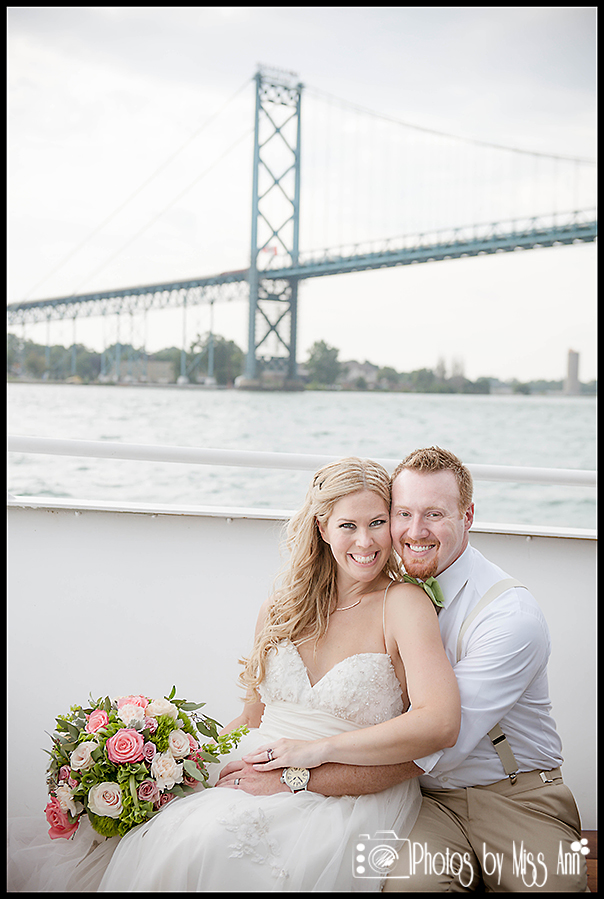 The 11am ceremony brought all who love them together in celebration. The captain of the boat married them and the horn of the yacht blew in announcement of the newlywed Mr. and Mrs.! How fun, right? After the ceremony, all of the guests boarded the boat to enjoy an afternoon cruise. A strolling gourmet lunch was served while the yacht boasted amazing views around the Detroit River including the historic Ambassador Bridge! Jarret and Beth, we hope these images speak to you and forever seal that marvelous moment in time for you! Thank you for choosing Photos by Miss Ann to tell your wedding day story! Now please delight in their wedding day BLISS below…