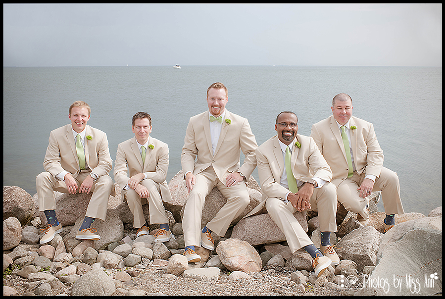 Beth was already one of the most gorgeous women I know, but to see her as a bride on her wedding day took my breath away! Oh man and Jarret…in his bow tie, suit, and perfect smile -so handsome! The Day: It was an ideal moment in Saint Clair Shores with early fall temperatures and endless blue skies overhead for their ceremony. Chris and I spilt up for an early morning start to this amazing event. Beth and her ladies started at the MGM Casino and Jarret and his groomsmen began their day right around the corner from the Jefferson Beach Marina.