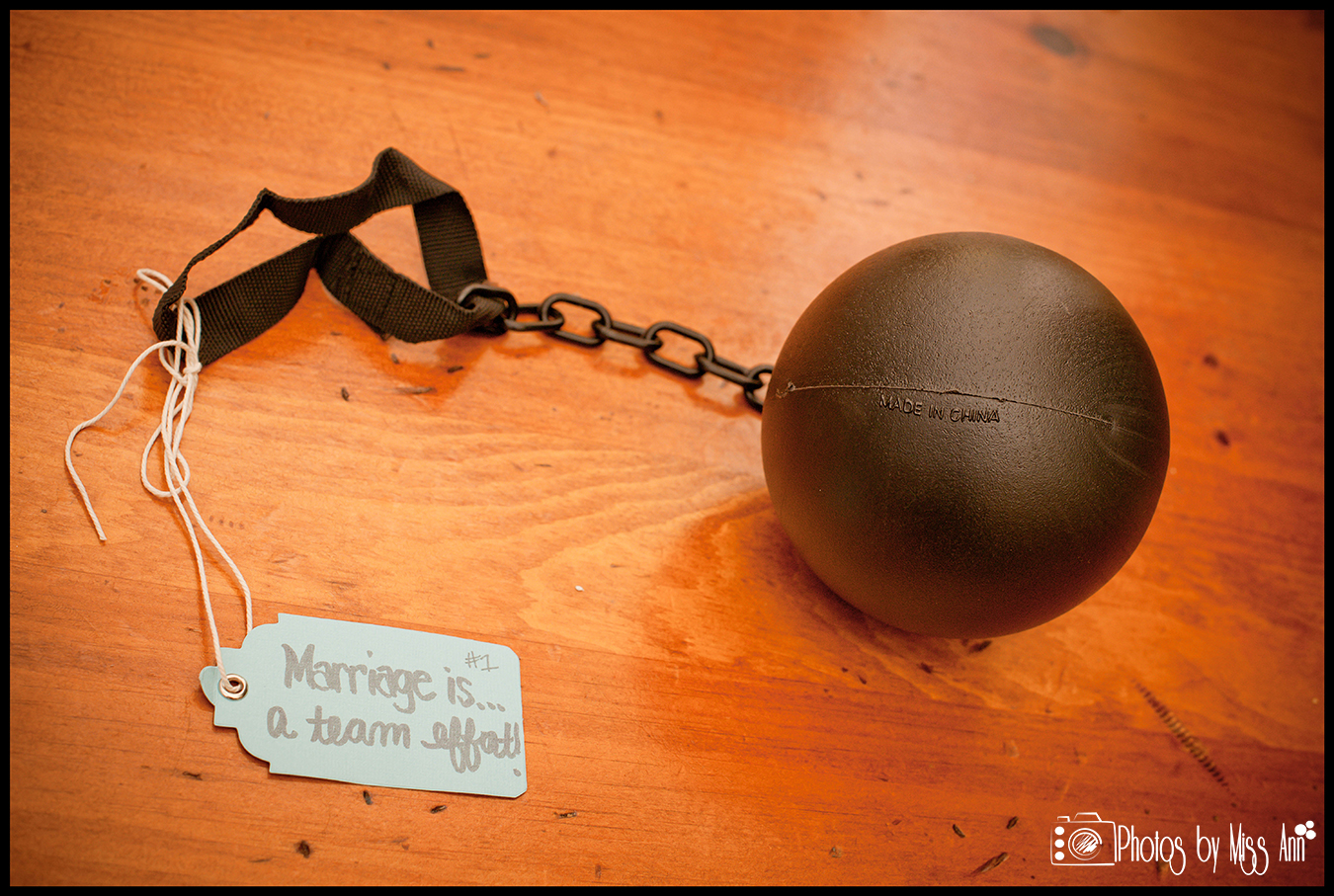 - Ball and Chain = Marriage is a TEAM effort, move together.