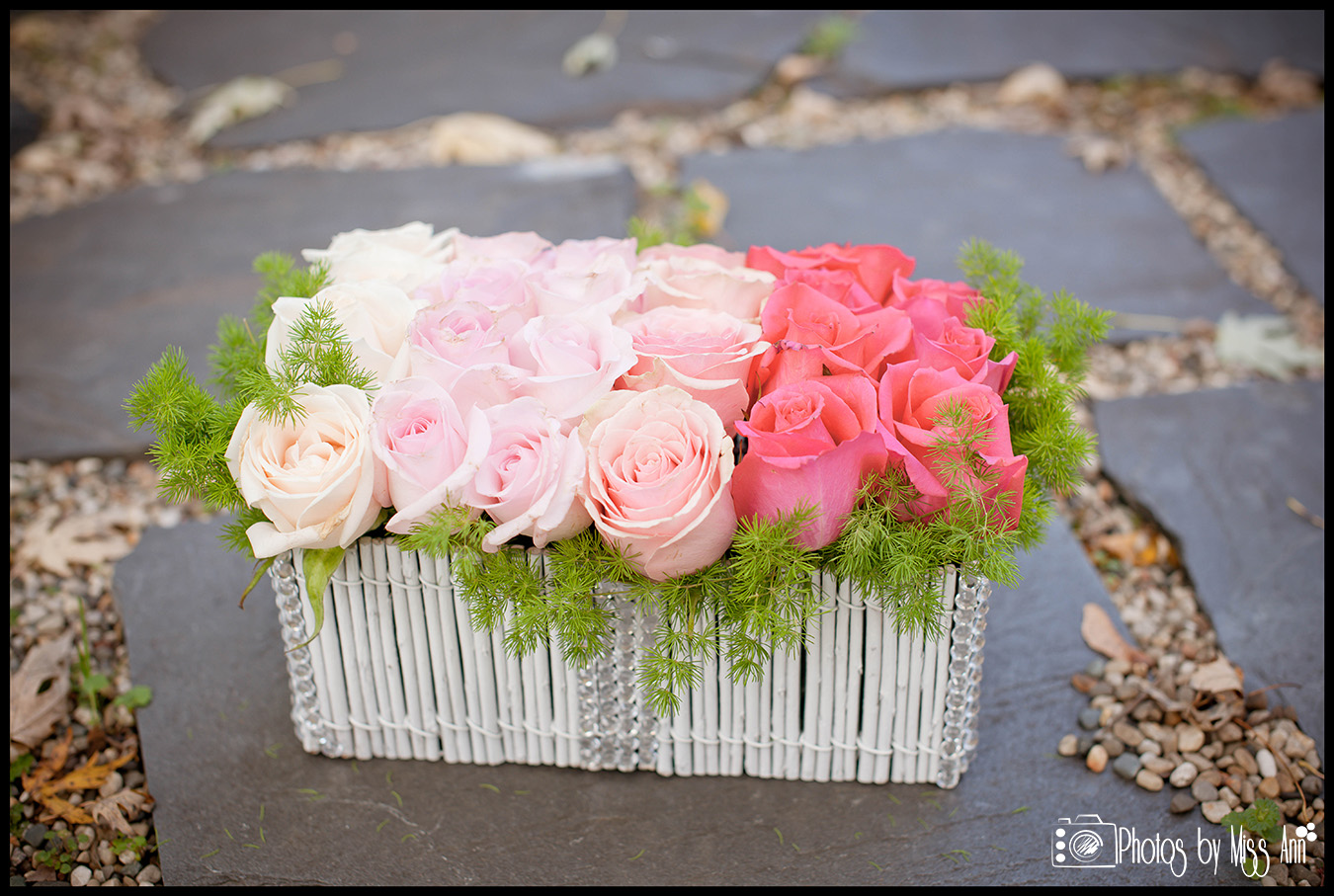 - 24-28 medium size roses (Ivory, Light Pink, Medium Pink, and Fuchsia).