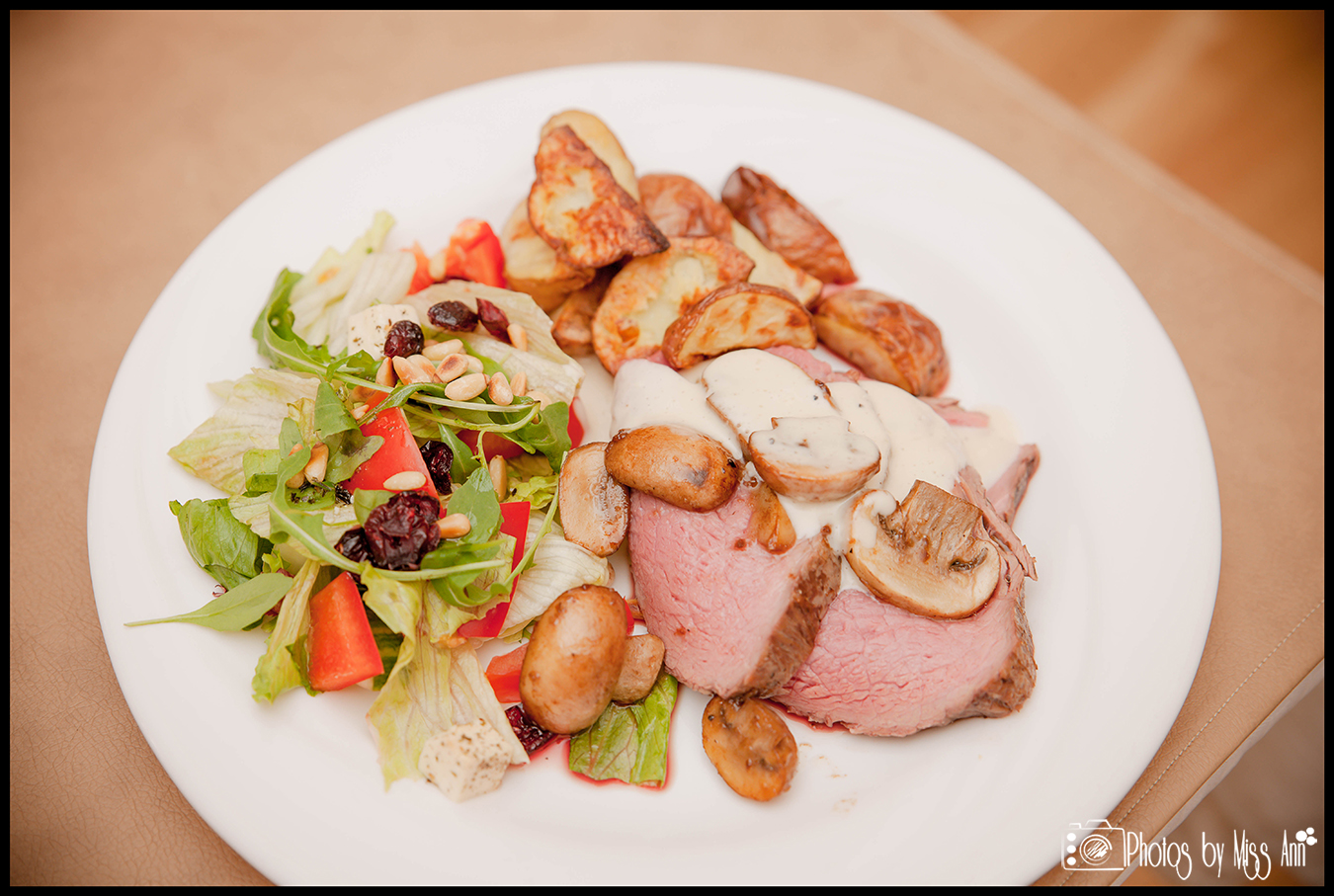 Our mouths were watering as soon as the beautiful main course was set down in front of us. It was a beautifully plated dish consisting of the following items:
