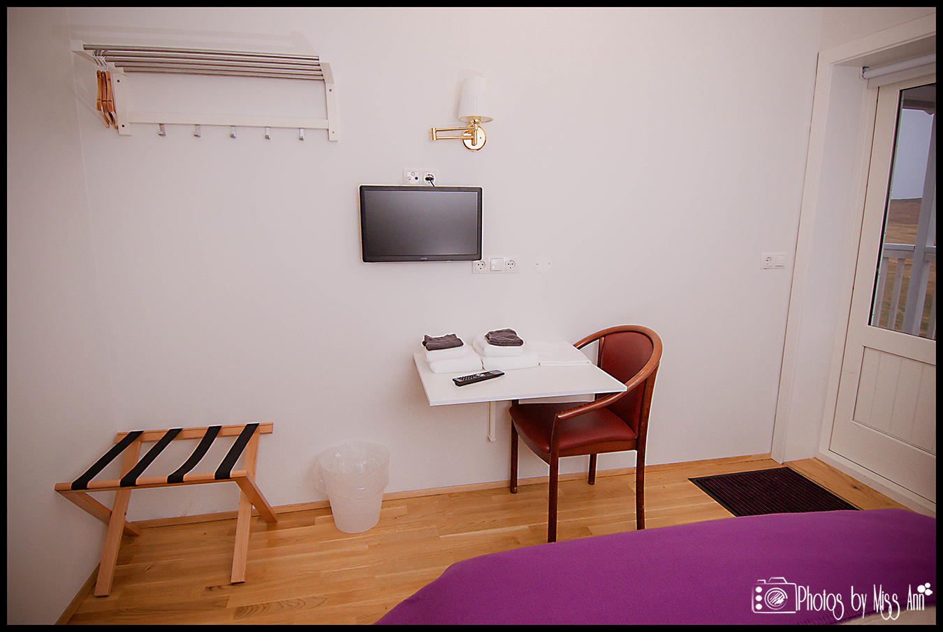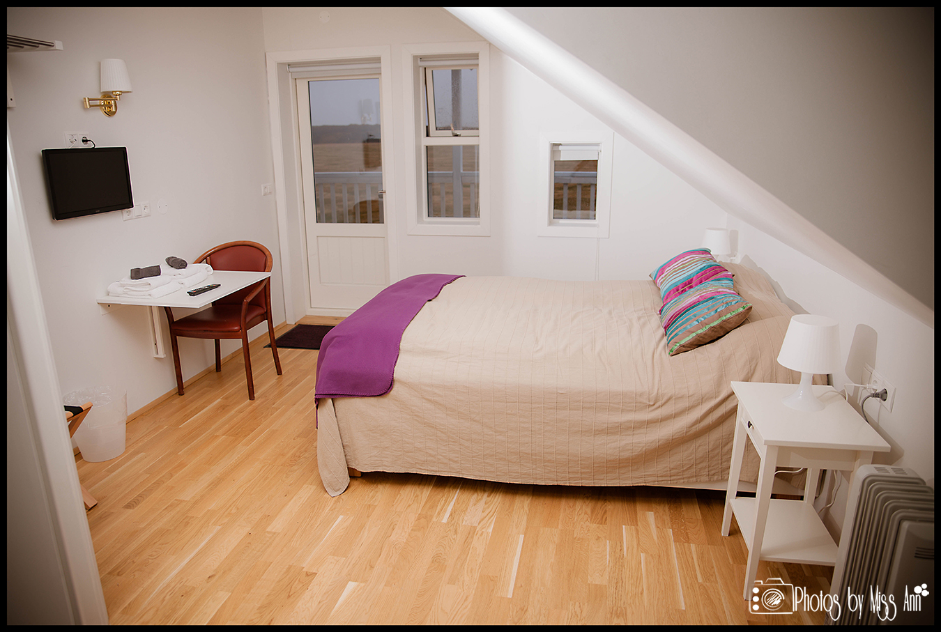 We were in Room #5 located above the dining room. There was an outside entrance with a cute little patio set and our room boasted both a view of the river and a sight in the direction of Mount Hekla. Upon entering, the room was bright, clean, warm and cozy. With all the basic amenities of home we were quickly settled into our Icelandic country escape.