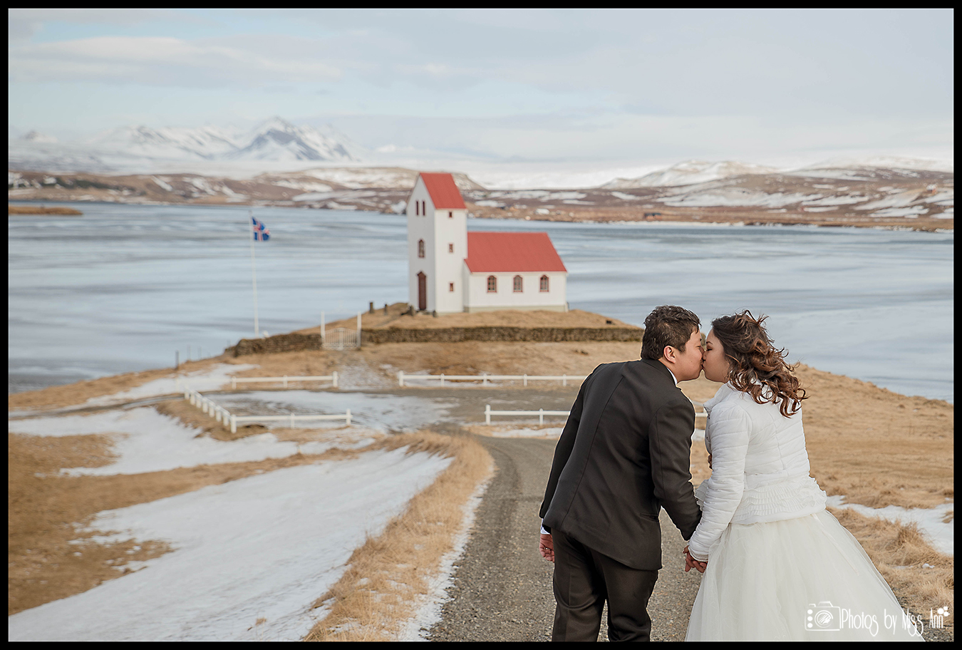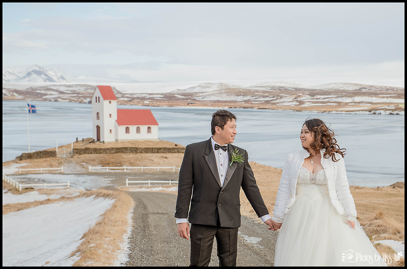That being said, we’ve decided that Farid & Vanessa’s enticing Iceland elopement was so gorgeous we want to share it with you in three parts so you don’t miss out on any of the details of their beautiful February wedding in Iceland. Our first segment in this series will be their Iceland wedding ceremony at our favorite lakeside country church! Yes I said lakeside country church…Swoon! You’re smitten already, right?