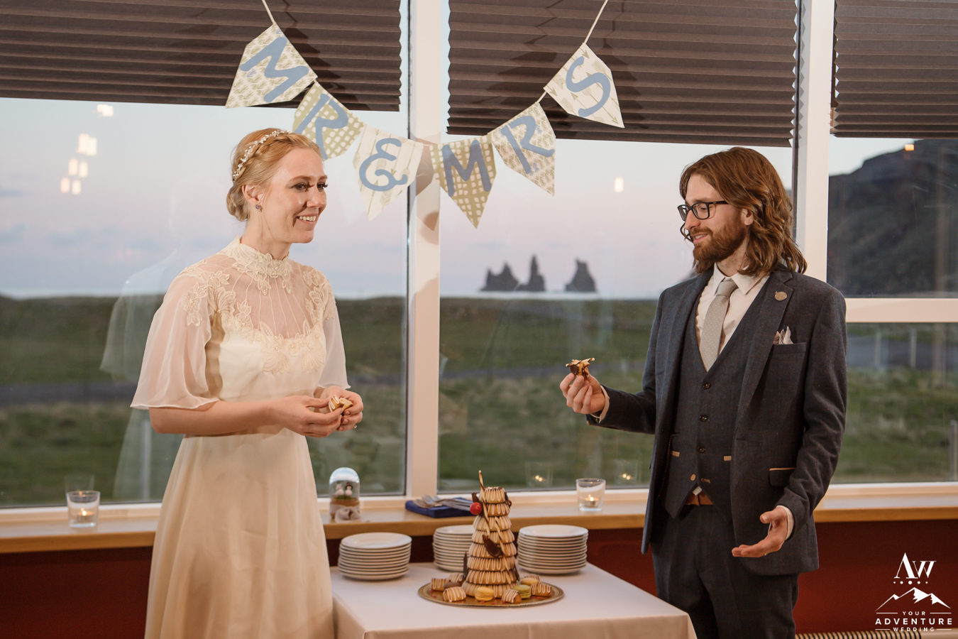 If you’re looking to add a traditional Icelandic wedding element this would be a fantastic one to incorporate while planning your Iceland wedding or elopement. There is a fun tradition that comes along with the cake too… The bride and groom begin by breaking the cake (viking style with your hands). Then each of the Iceland wedding guests to come up one by one, break off a piece (since it’s a ring cake) with their hands, say a wish to the bride and groom, and then delight in eating the cake.