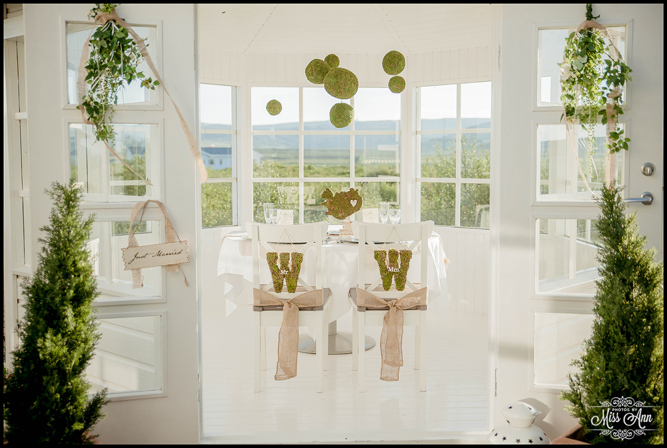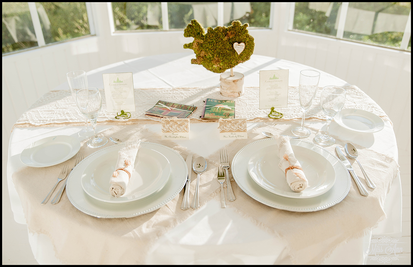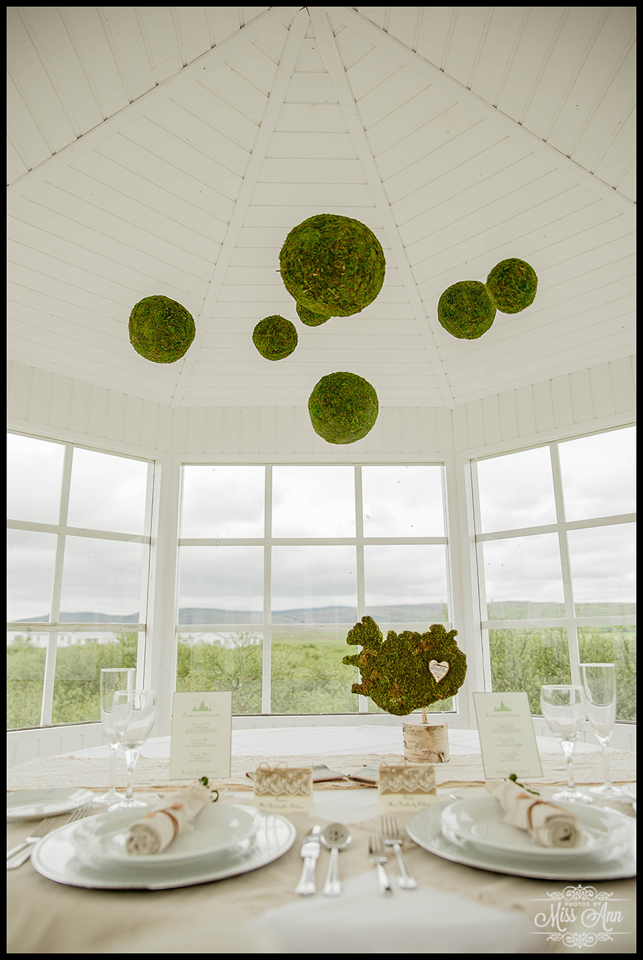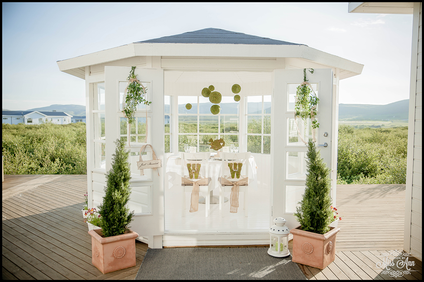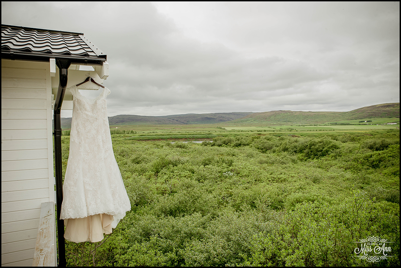 Thankfully our awesome travel karma was in full force and we made every stop on time, phew! Beth went to work styling our plan for the stunning gazebo that would hold Chris and Kim’s intimate Iceland elopement dinner later. The rest of my team (Iceland Hairstylist and Iceland Makeup Artist) were already there working on getting Kim ready, while I hung her dress from the house (Ha, totally happened) and delighted in photographing her Iceland wedding day details.