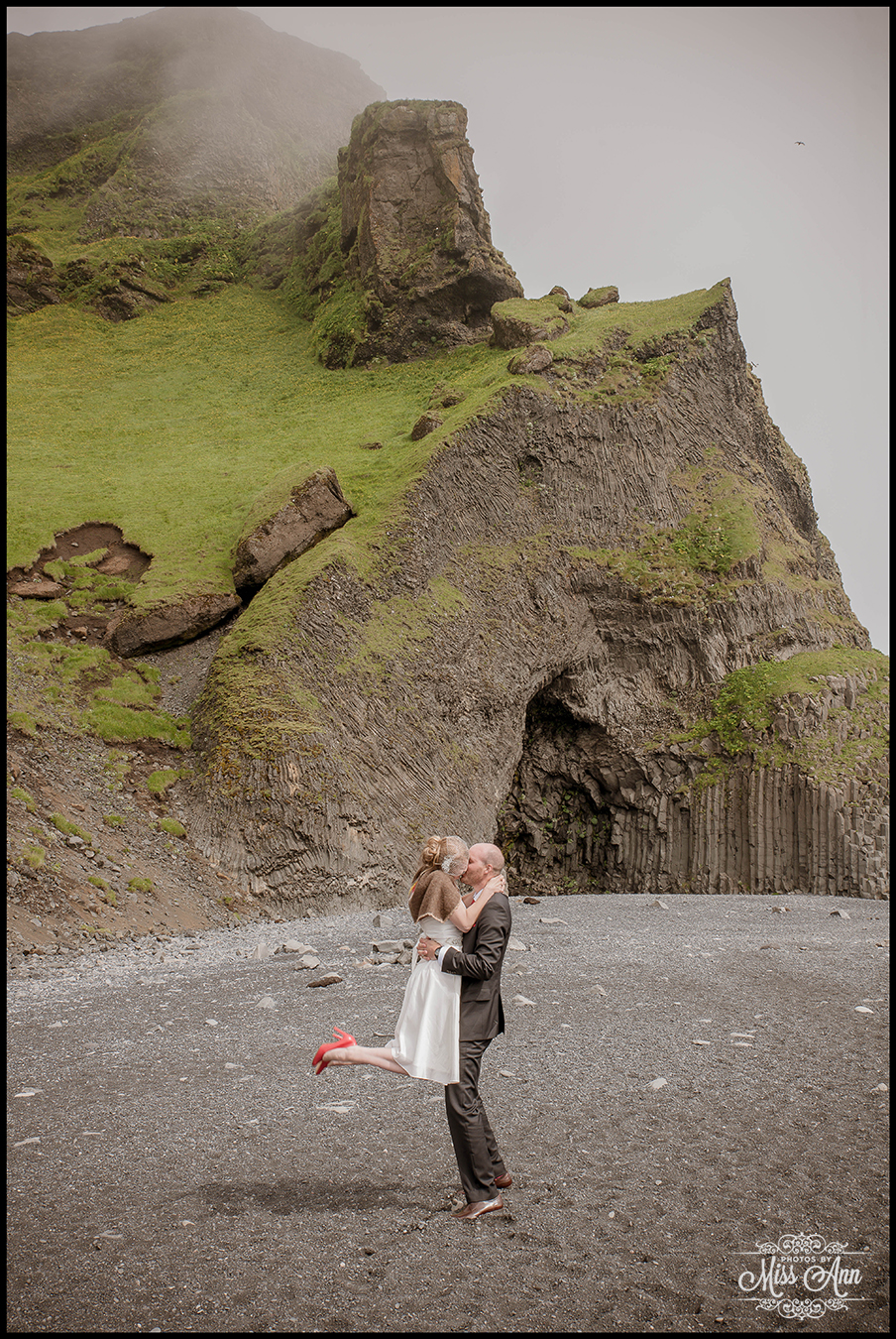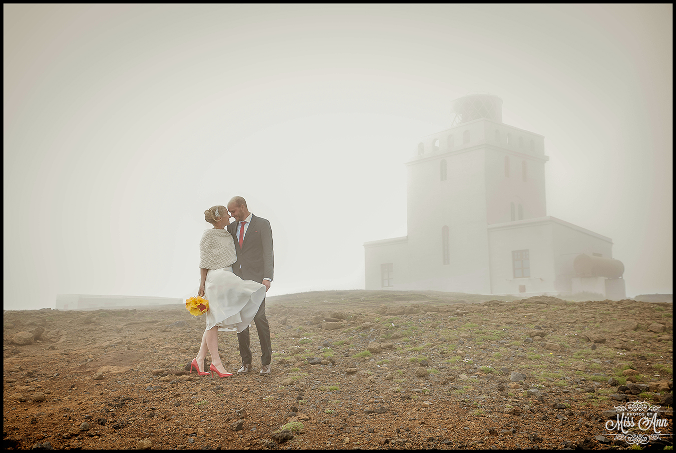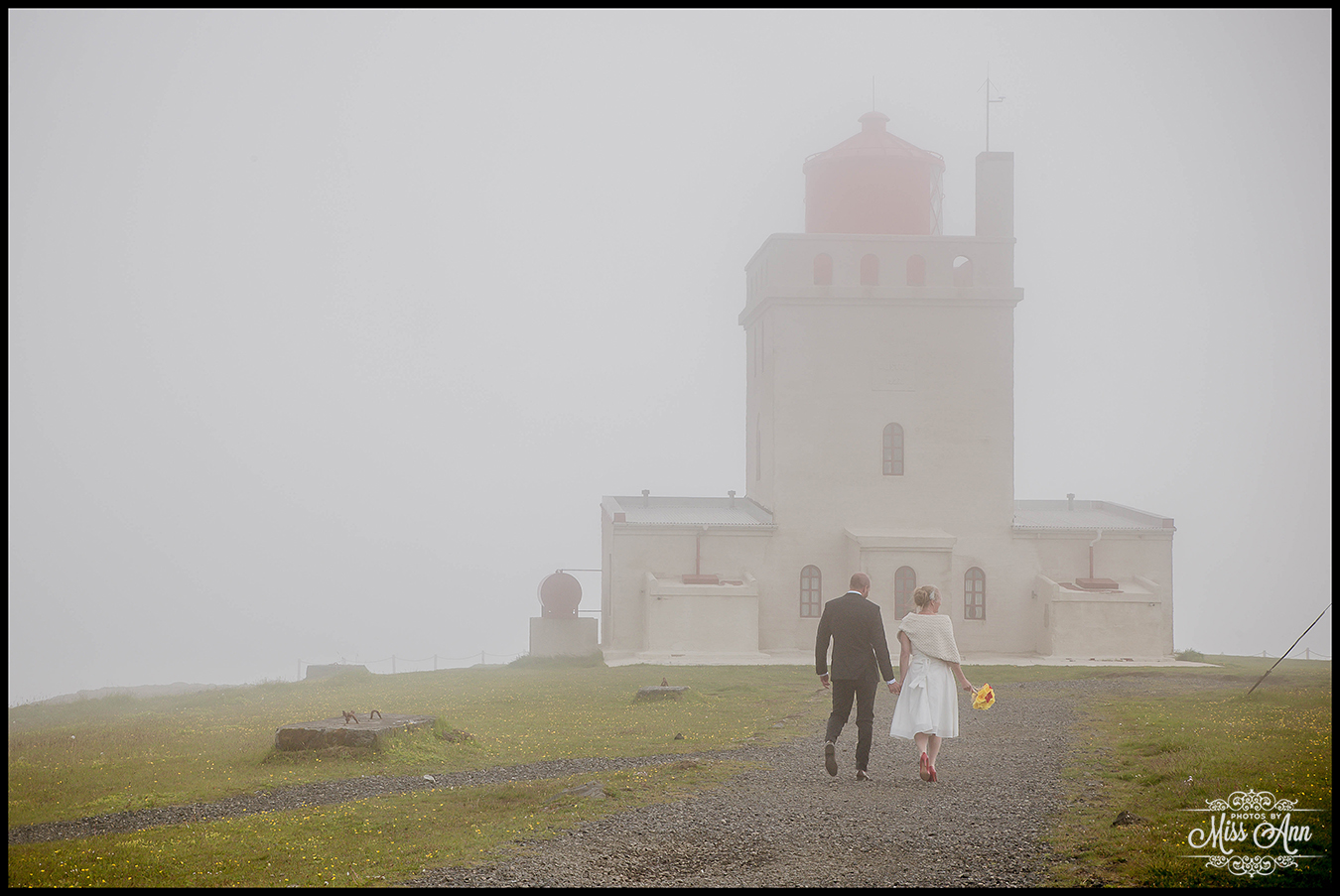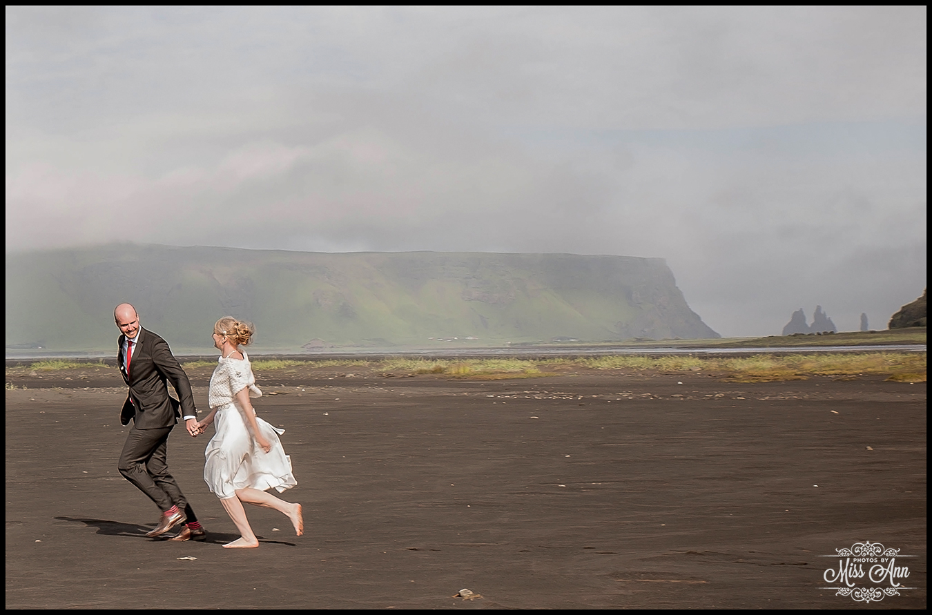 That Iceland summer day brought a foggy low cloud afternoon but that all added a very mysterious element as Tara and Landon playfully walked around hand in hand against the shoreline. After a quick lunch stop for an Icelandic hot dog near our favorite shop Icewear / Víkurprjón, the bride and groom caught their second wind and we headed to the very foggy Dyrhólaey Cliffs and Lighthouse, it was eerie but oh-so dreamy at the same time! Please delight in these ethereally romantic images <3 …and stay tuned next time to see a very surprising spot for Iceland wedding photos!