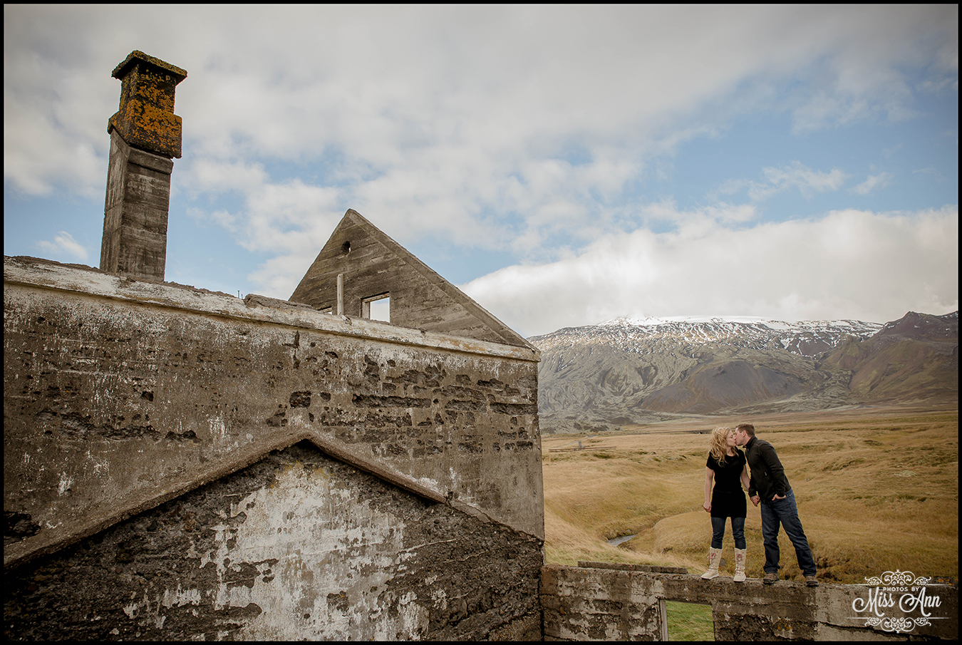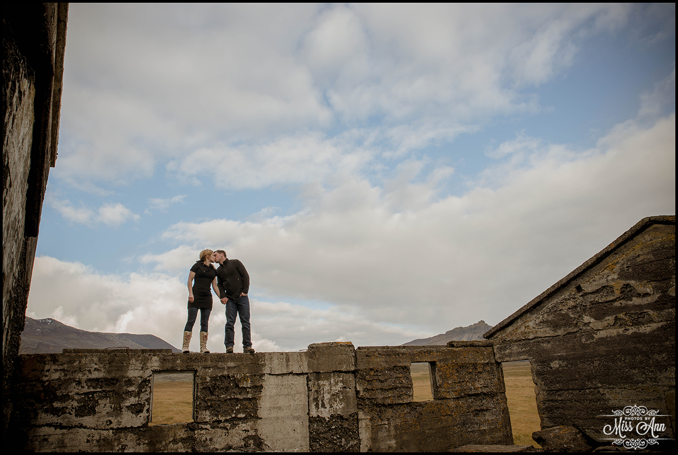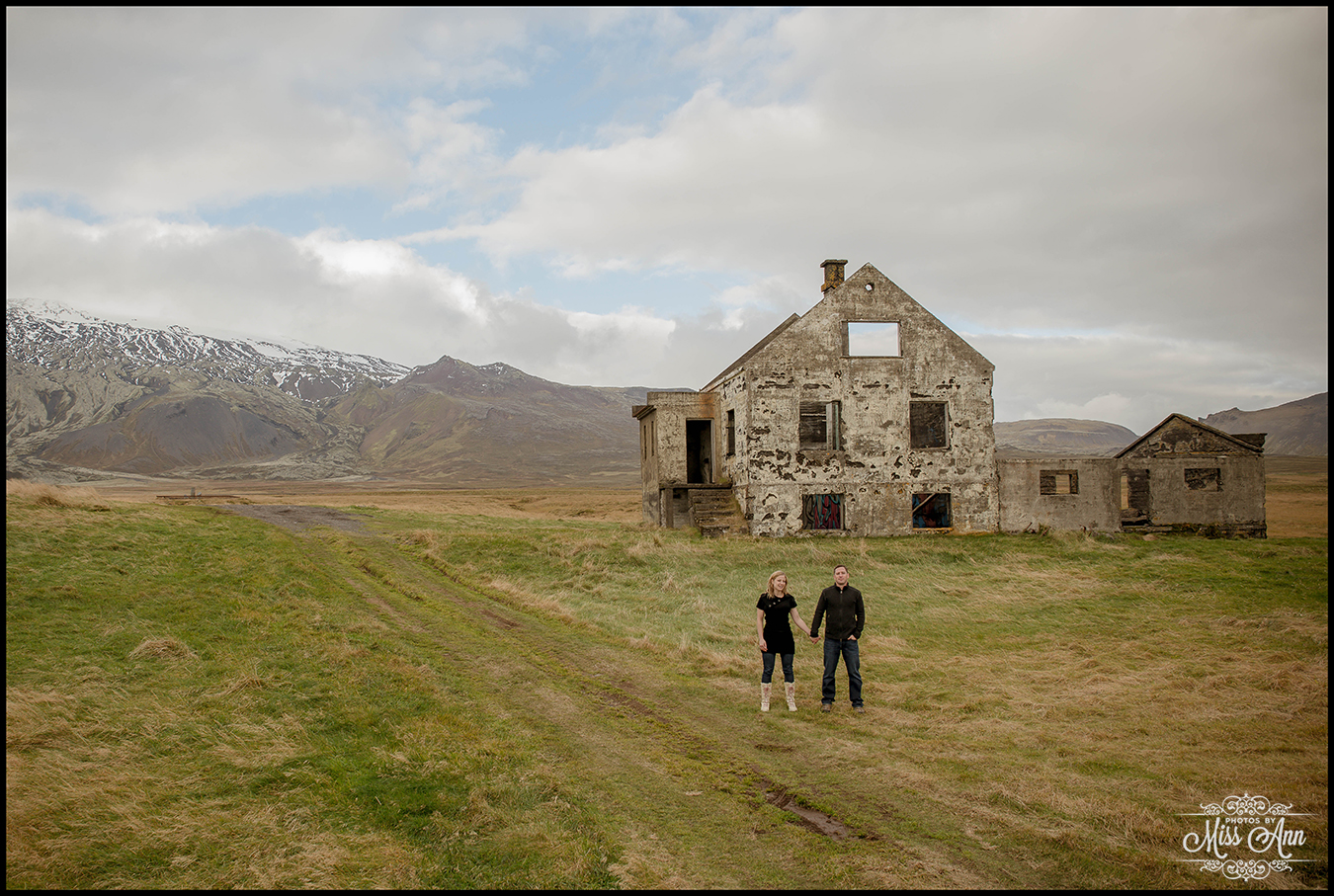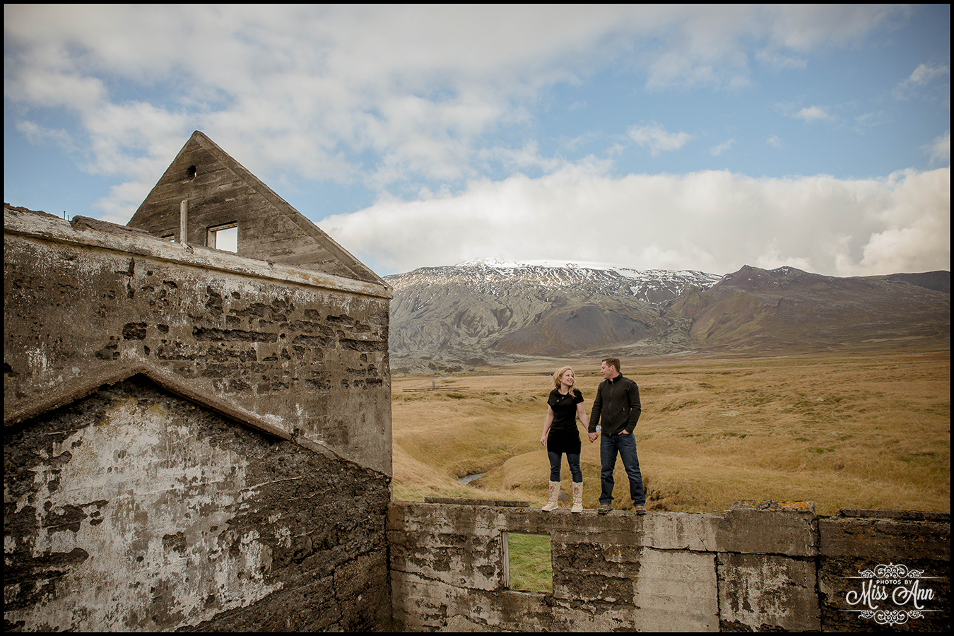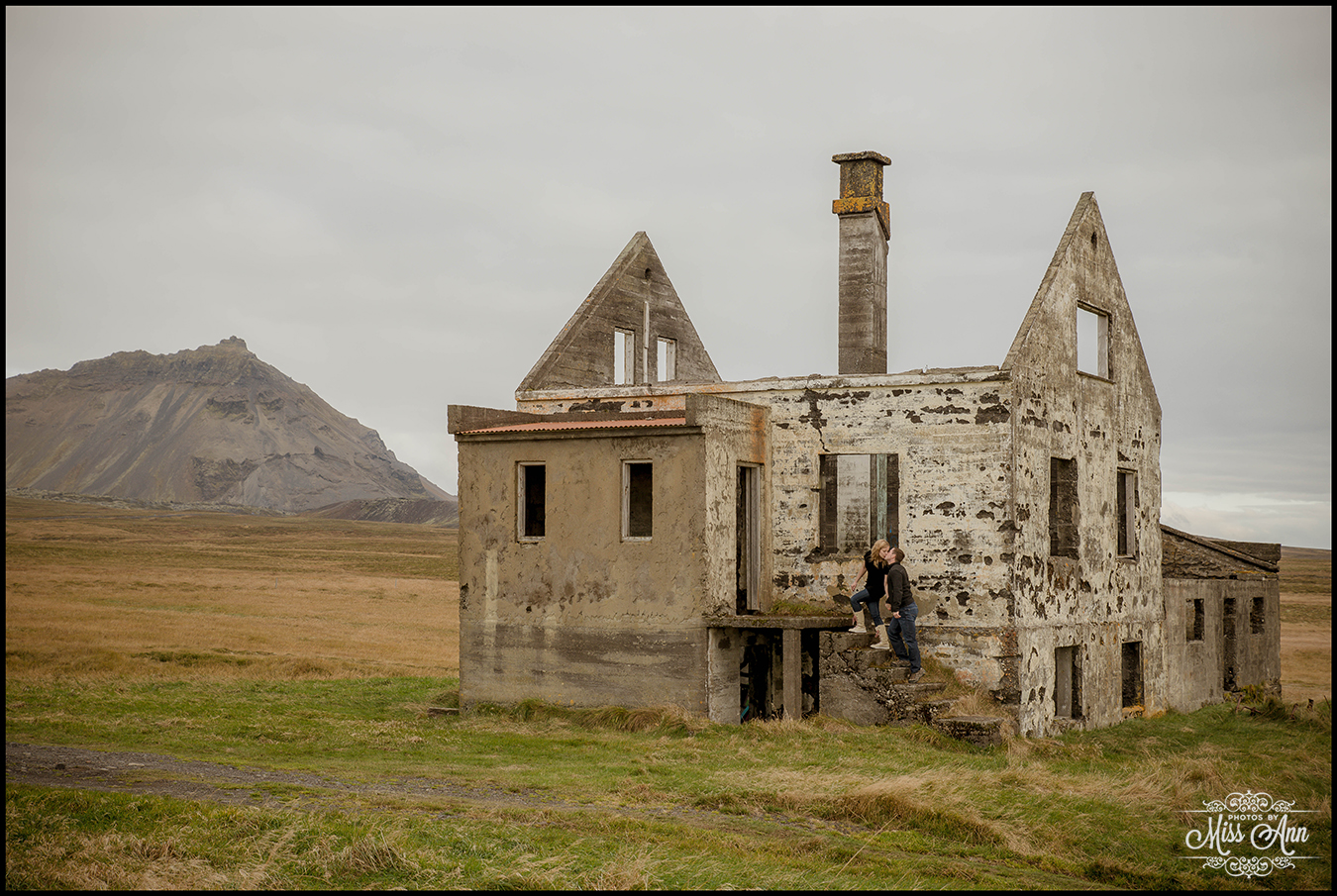 Welcome back to the second installment of Tiffany and Brian’s Iceland Engagement Session. So you know how I said in last week’s post that Brian and Tiffany were super adventurous? Well the other half of their Iceland e-session was no exception either! This abandoned house in the Snaefellsnes Peninsula has been on my radar for forever so when I suggested the spot to Brian and Tiff they were not only all in but they didn’t even bat an eyelash when I suggested they climb a wall so I could get a better angle! I love these two =)