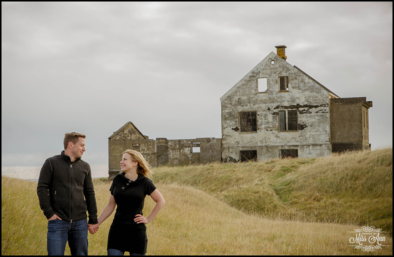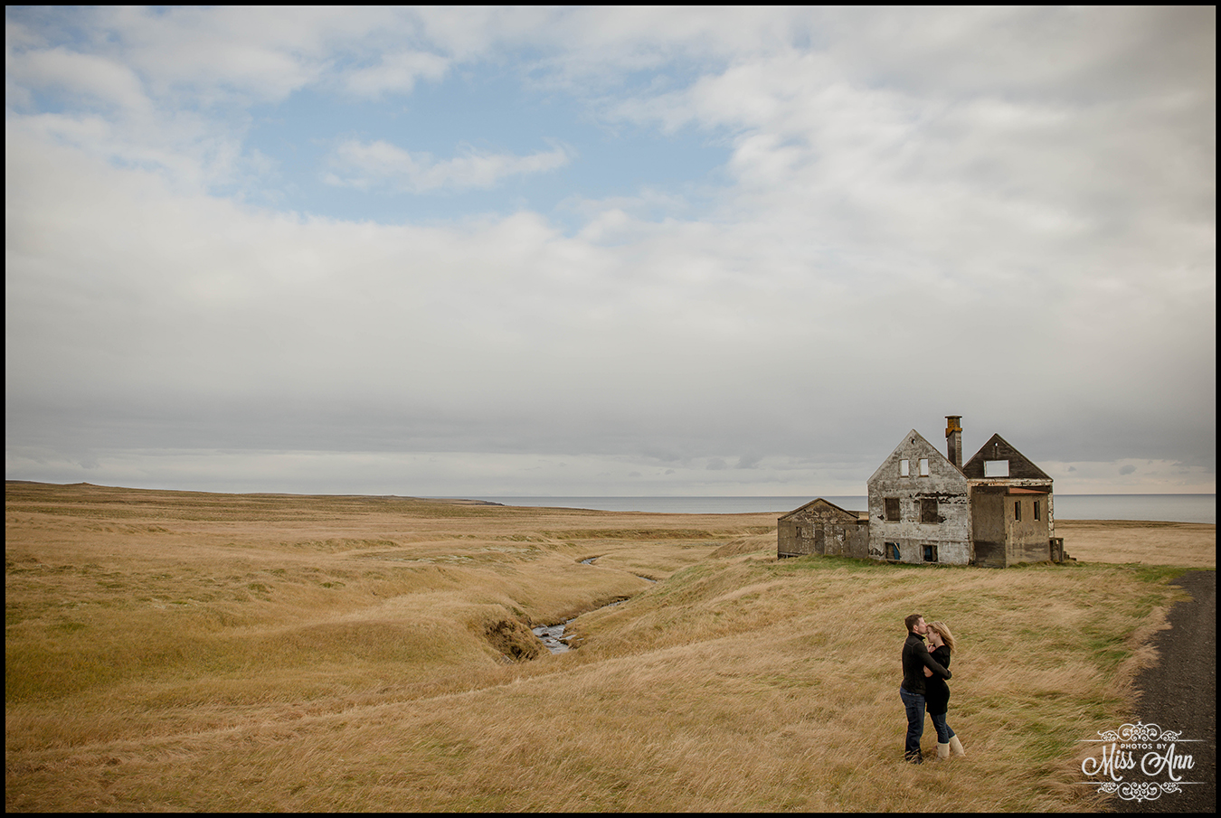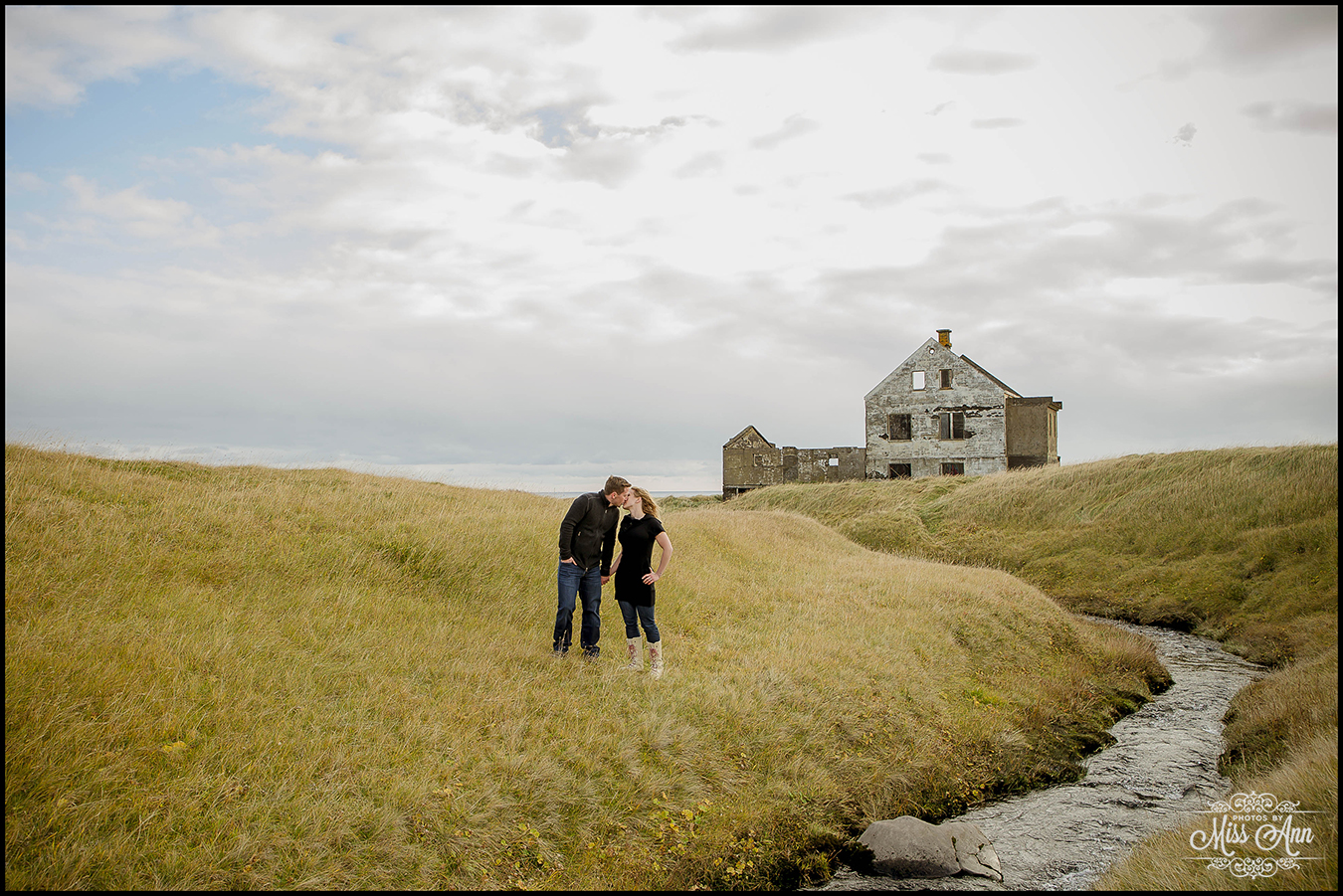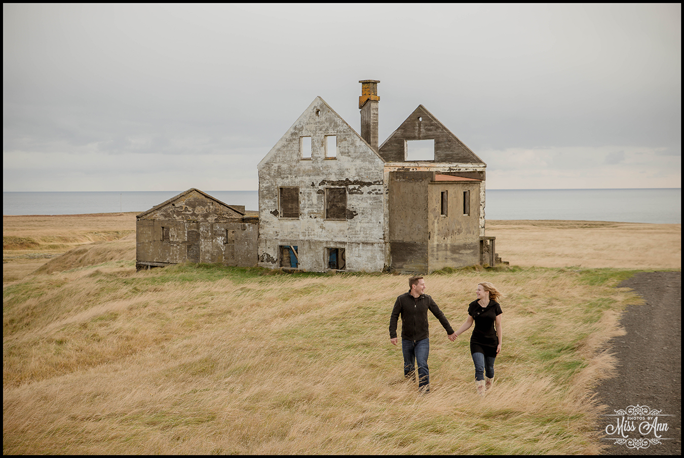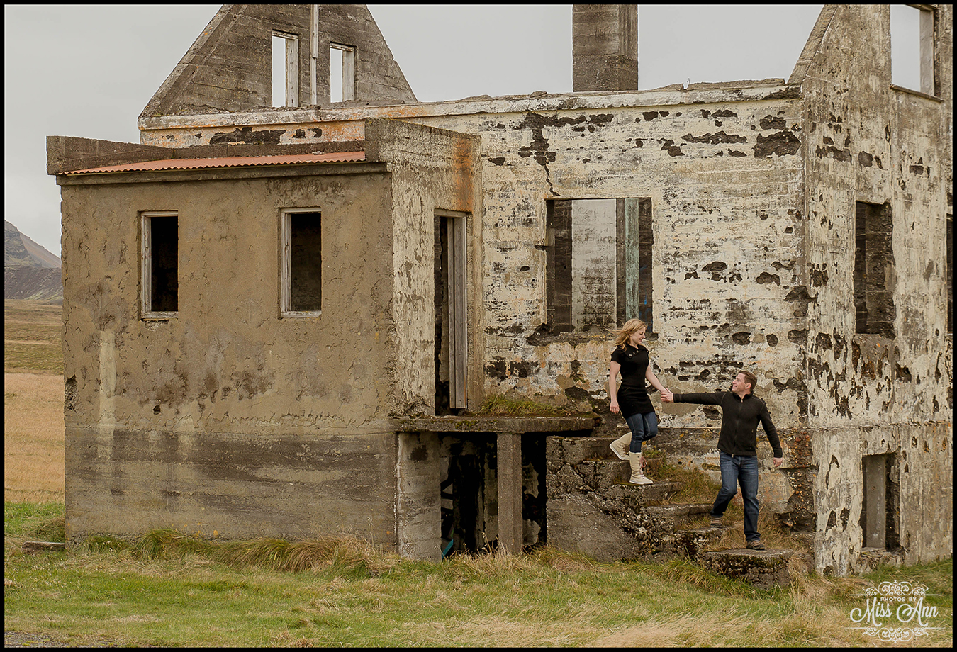 Welcome back to the second installment of Tiffany and Brian’s Iceland Engagement Session. So you know how I said in last week’s post that Brian and Tiffany were super adventurous? Well the other half of their Iceland e-session was no exception either! This abandoned house in the Snaefellsnes Peninsula has been on my radar for forever so when I suggested the spot to Brian and Tiff they were not only all in but they didn’t even bat an eyelash when I suggested they climb a wall so I could get a better angle! I love these two =)