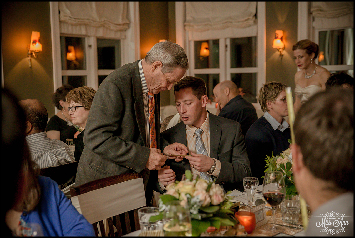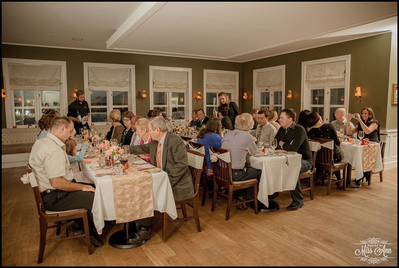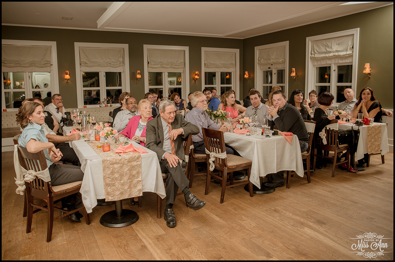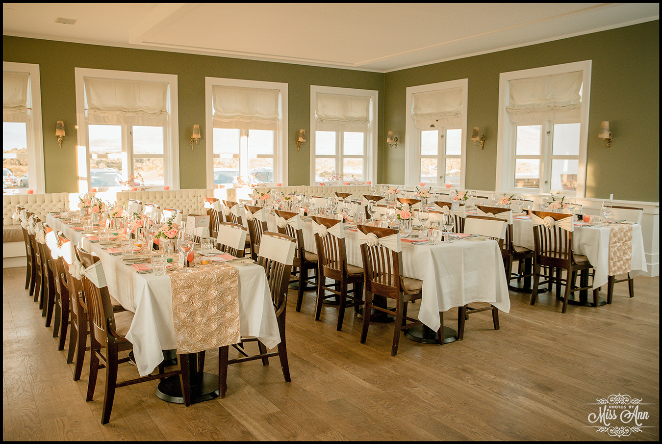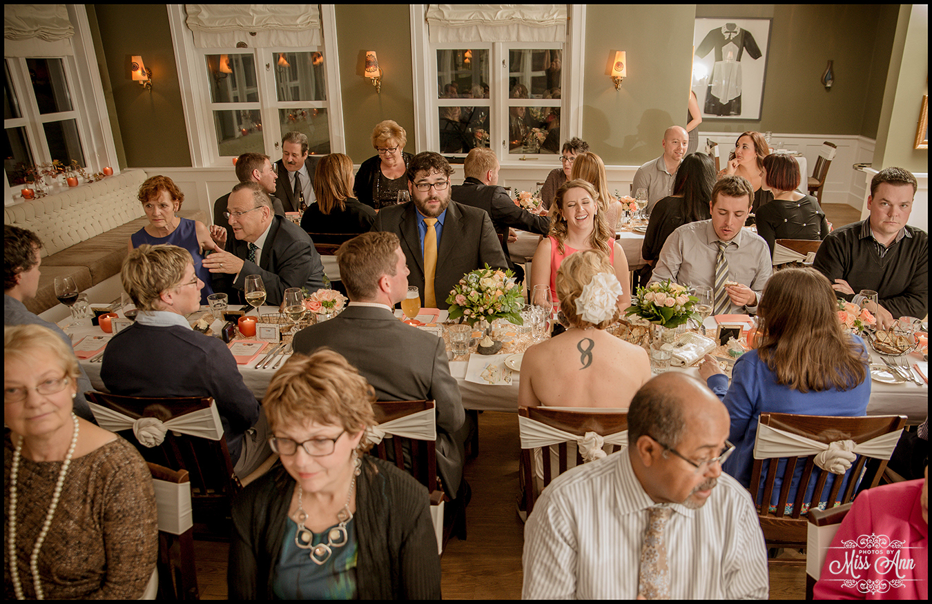 During my 21 months of planning time with Brian and Tiffany we brainstormed and mocked up all sorts of ideas for them to finalize a fabulous design and style scheme. Their perimeters were that they wanted to incorporate the colors peach, champagne, and a soft silver. It was also important have it flow throughout all of their stationary and decor. We carried those colors throughout their Iceland save-the-dates, Iceland wedding invitation, place cards, timeline cards, favor tags, menu, and their stunning Iceland wedding reception centerpieces! I think it all came together, eh? I’ll let you be the judge as you delight in the awesome Iceland wedding reception images below!