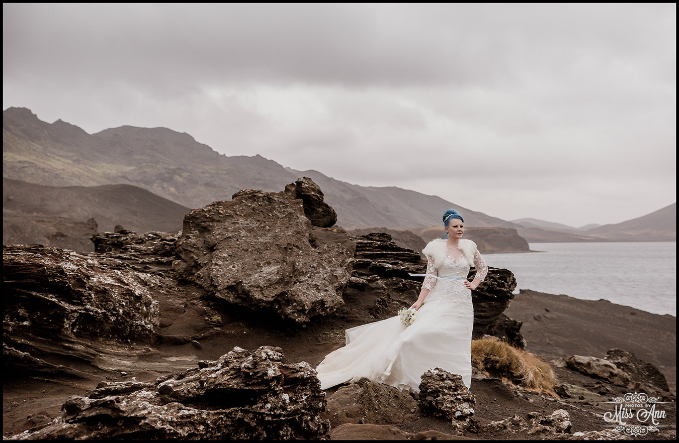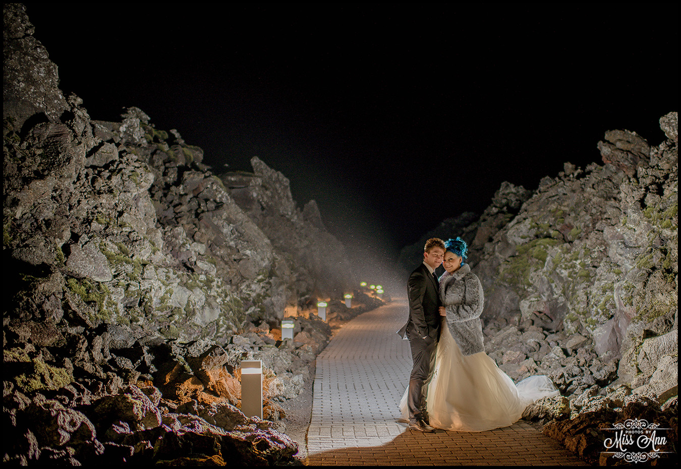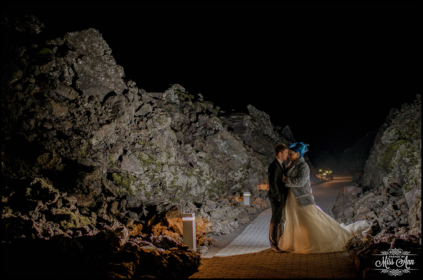 From there the journey continued into downtown Reykjavik for lunch and more exploring the sights and sounds the bustling downtown offers. The group then made their way to the gorgeous Krysuvik-Seltun geothermal area. A picturesque natural wonder where the couple ran around hand in hand in the midst of bubbling mud-pots and dramatic steam! After returning to the hotel, the guests and couple had a chance to relax and catch their second wind. The details and reception vibe eluded to a very bewitched beauty, so the accouterments did not take away from the amazing adventurous wedding day in Iceland. It was a non-traditional Iceland wedding day full of adventure and the night ended with a gorgeous nighttime shoot (shot about 1am) at the famous Blue Lagoon! It was windy and cold but Danny and Chloe kept each other warm! Enjoy their Iceland wedding images below!