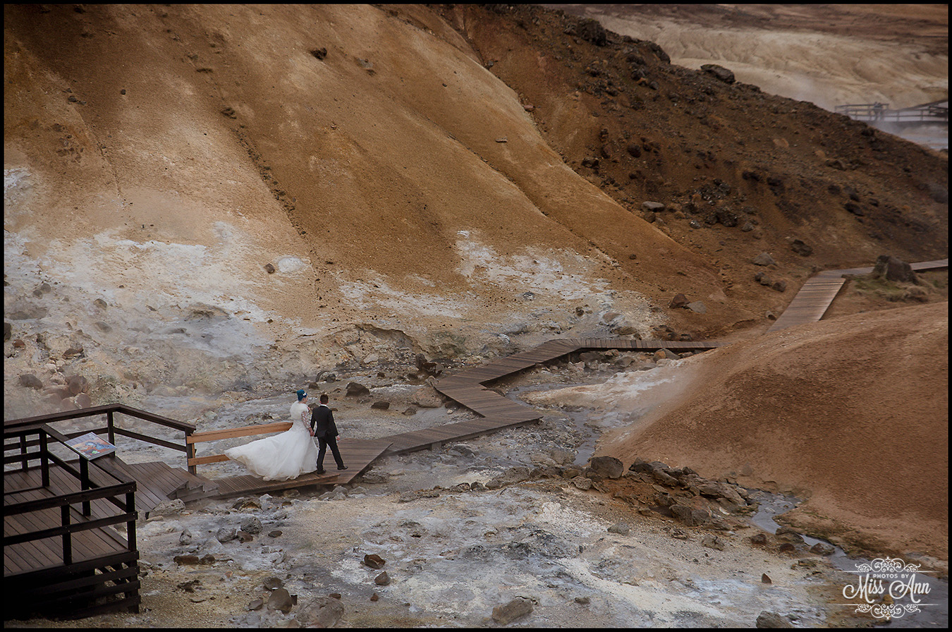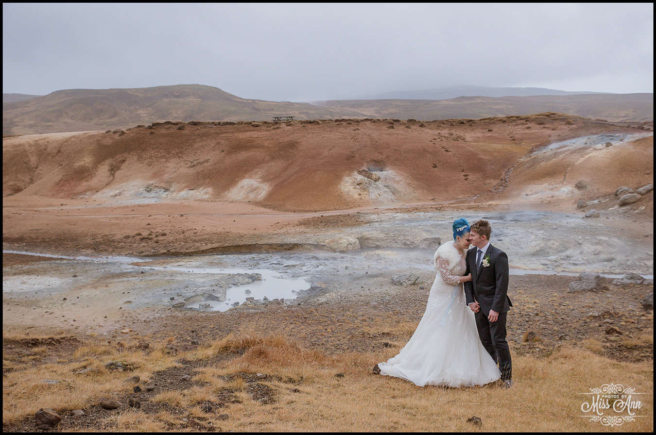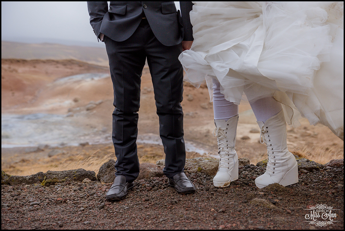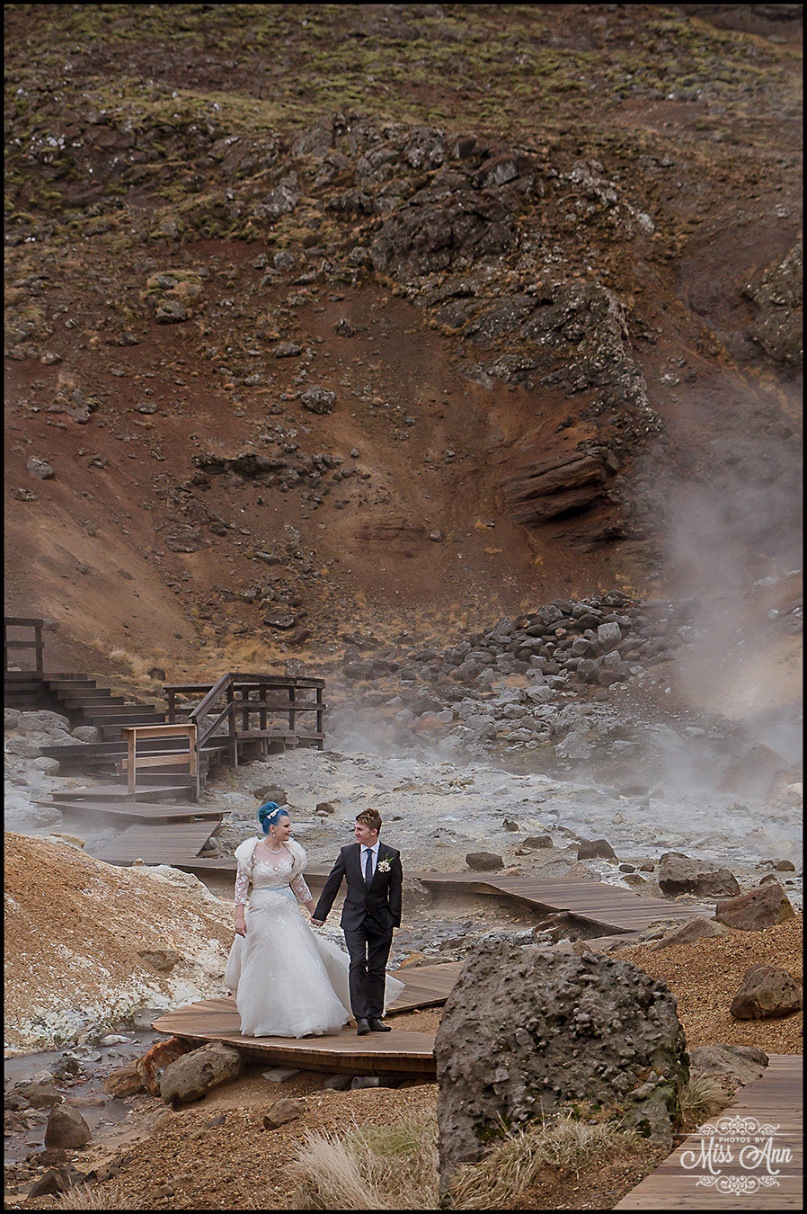 From there the journey continued into downtown Reykjavik for lunch and more exploring the sights and sounds the bustling downtown offers. The group then made their way to the gorgeous Krysuvik-Seltun geothermal area. A picturesque natural wonder where the couple ran around hand in hand in the midst of bubbling mud-pots and dramatic steam! After returning to the hotel, the guests and couple had a chance to relax and catch their second wind. The details and reception vibe eluded to a very bewitched beauty, so the accouterments did not take away from the amazing adventurous wedding day in Iceland. It was a non-traditional Iceland wedding day full of adventure and the night ended with a gorgeous nighttime shoot (shot about 1am) at the famous Blue Lagoon! It was windy and cold but Danny and Chloe kept each other warm! Enjoy their Iceland wedding images below!