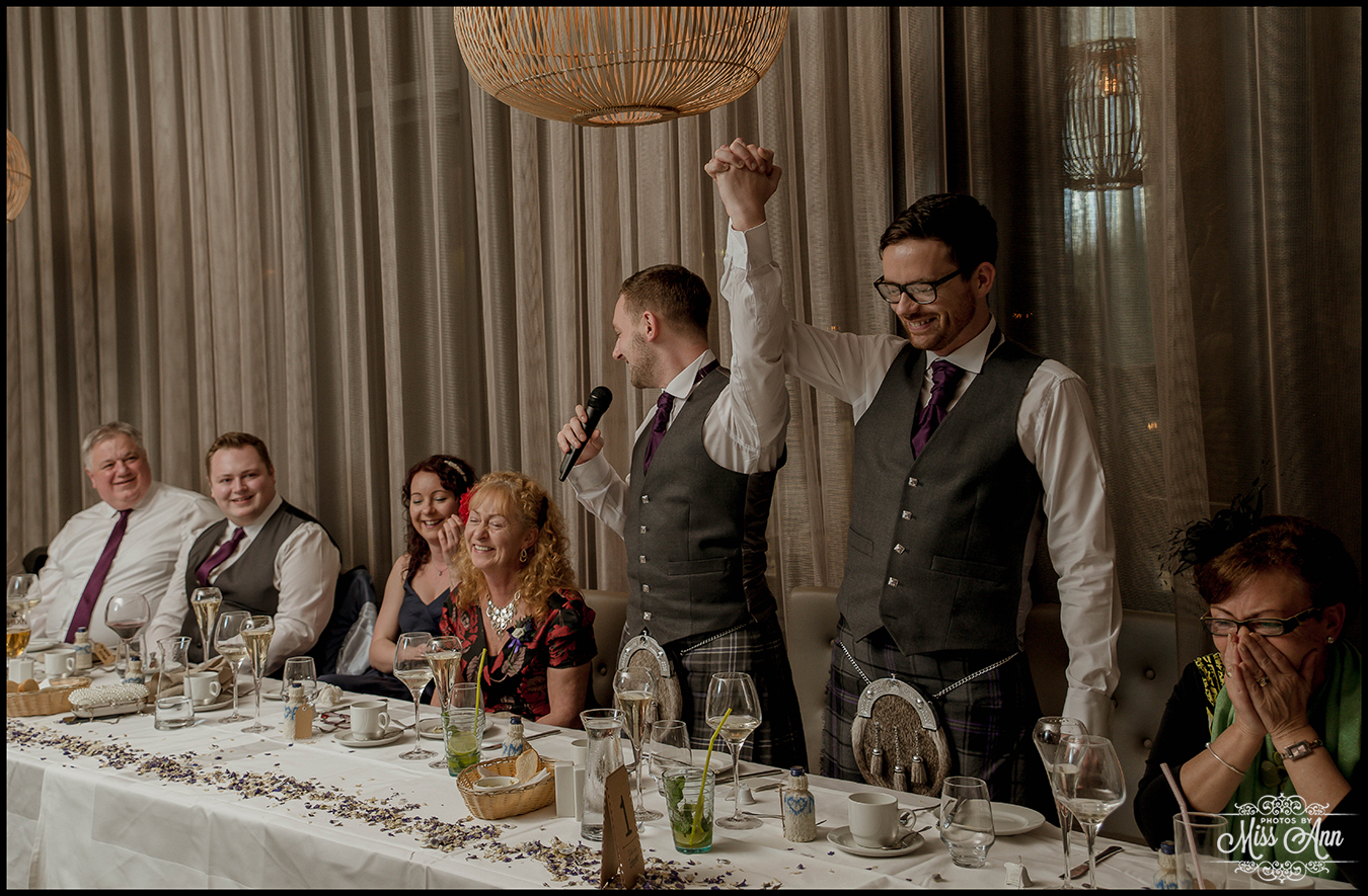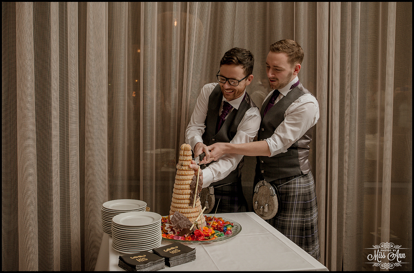The Grooms Style: They donned themselves head to toe in traditional Scottish garb! Their tartan’s were: Purple Slanj and Scotland Forever Ancient and they looked just dapper!