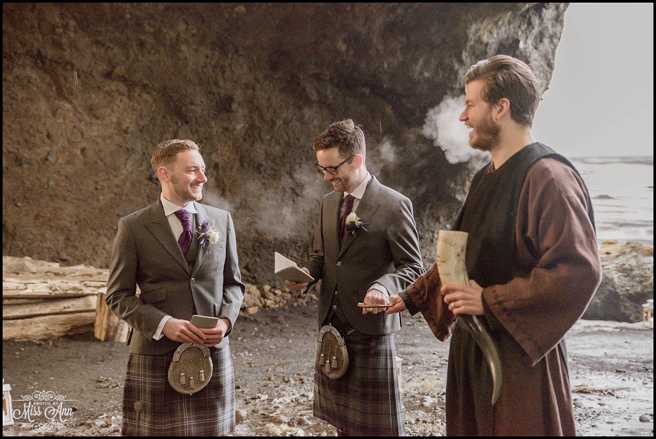 The gents held a traditional Icelandic Ásatrú wedding ceremony which is inspired by the historic Norse culture. The ceremony was performed in Icelandic, included holding an oath ring as they spoke their vows and the guests even drank whisky from a horn as they toasted the groom’s new life together!