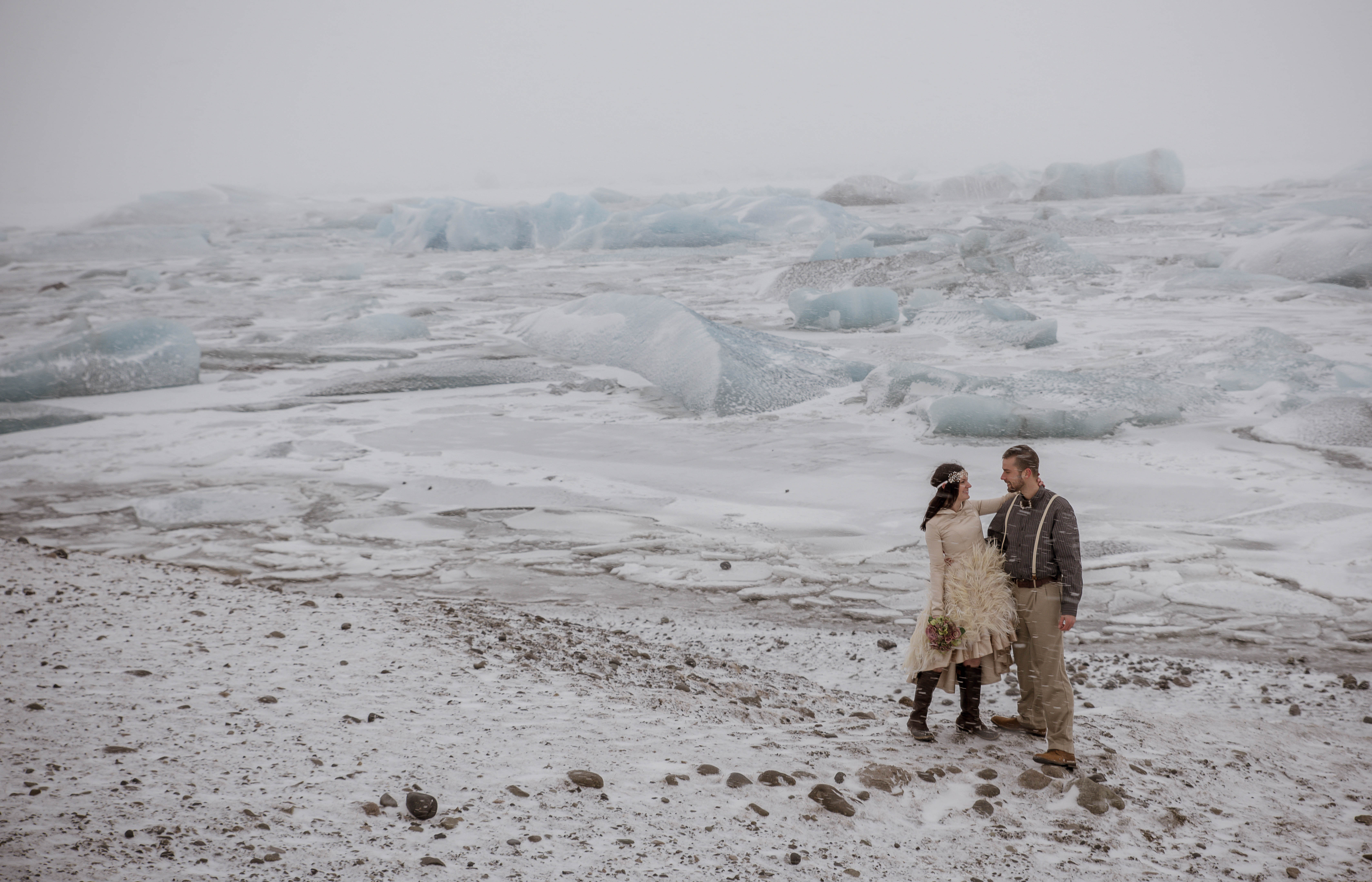 I hope you find yourself exploring these beautiful glacial lagoons in person! In the meantime, onto the best part… the Icelandic wedding photography visuals from our sister company, Photos by Miss Ann who today, brings you a gorgeous styled shoot at Jökulsárlón Glacial Lagoon! PS – Make sure you take notice to the grooms awesome handmade wool bow-tie! Swoon!