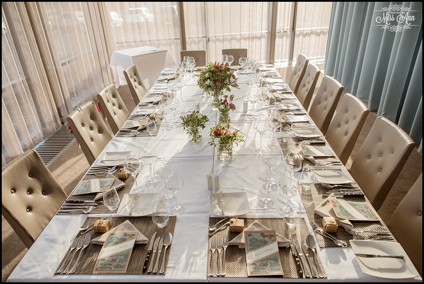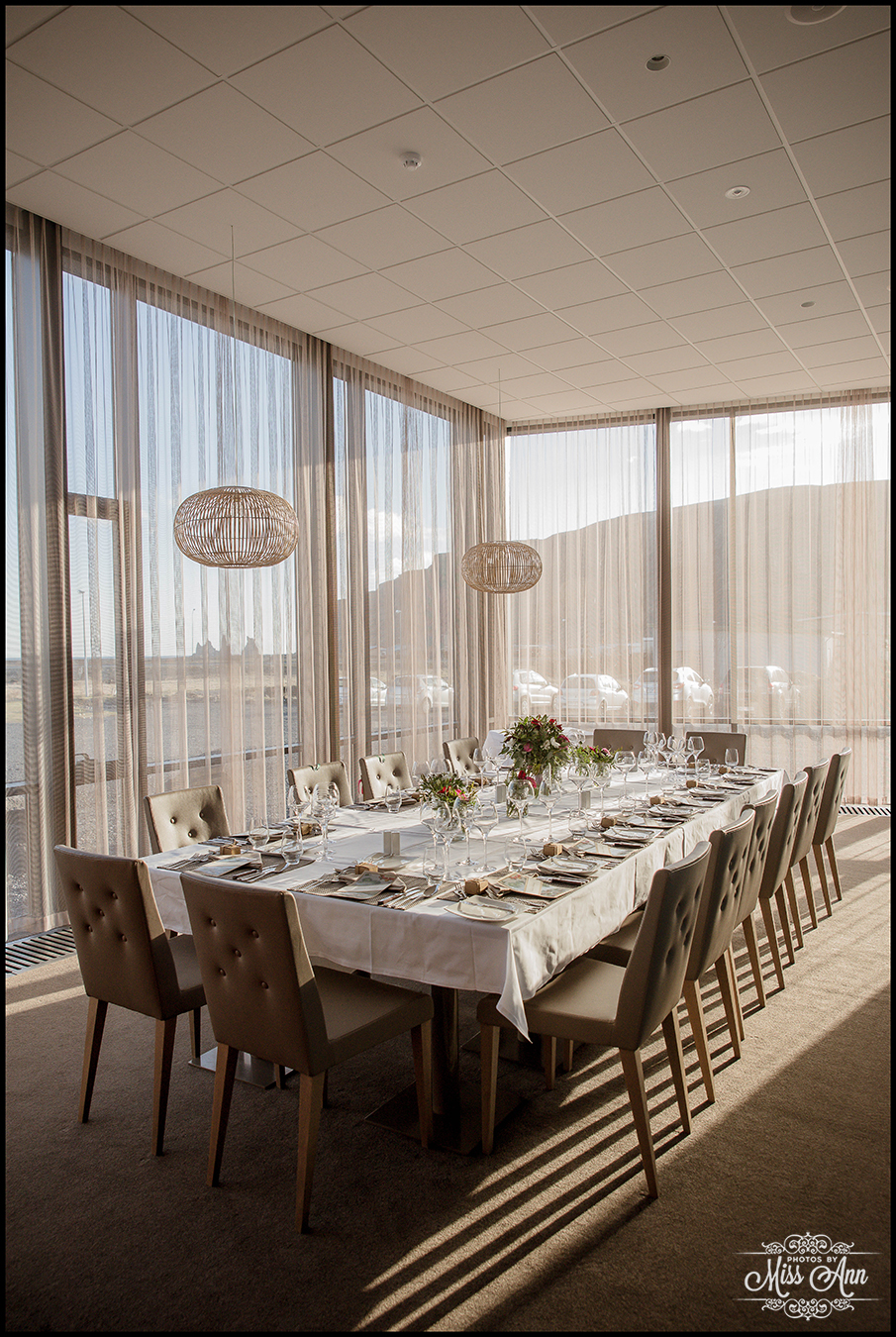 Two super-secret waterfalls were next on their Iceland wedding adventure agenda and they were stunning as you will see from the gorgeous images from Photos by Miss Ann, below. The travel part of journey ended at the dramatic Reynisfjara black sand beach basalt columns and boy was it a lovely wave-crashing snow filled ending! After arriving back to the hotel, the guests freshened up and came downstairs to Richard and Bethany’s exquisitely set Iceland wedding reception! Oh la la and make sure you check out their Iceland wedding centerpieces, wedding favors, and menus, you’ll swoon I’m sure of it. Enjoy these Iceland wedding images below and as a side note folks – Did you see their impromptu Iceland Pre Wedding Session at Seljalandsfoss Waterfall? If not, go back here to view.