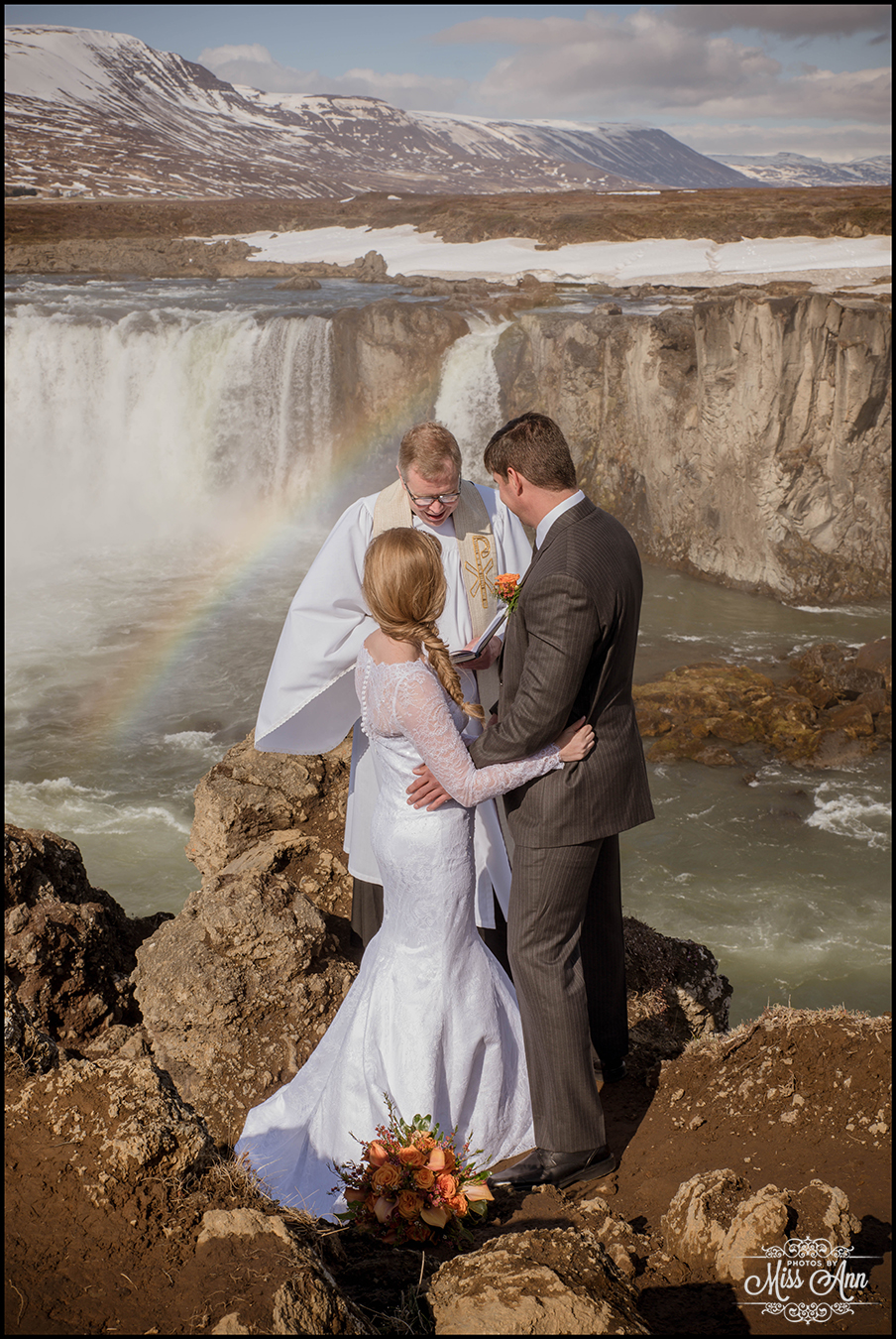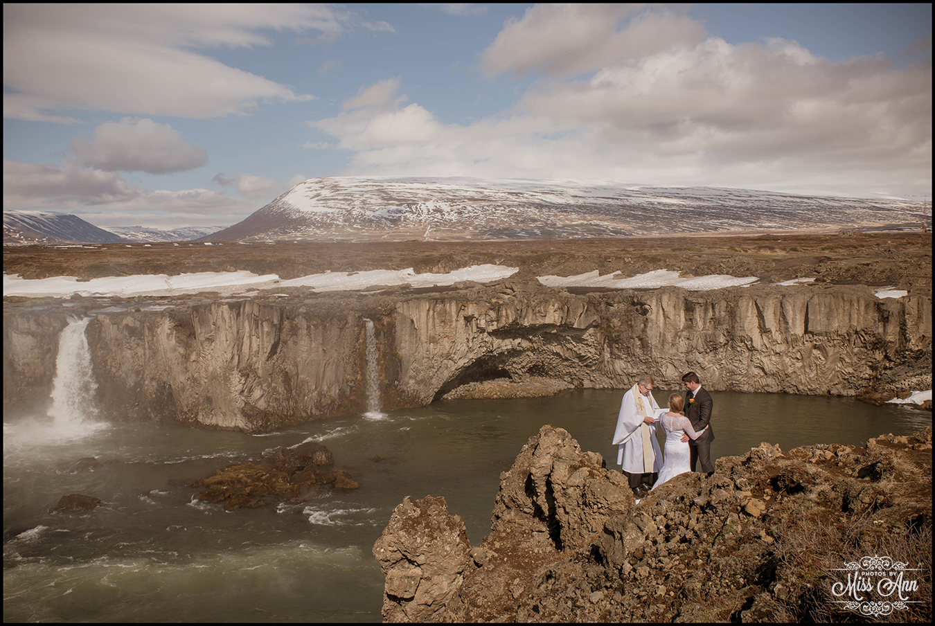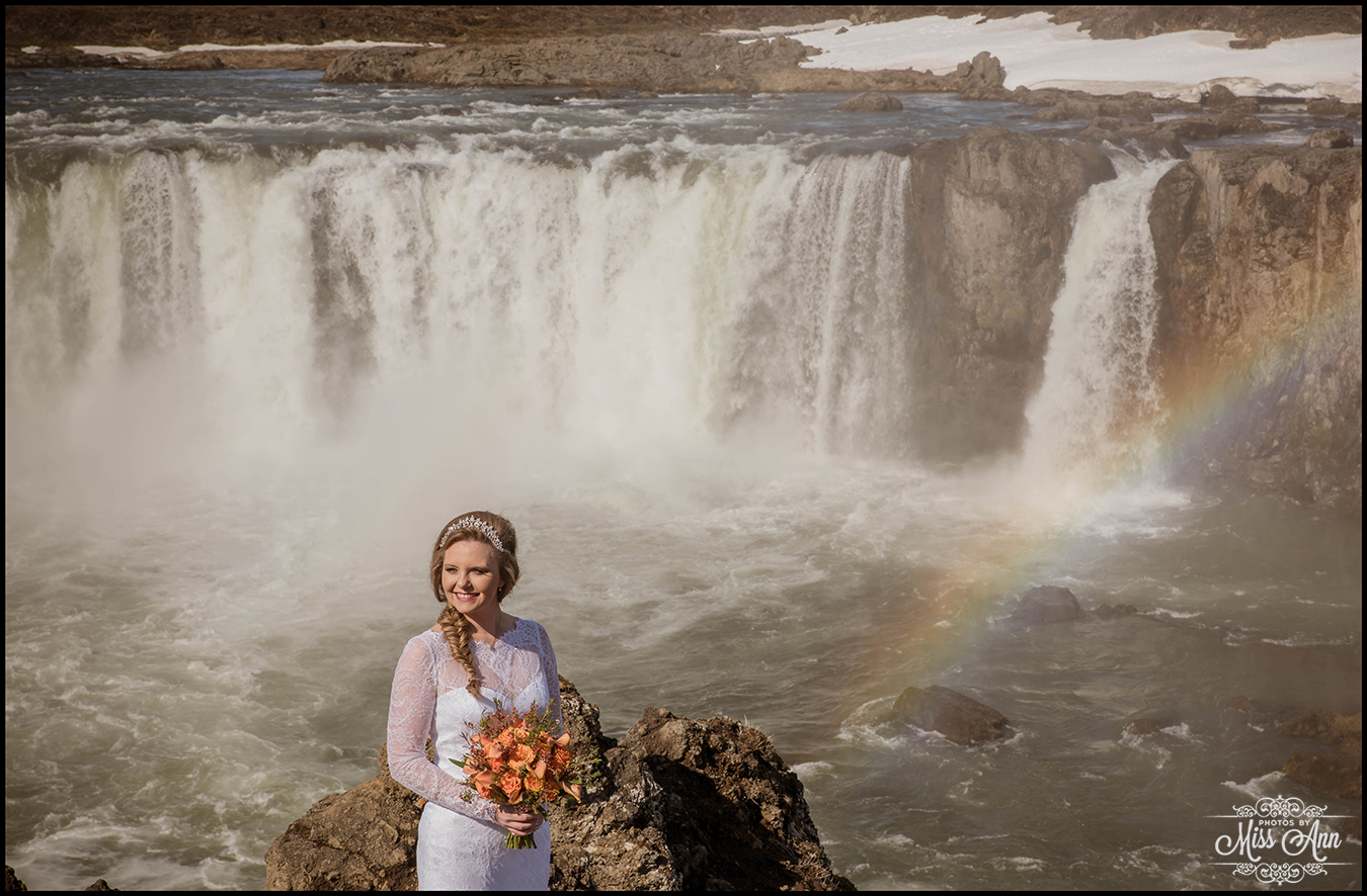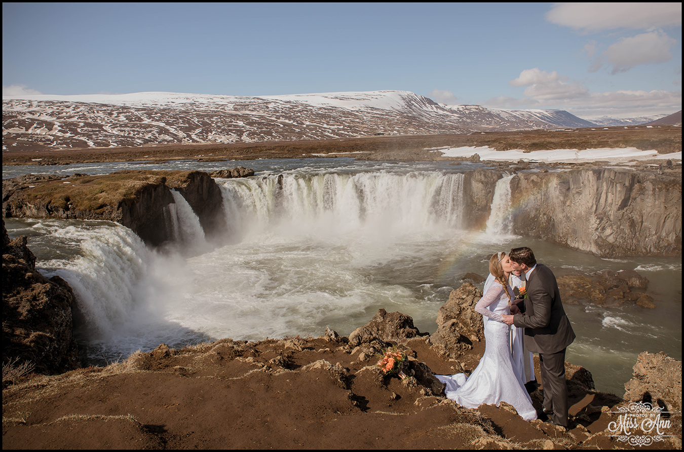Northern Iceland is magical, that simple. Then when you add in a striking bride and handsome groom it turns into a fairytale! Miranda and Pete from Atlanta, Georgia were adventurous enough to head to the dramatic backdrop of Godafoss waterfall for their wedding ceremony. This waterfall is often referred to as the Waterfall of the Gods, see below as to why =)