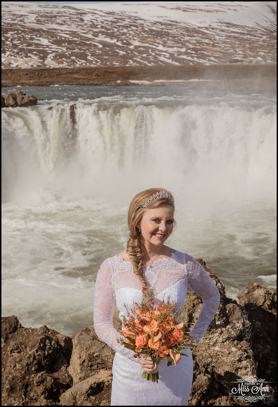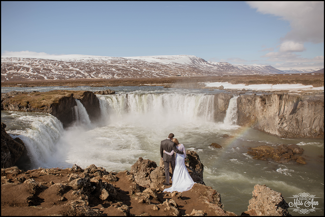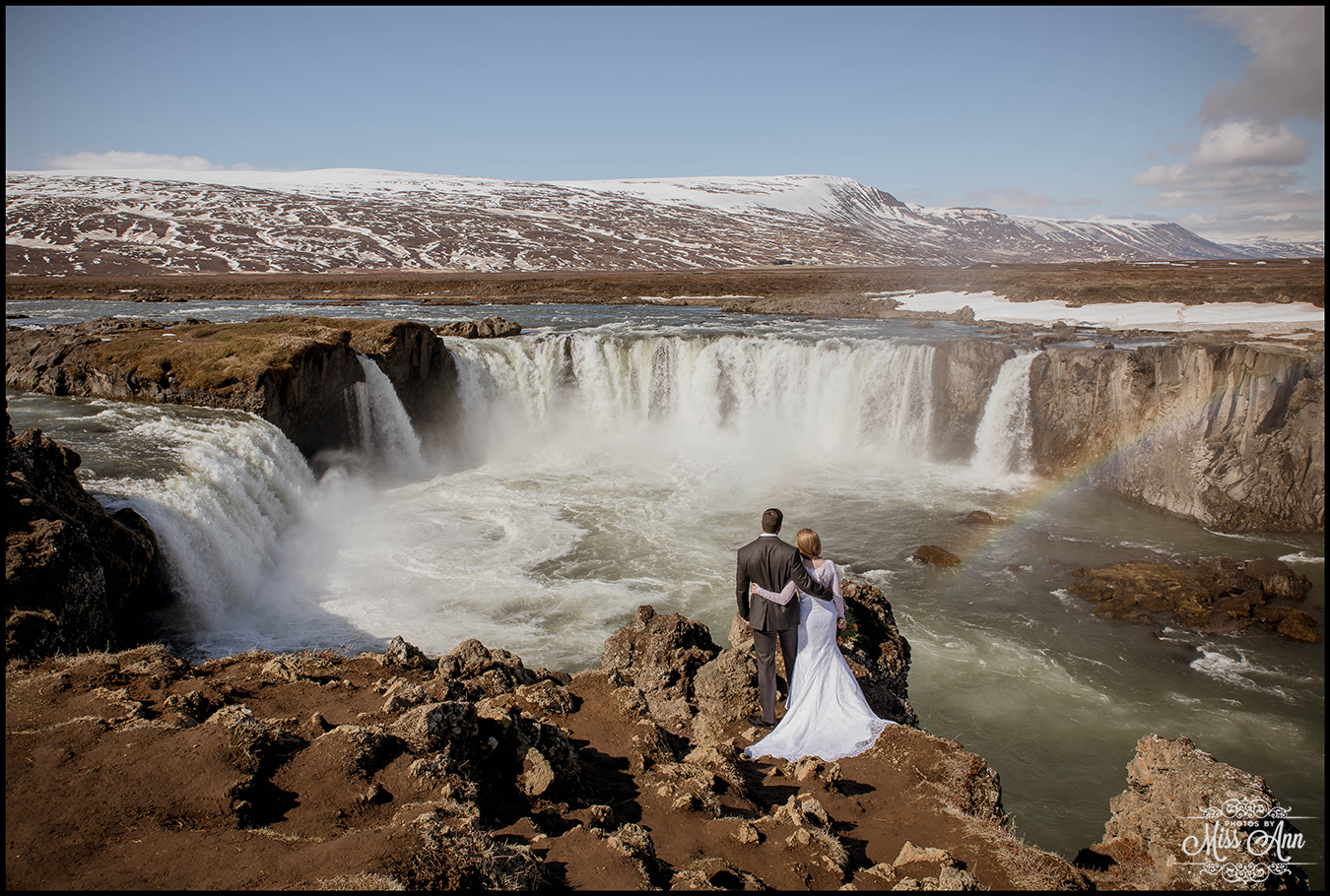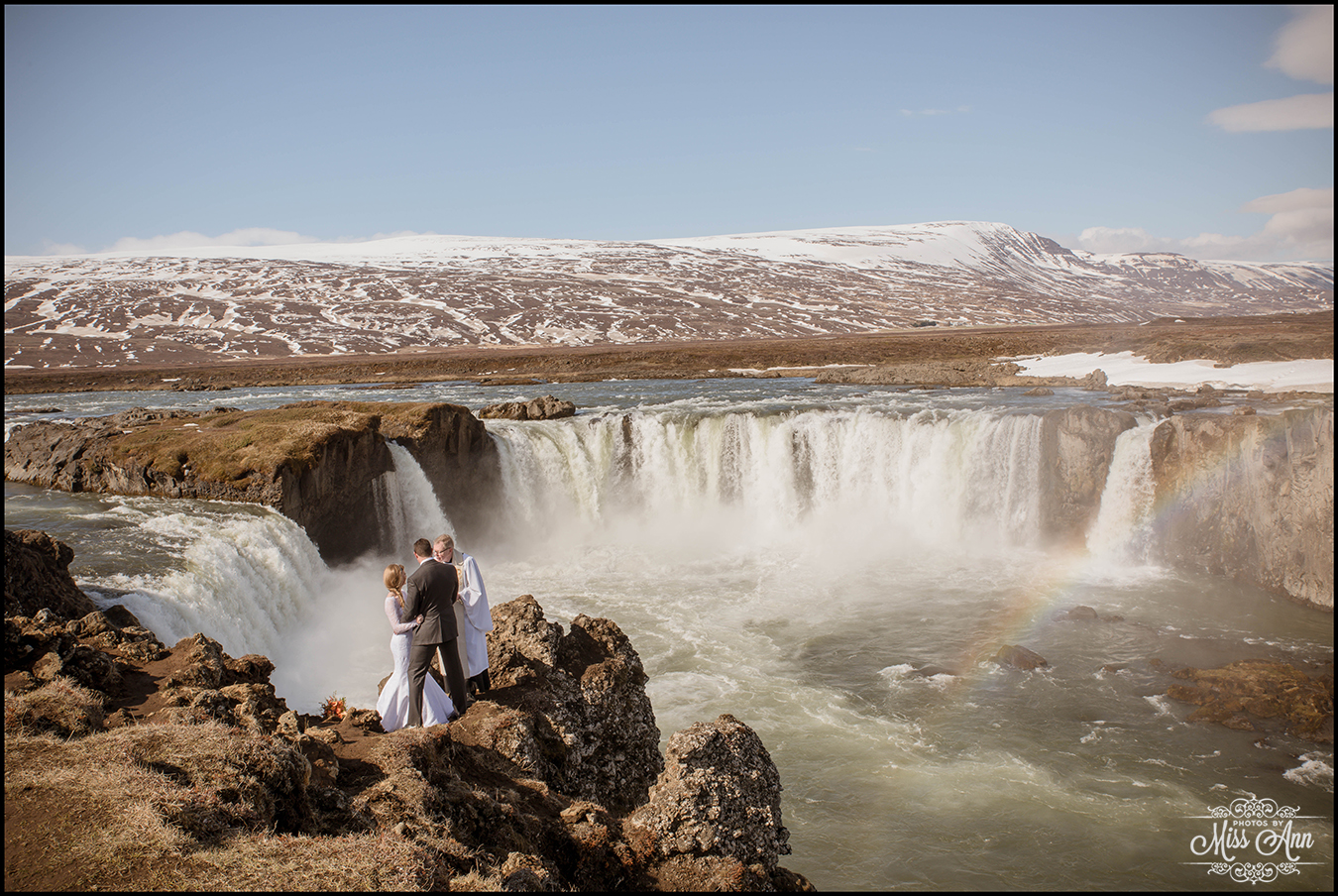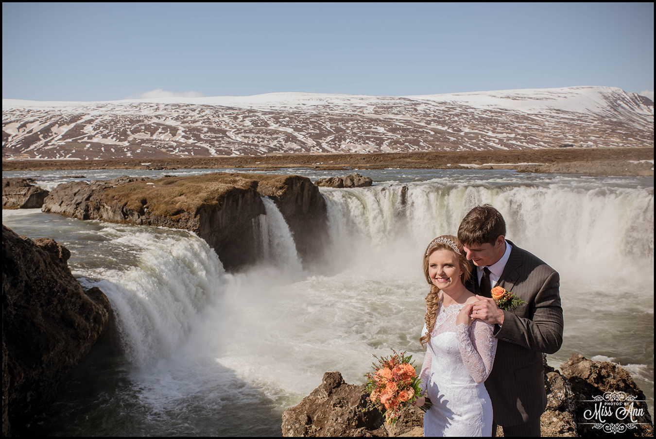 Northern Iceland is magical, that simple. Then when you add in a striking bride and handsome groom it turns into a fairytale! Miranda and Pete from Atlanta, Georgia were adventurous enough to head to the dramatic backdrop of Godafoss waterfall for their wedding ceremony. This waterfall is often referred to as the Waterfall of the Gods, see below as to why =)