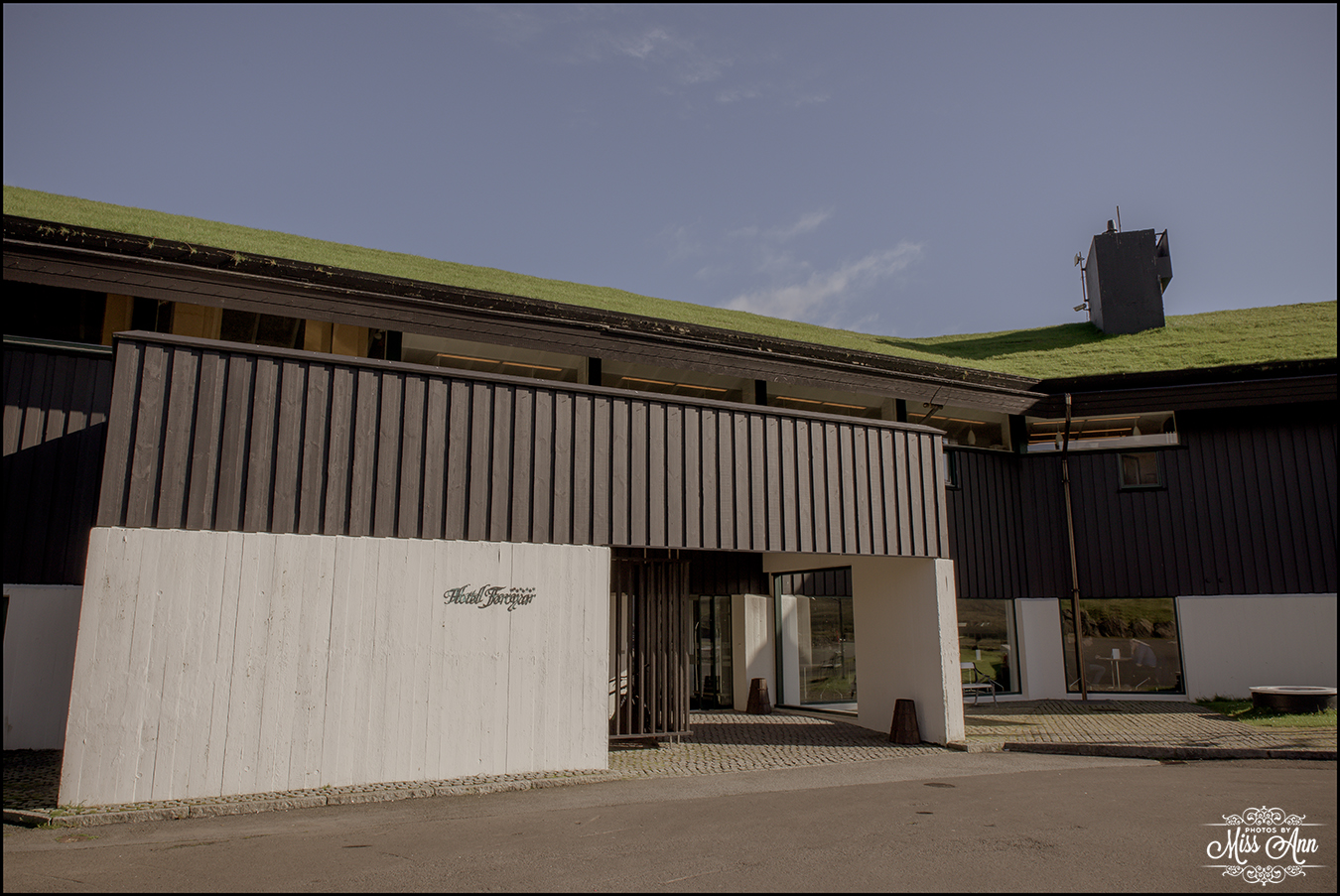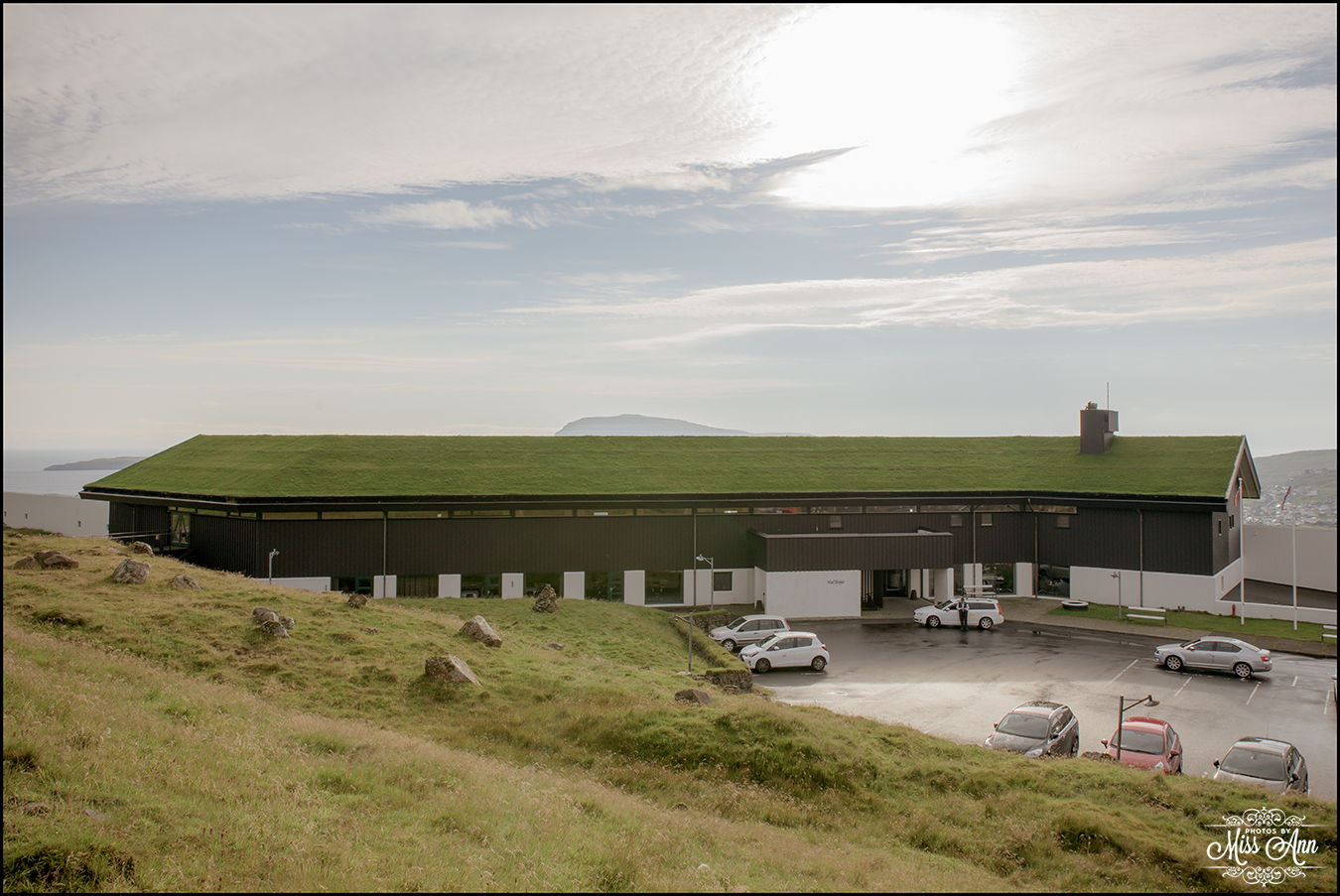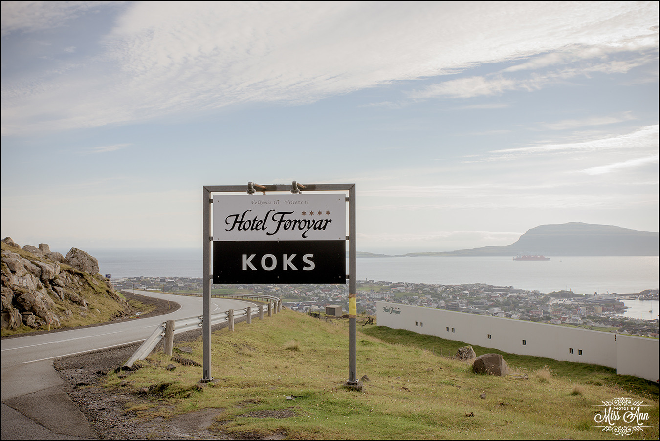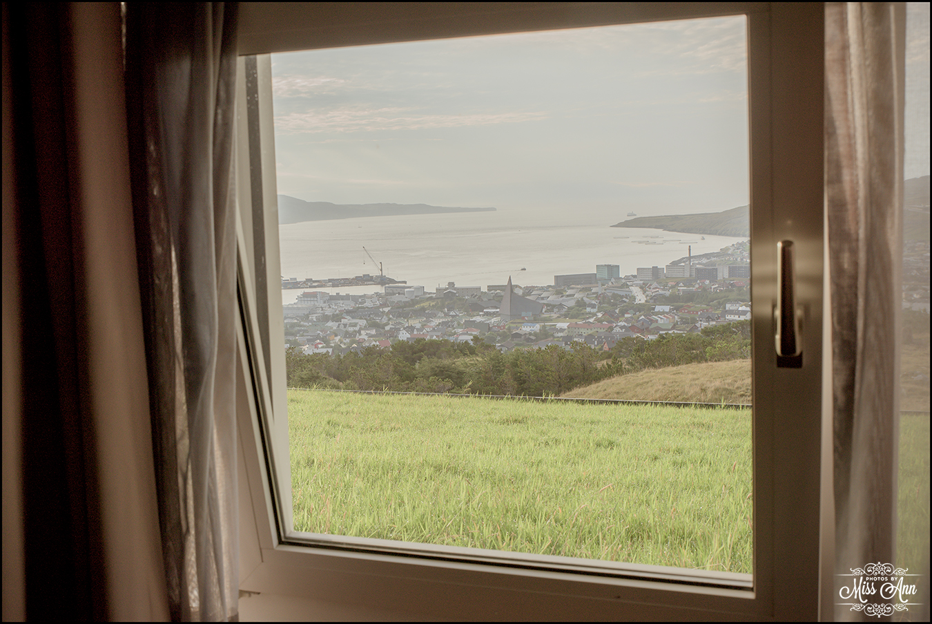 Within the mainland island just a 5 minute drive from the sparkling seaside city of Torshavn, sits on a hillside overlooking the city, the perfect Faroe Islands wedding location: Hotel Føroyar. Back in September I was lucky enough to call this amazing hotel my home base for several nights as I location scouted both on land and on sea for epic Faroe Island wedding locations! From the moment I arrived, I smiled. It was very late and pitch dark but I was able to see the lights shinning from the city below and when I opened my hotel room window I found that the hotel was built right into the hill it was perched upon! The next morning, I may or may not have climbed out my window and did somersaults down it 😉