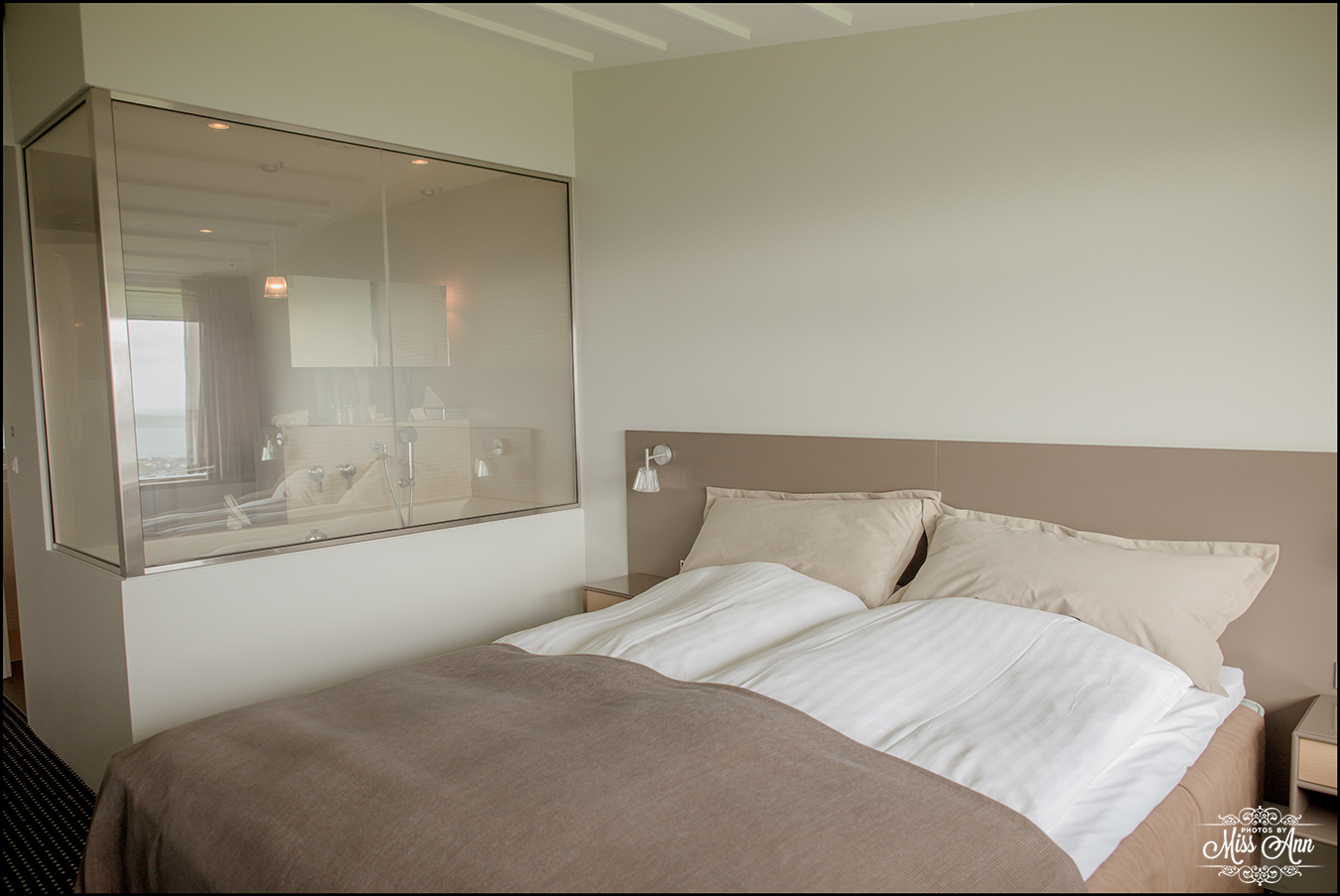 So, are you wondering why I personally loved Hotel Føroyar? The connection I felt to nature was outrageously awesome. Walking towards the entrance to the hotel, you see the entire roof of the hotel is grass covered and then you follow your way to the reception desk and the colors, tones, and textures all feel earthy but with an underling accent of luxury. I was given my keys and told to walk down the hallway where there are rocks from the land incorporated right into the walls you pass to your room. It was brilliant, really freaking brilliant!