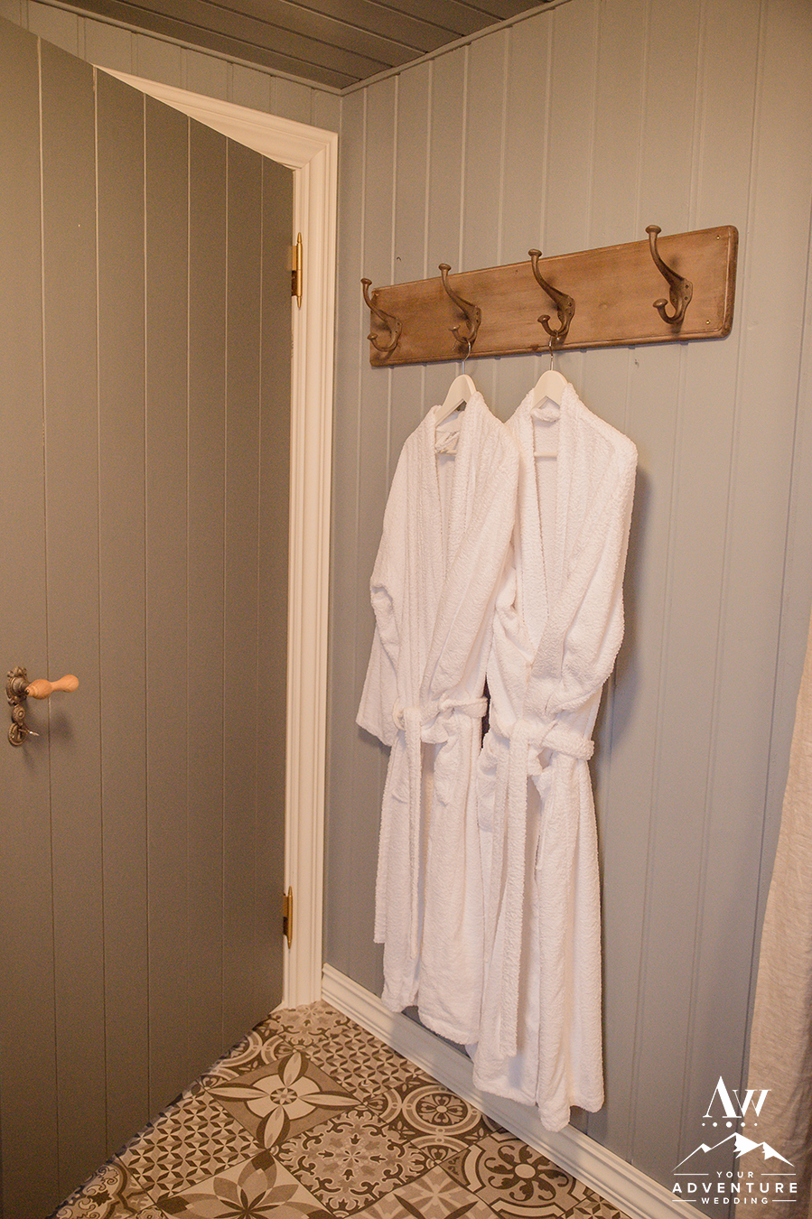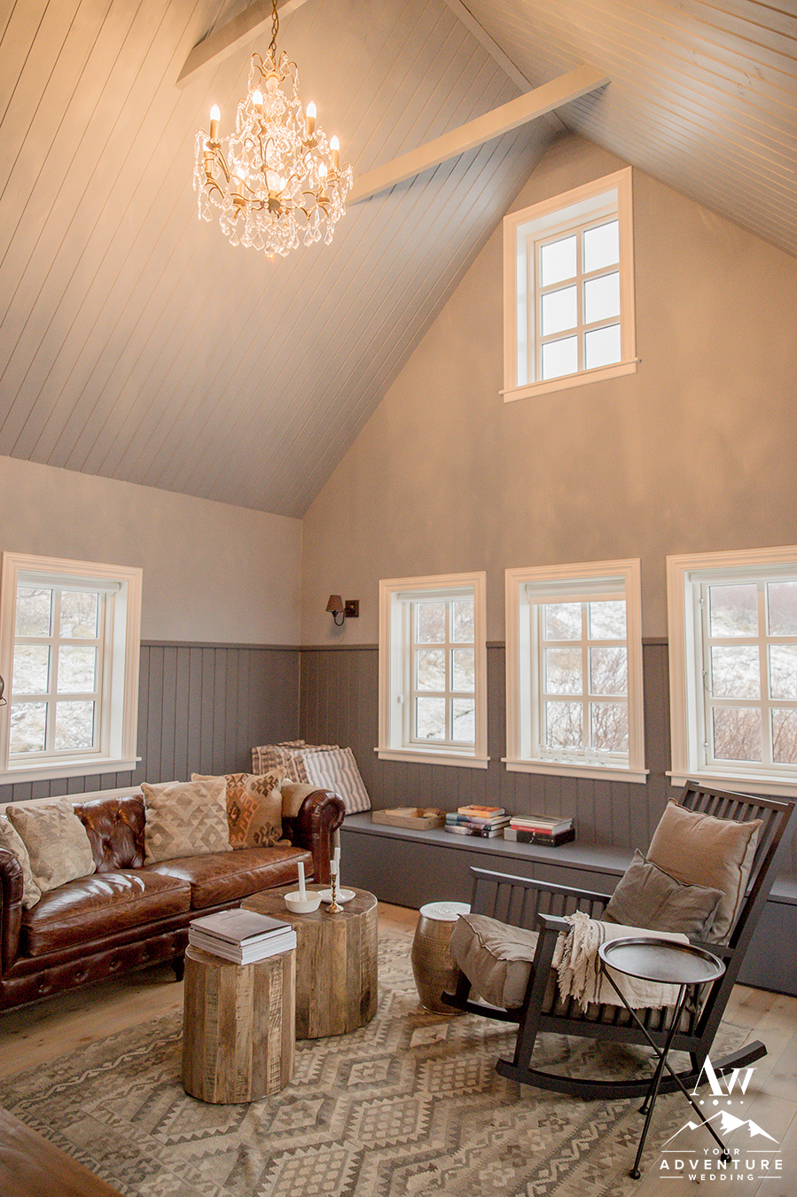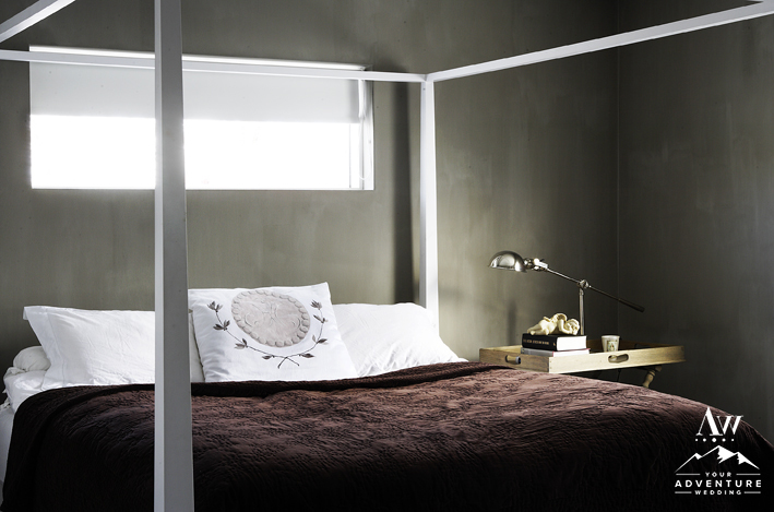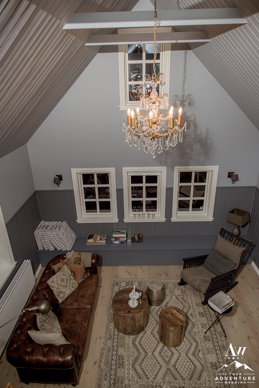 If staying in the cabin as we did, you’ll find a fun little upstairs that features an open air sitting and/or entertainment area where you can watch the TV or read a book with a fabulous view to the fjord or to the below living and dining room. Next to this space is a bonus bedroom that has 2 twin beds so this space would be perfect if you are a family of 4 or have a friend or two joining you on your Iceland wedding adventure!