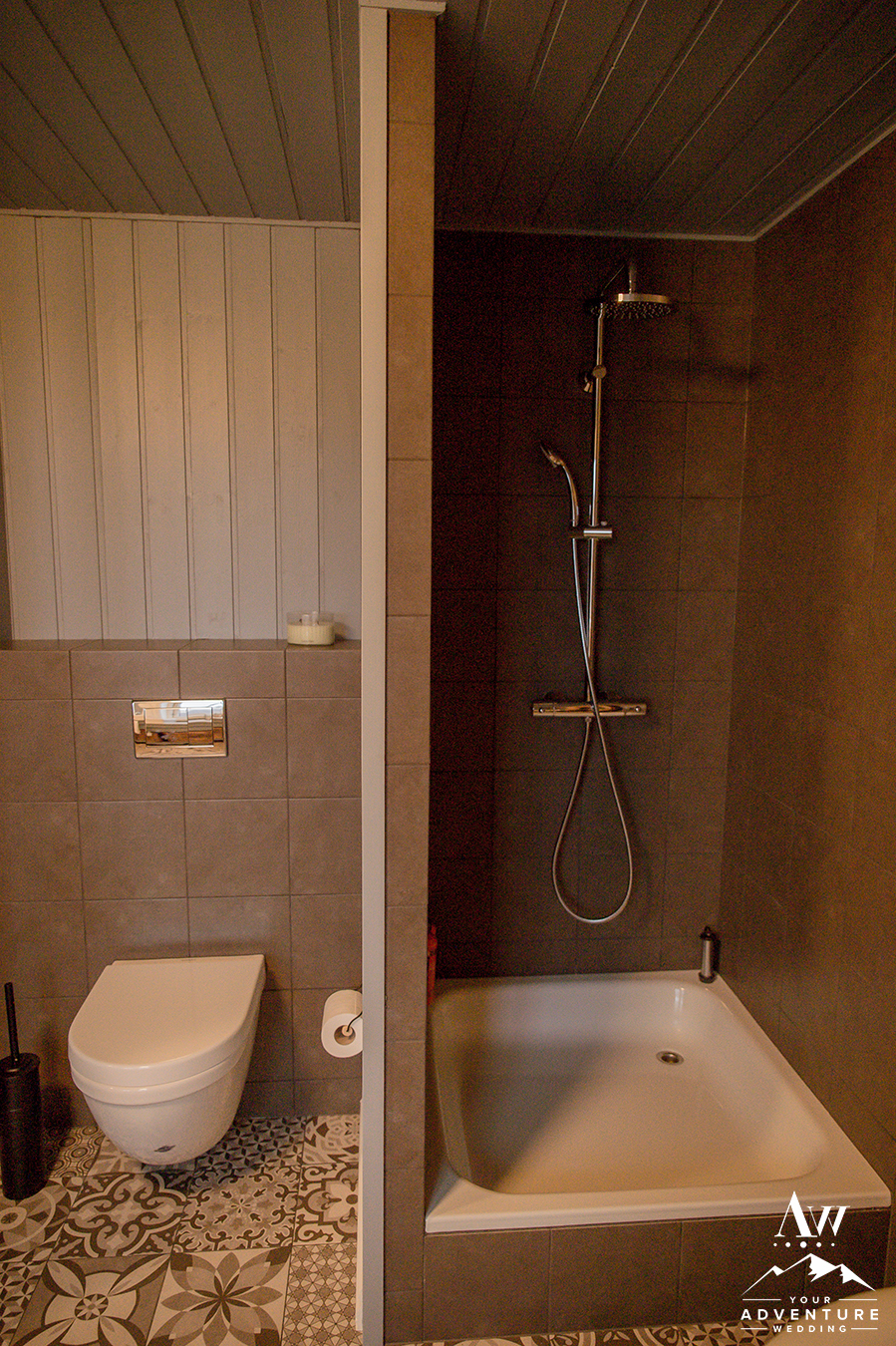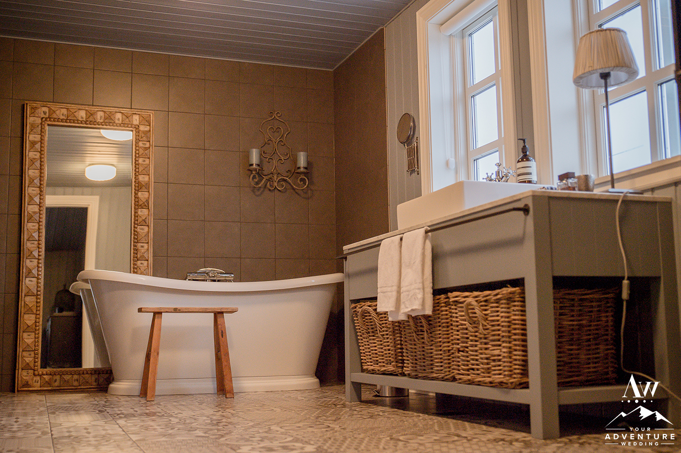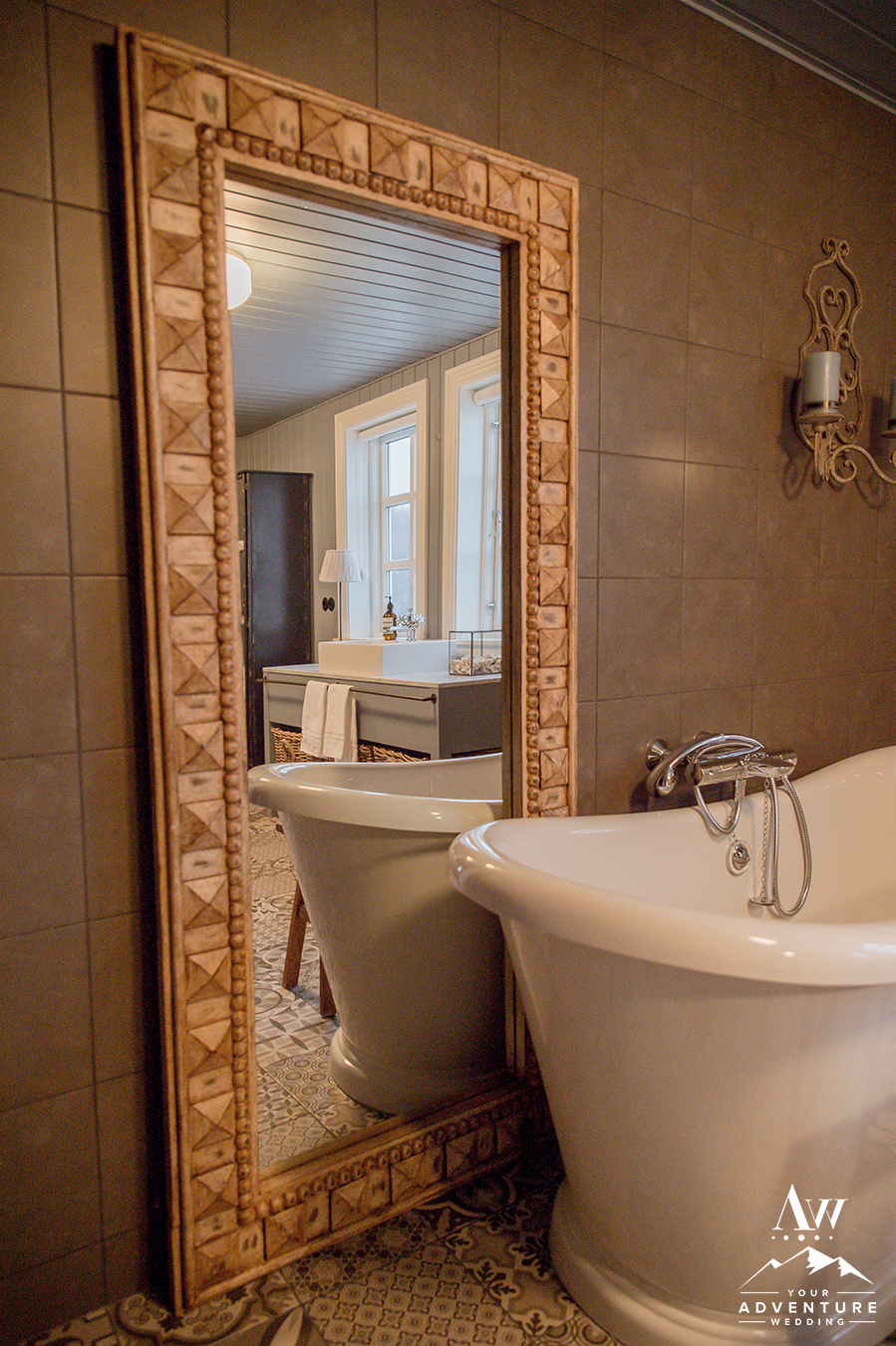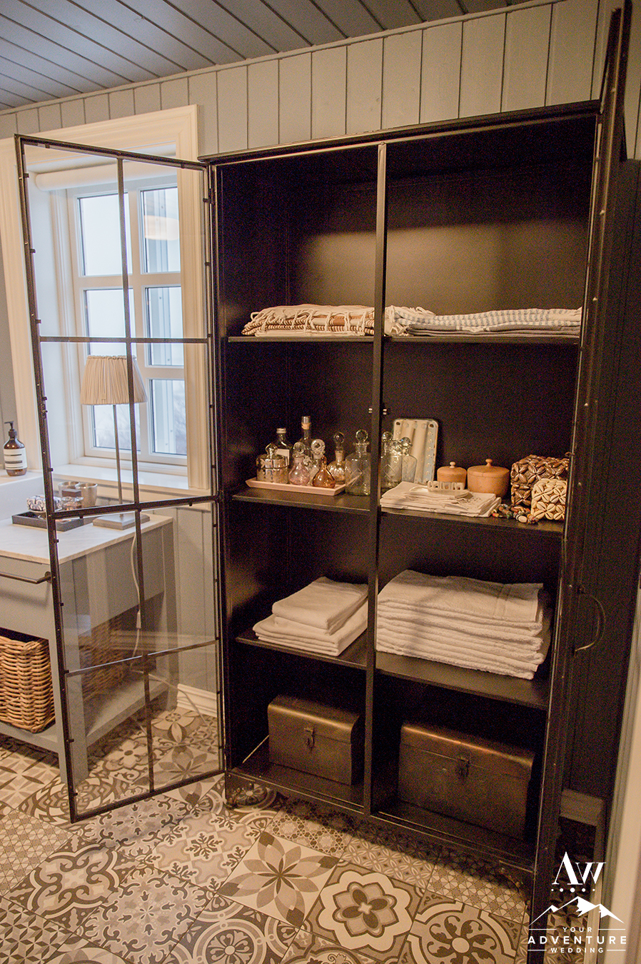 If staying in the cabin as we did, you’ll find a fun little upstairs that features an open air sitting and/or entertainment area where you can watch the TV or read a book with a fabulous view to the fjord or to the below living and dining room. Next to this space is a bonus bedroom that has 2 twin beds so this space would be perfect if you are a family of 4 or have a friend or two joining you on your Iceland wedding adventure!