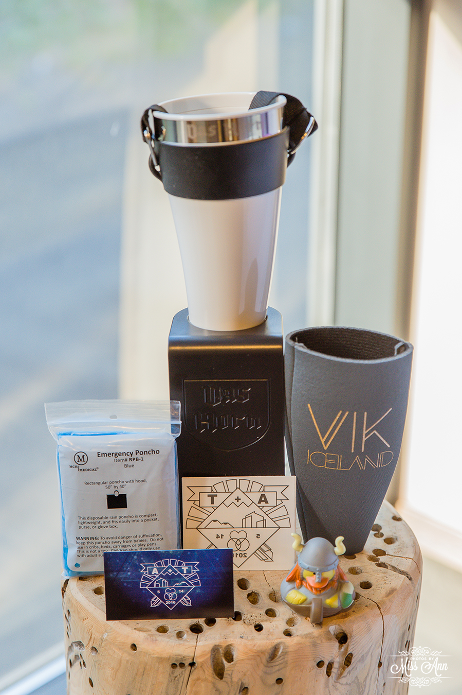 Upon arrival, their 50+ wedding guests were greeted with a 3 course Icelandic meal and a welcome wedding bag which had must have necessities like a horn, a cheat sheet of Icelandic terms, a rain poncho, wedding logo tattoos, and a Viking rubber ducky!