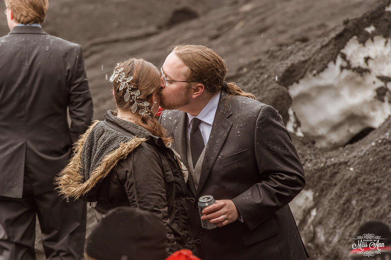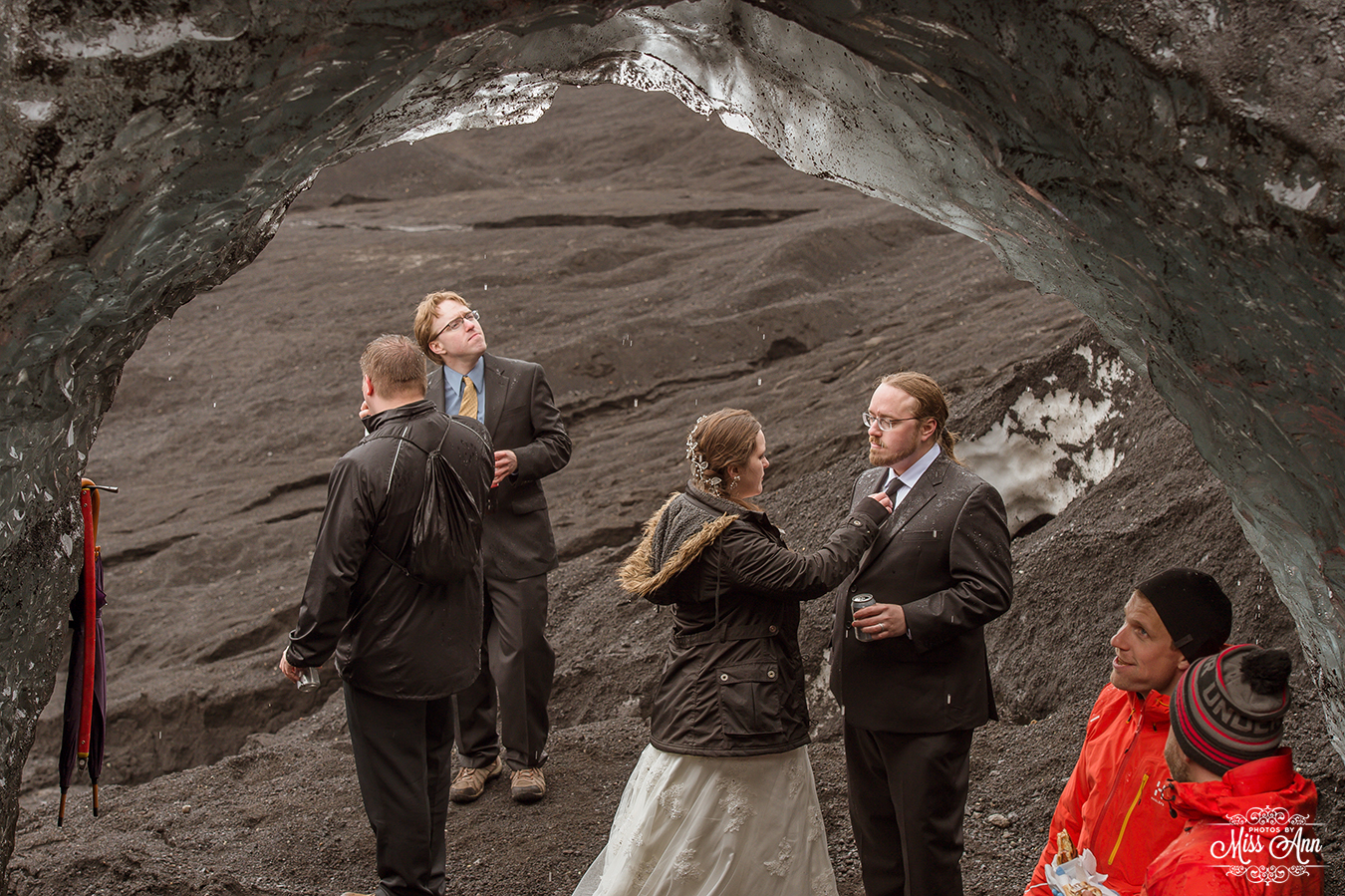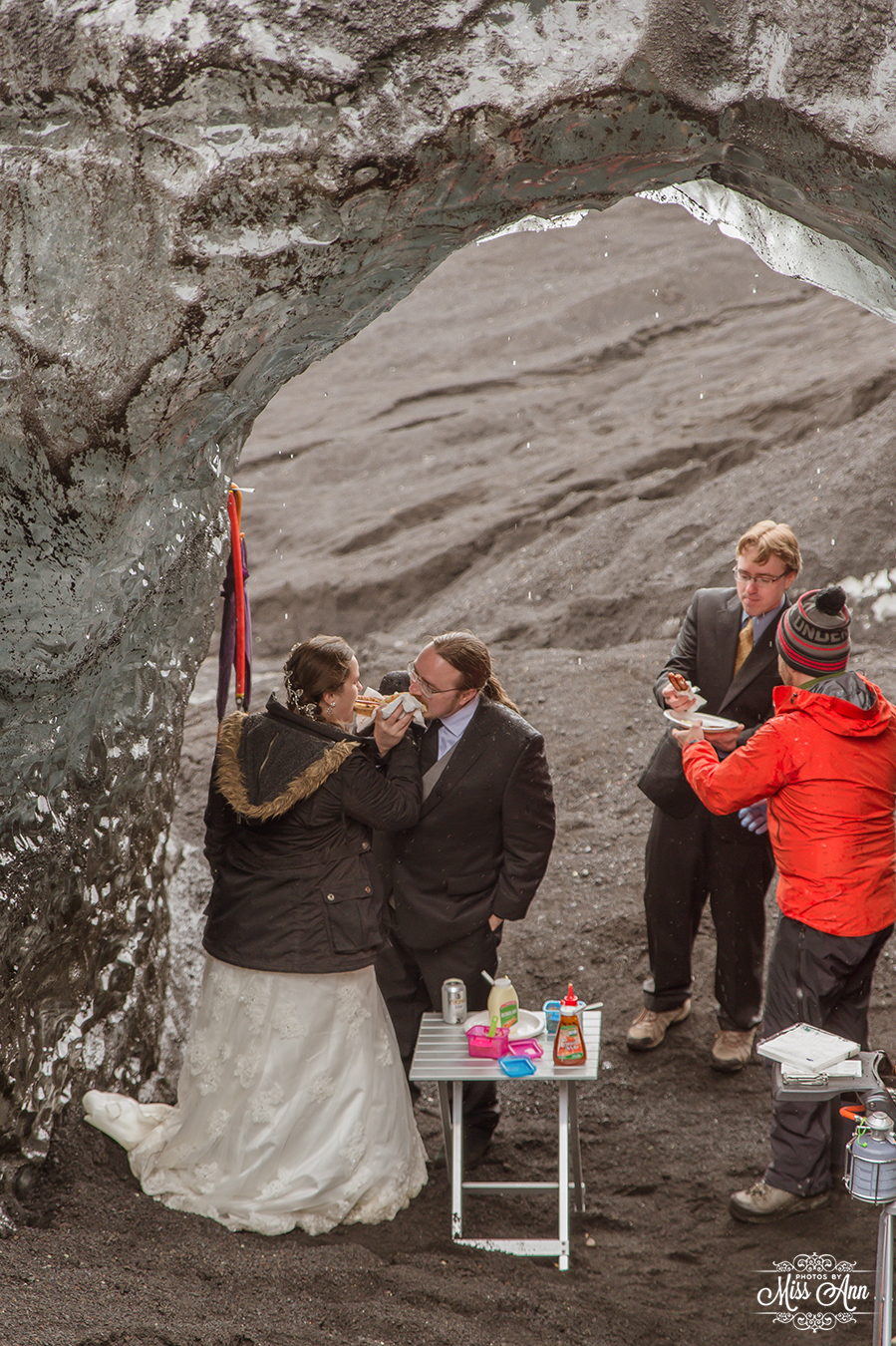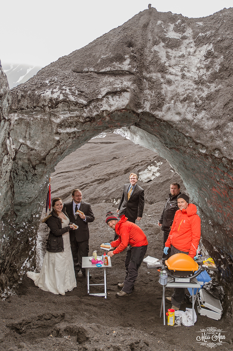 Pretty sure, these two will also go down as one of the most adventurous couples, EVER. Have you ever seen a bride climb a glacier in a wedding dress? …I mean like the whole gamut -crampons and ice picks?! Brittany, had no fear and she conquered that glacier. 😉 After their glacier expedition, they had a BBQ in an ice cave…. Who does that?! Our kickass Iceland wedding couples, that’s who!