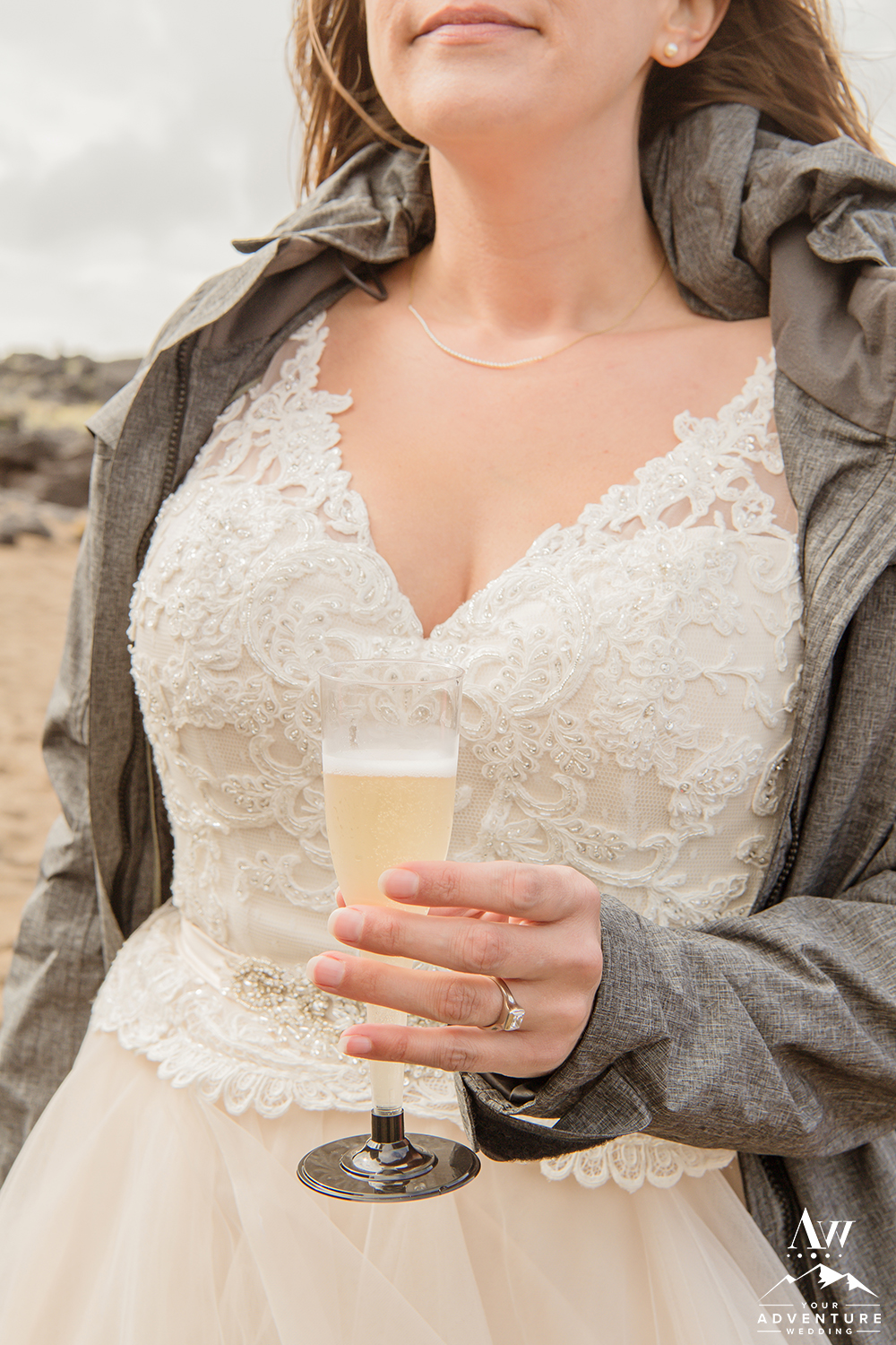 This fab beach was the perfect place to engage their guests in a delicious Iceland wedding champagne toast!