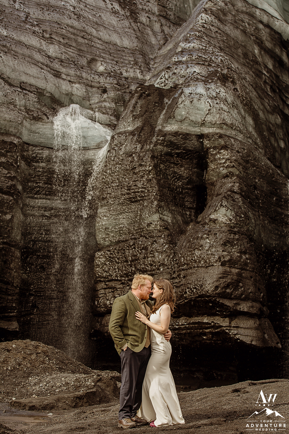 After all of those epic spots, we didn’t have one waterfall! …unless you count the mini waterfalls coming off the holes in the glacier?! Anyhow, we did for sure have to include one! These two had this waterfall to themselves on their Iceland wedding day!