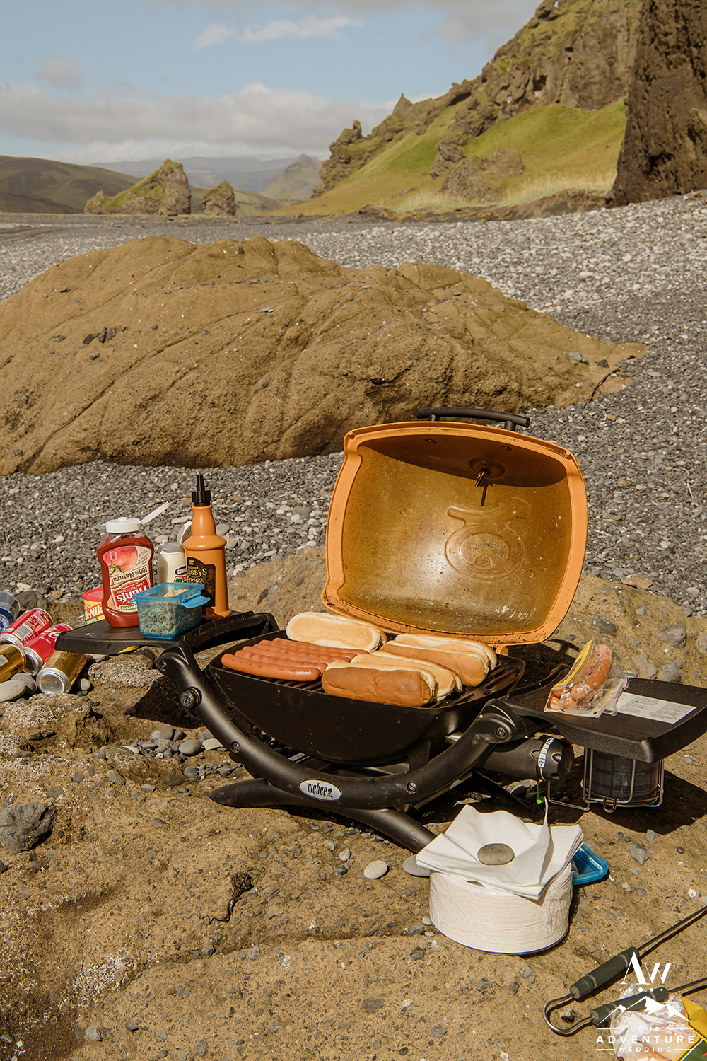 Lunch time came quick! We decided to stop at a gorgeous private black sand beach to have an Icelandic hot dog BBQ! Yum!
