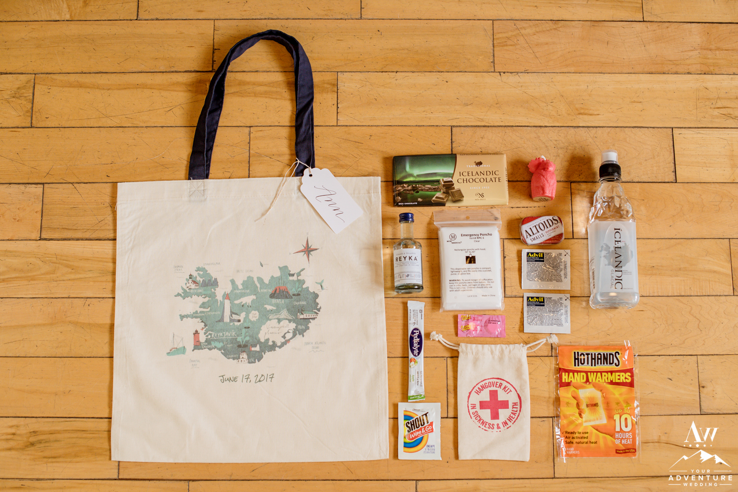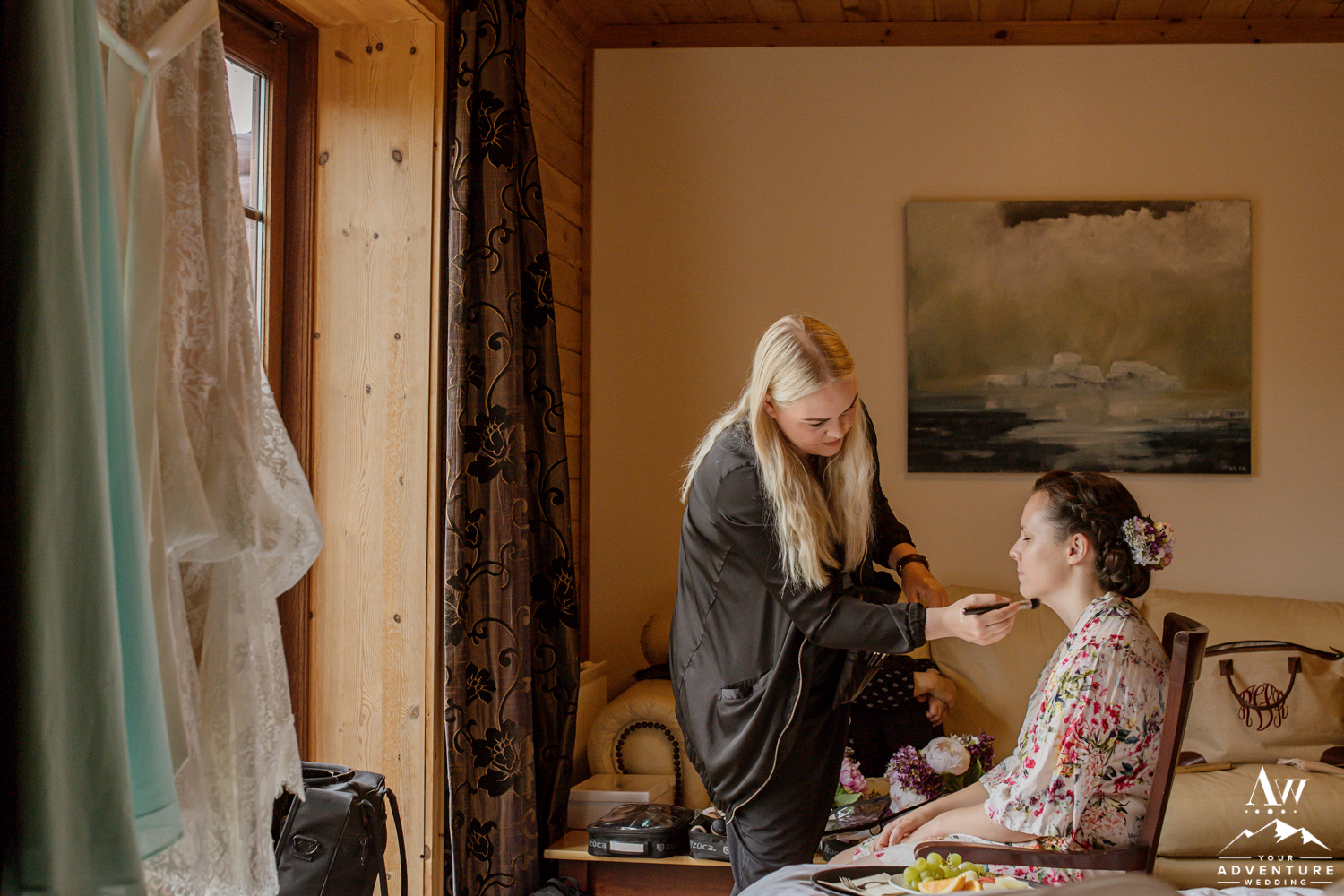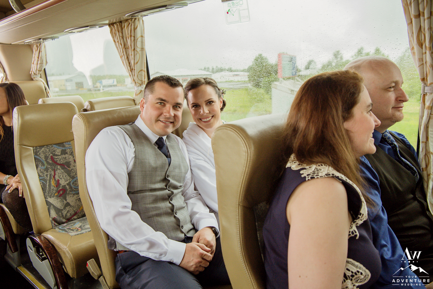 Being avid hikers, travellers, and after having an epic proposal at a castle on a mountain in Spain Rebecca and James, were ready to embark on a new journey of planning their unforgettable wedding day in Iceland. Hotel Ranga served as our fantastic ‘base camp’ for both the wedding welcome dinner and the reception after the adventure wedding day. Rebecca and James had lovely Iceland wedding details such as timeline cards and wedding welcome bags (seriously, they had the coolest stuff in there!) which even included a thoughtful “hangover kit” for their guests. The day began around 5am with our Iceland hair and makeup team coming to their hotel room. Then around 8am our transportation arrives and we were off to their beautiful waterfall wedding ceremony.