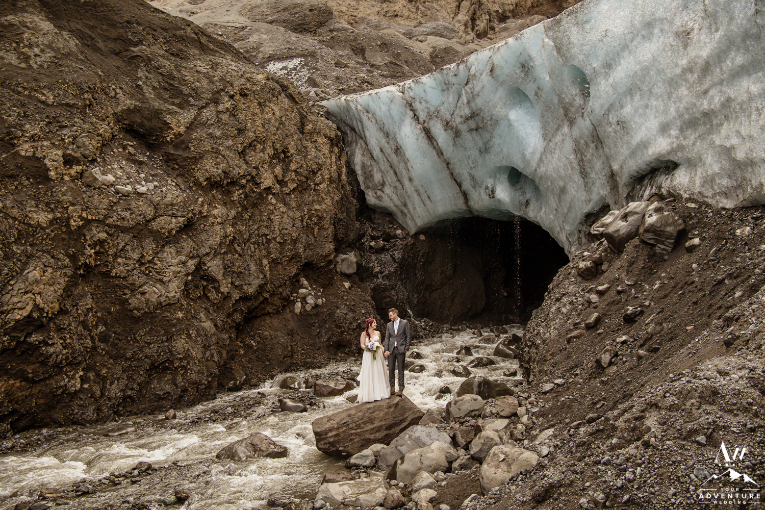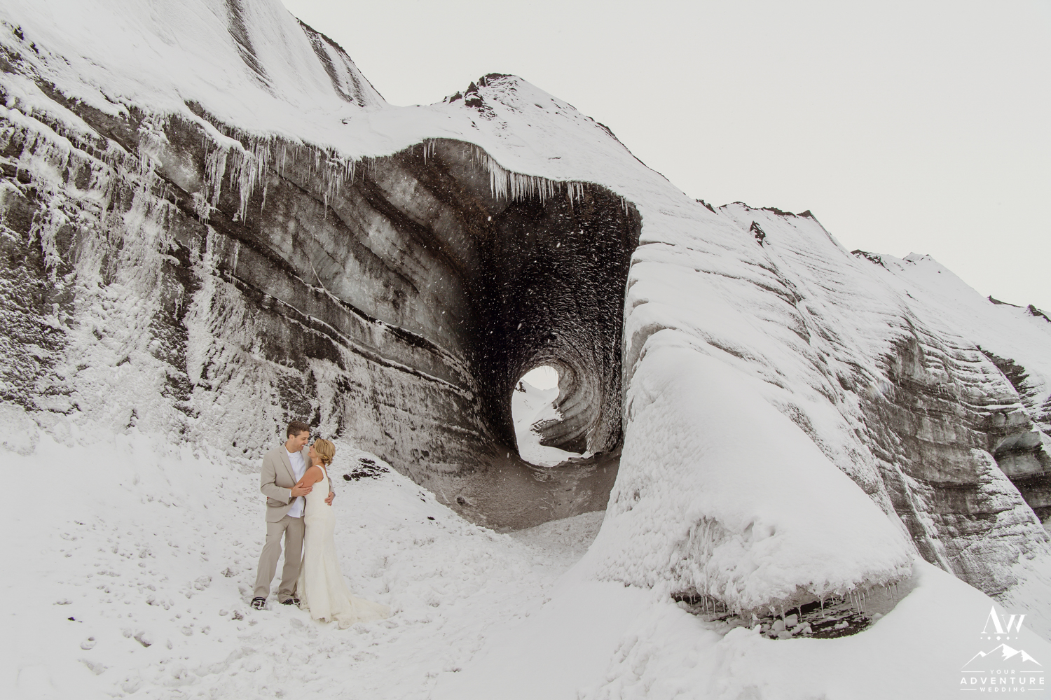 Tara and Josh’s ice cave wedding day with blue ice caves, black glaciers, a private beach and more.
