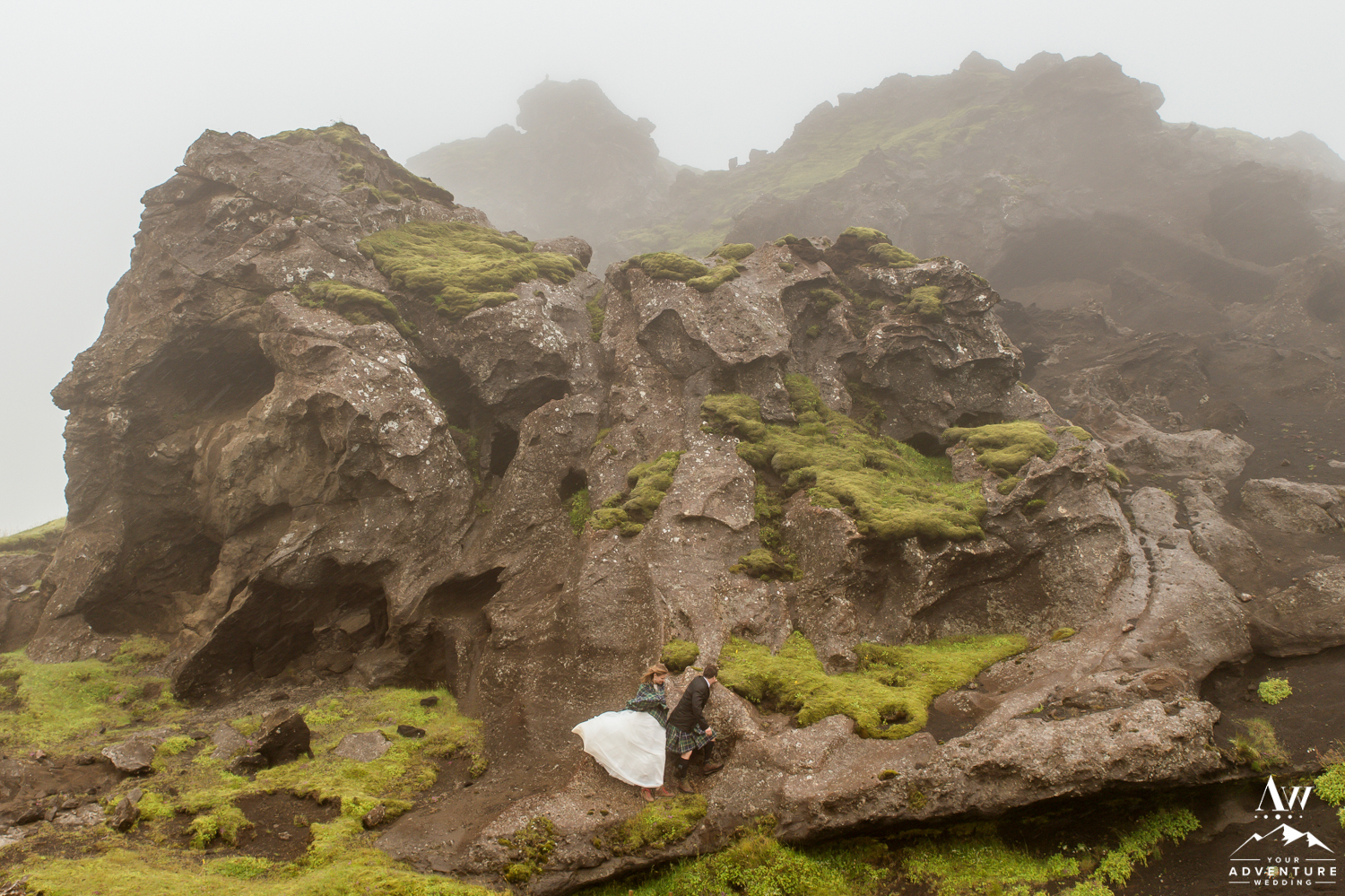 You have heard us talk about the unpredictable weather that happens in Iceland, right? Well the extreme weather is both friend and foe to us, because water/rain/ice/wind can take mountain walls and hollow them out creating incredibly beautiful caves for Iceland weddings! I mean seriously, look at these amazing Iceland natural wonders, just begging to hold your ceremony in them! Exploring a cave during your adventure wedding in Iceland is a super fun activity! Why? You get to touch, feel, and witness the birth of a new landscape here in Iceland. That cave was discovered, maybe used for shelter for the sheep, or handcrafted by nature herself! I often feel like I’m a part of history when I scout or enter inside of one (::Geek Alert:: I know )!