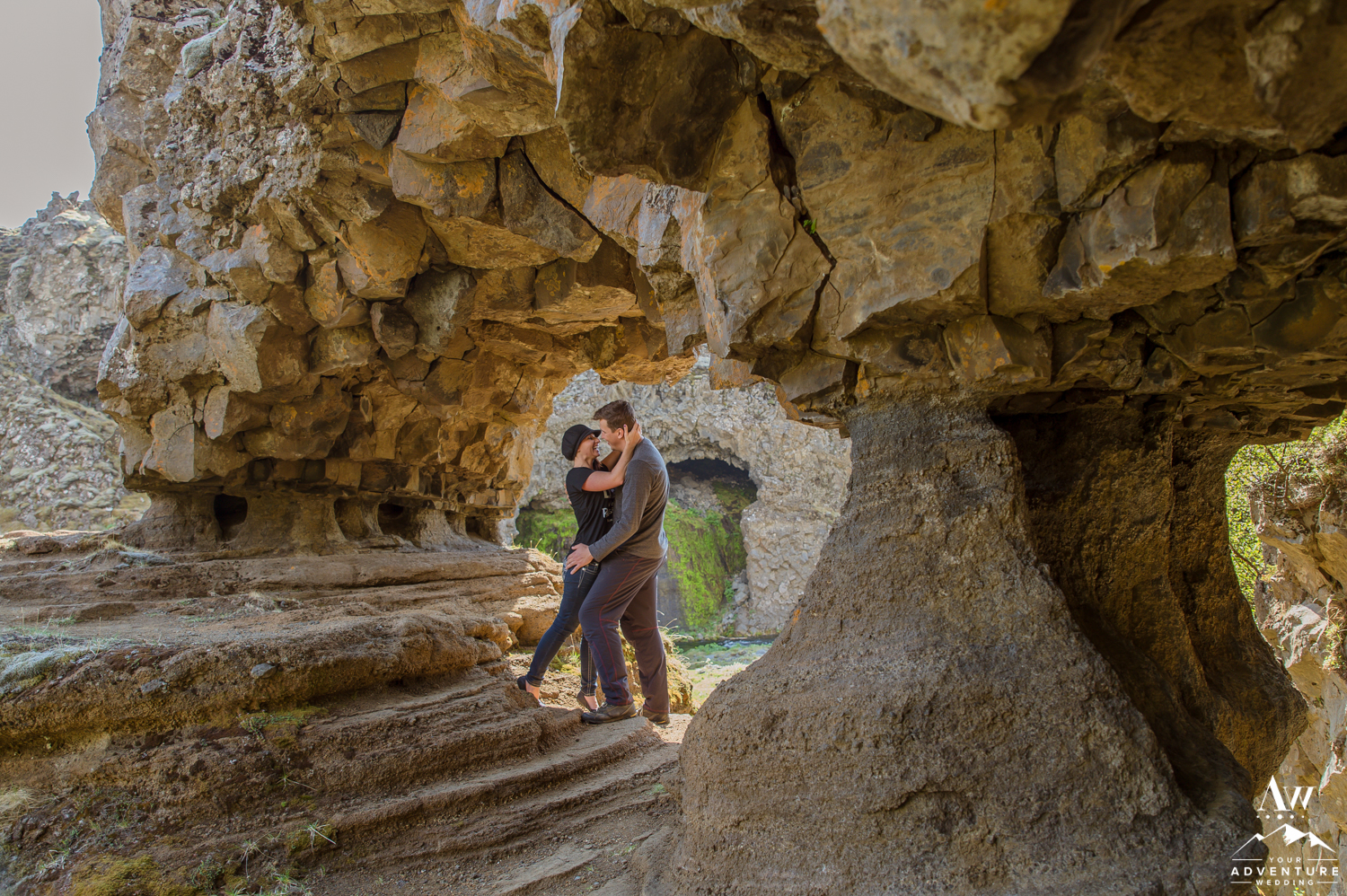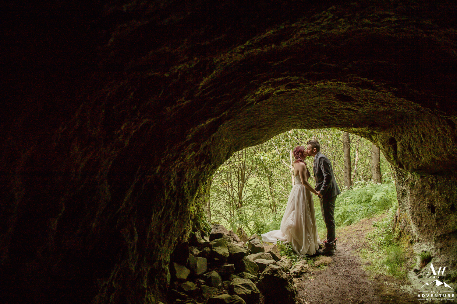 This kind of cave is understated. It sort of provides the best of both worlds because you might like the shelter that a cave provides but want the airiness of the scenery around for your Iceland wedding day adventure. How are these caves formed? Short Story: Hundreds or thousands of years ago, a volcano erupted in Iceland, cooled, and then stopped forming. Result: stunning hidden gems like this throughout the countryside.