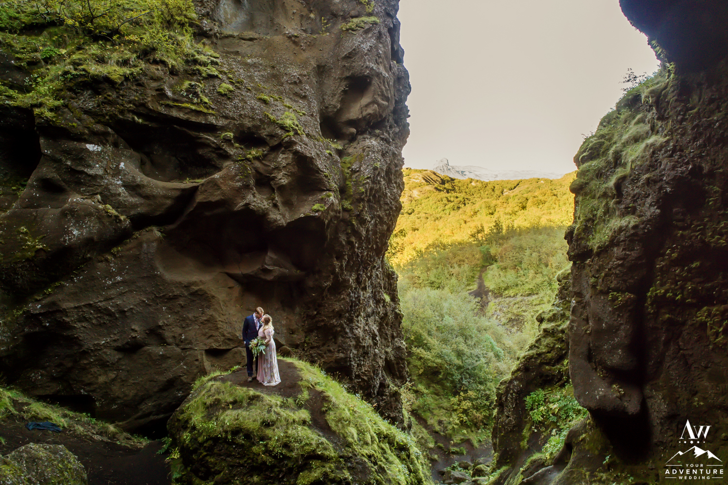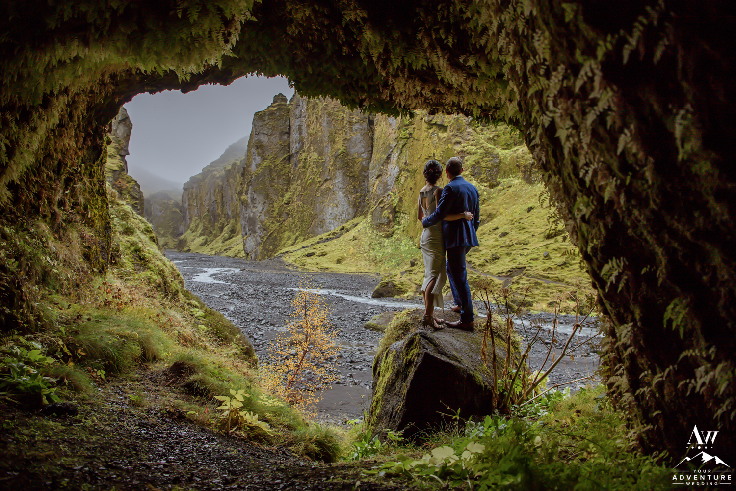 Who knew canyons bore secret caves? This fun fact is one of my favorite surprises that I’ve encountered while planning weddings and elopements in Iceland! At times, they can be quite challenging to get inside (ie, intricate river crossings or rock climbing / bouldering to get inside). Then once you get inside, you might find yourself even more surprised by the structure, texture and tones inside too. Let’s just say that the effort will be worth the view! The canyon cave below for example shocked me with the amount of ferns growing inside. This certainly makes for a very uniquely textured Iceland wedding portrait! The canyon caves we use for our Iceland weddings require special permission / permit for exclusive use, but are sooo worth it!