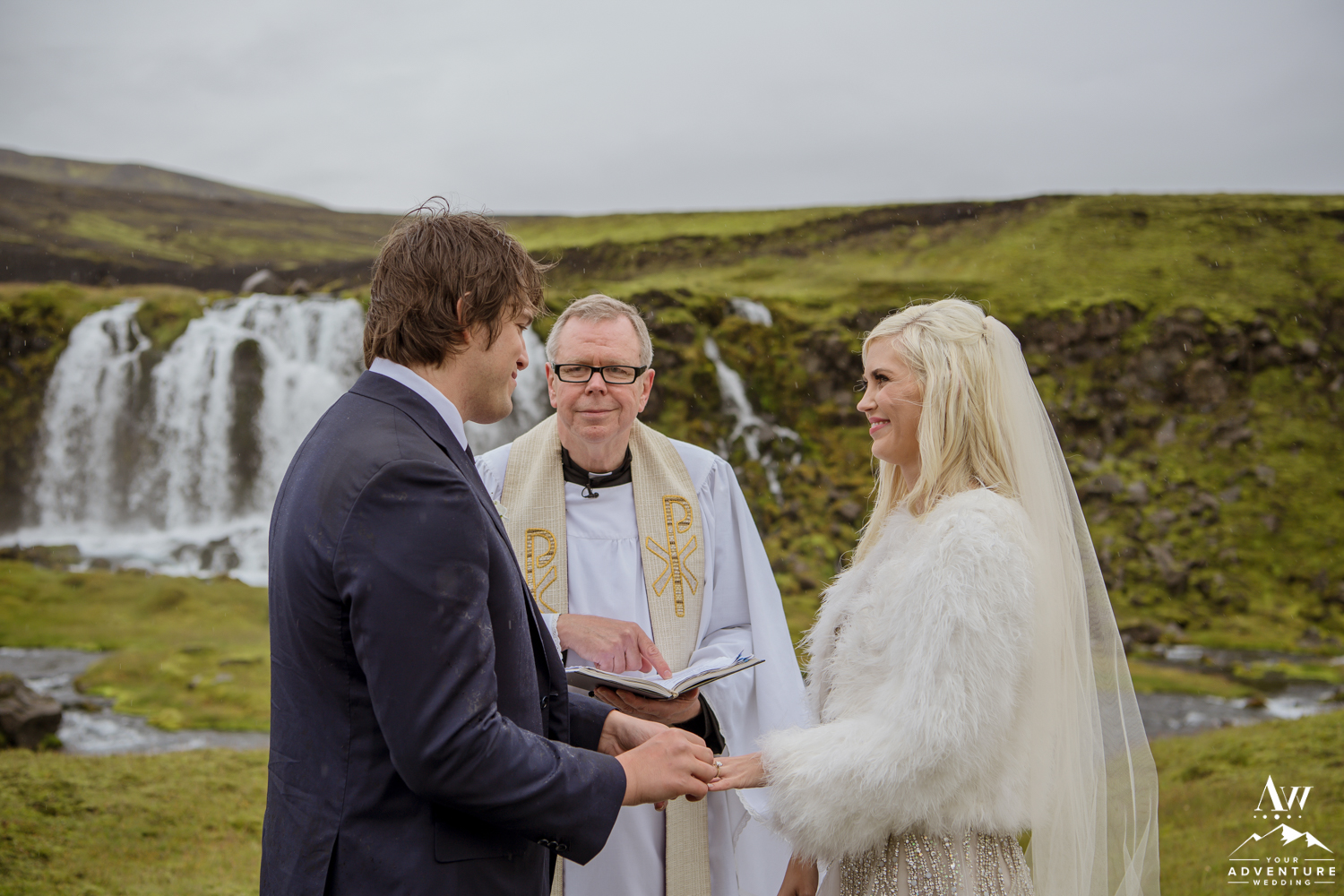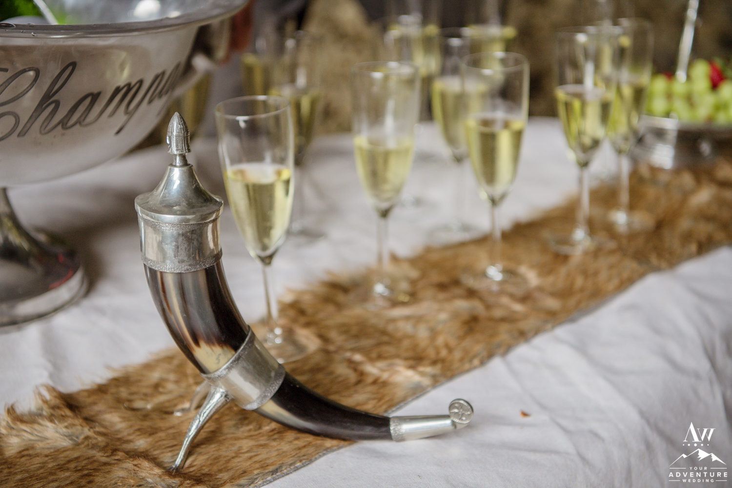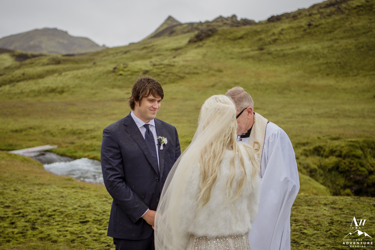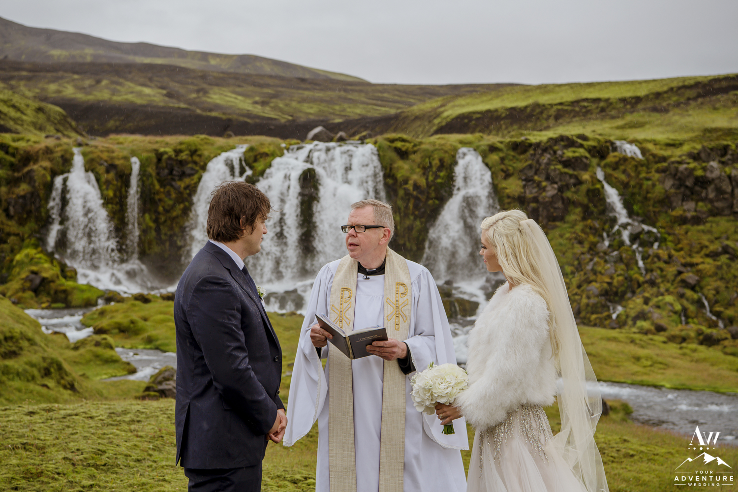 Cameron and Beau invited 10+ of their loved ones with them to Iceland to join in on the intimate exploration the mysterious Icelandic highlands during their custom adventure wedding. Since epic, private, and luxury were priorities on their list of “must haves” for an Iceland wedding location, our team transported them to a stunning secret waterfall where they professed their lifetime commitment to each other. Keeping their guests comfy despite the rain was also important, so the twist of luxury of having black benches and reindeer furs were perfect!