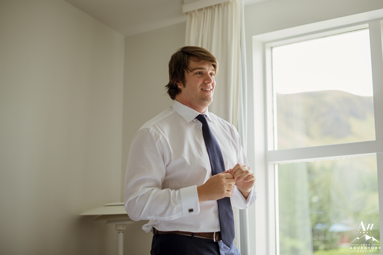 Beau, had an amazing custom made suit that had his name embroidered in the shirt and the suit jacket! Brilliantly styled groom details! That morning, Beau, got ready with the help of his father and even had time to enjoy and Icelandic beer before we headed out for the Iceland wedding adventure day!