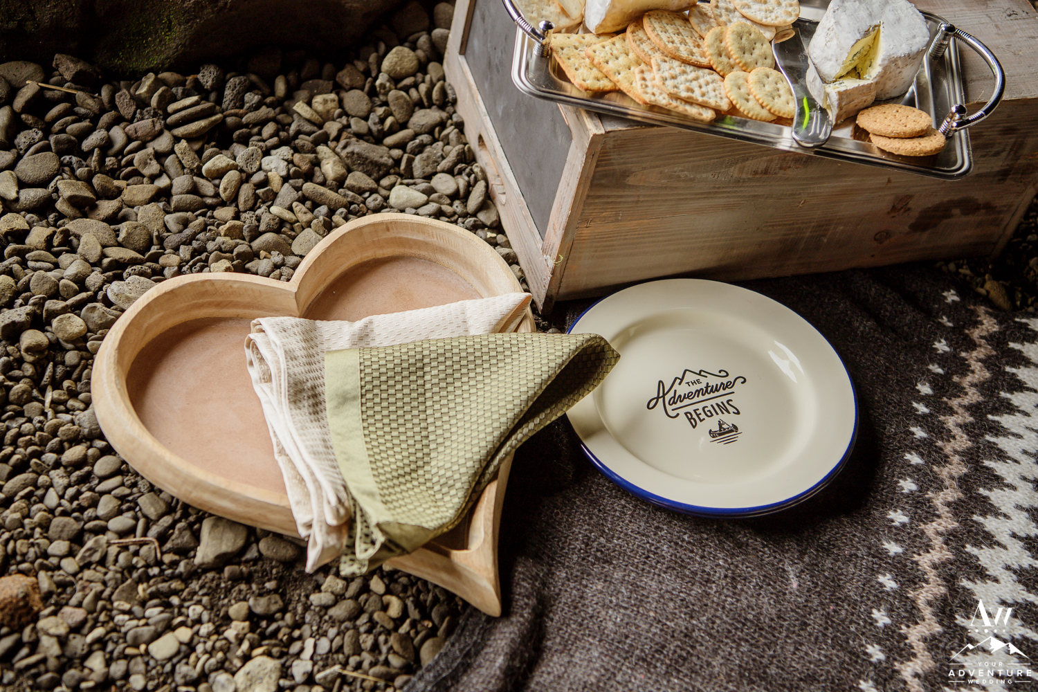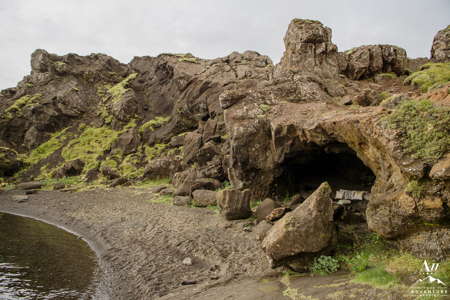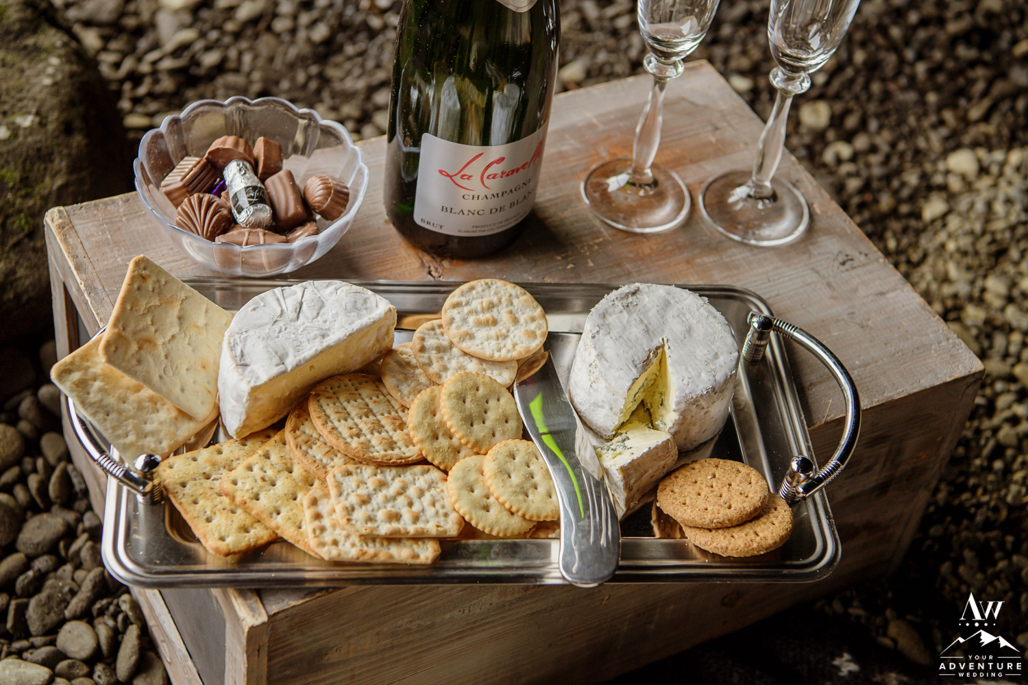 Moments later Gustavo filled Natalia in on what was happening… No tour today to Landmannalaugar, but instead they get to celebrate their LOVE and engagement with someone even more thrilling, a luxury picnic in Iceland! After a short hike they were introduced to their private (and secret) cave where a beautiful surprise picnic was setup by our Iceland Wedding Planner team! Delicious details like La Caravelle champagne, lovely cheese plate, Icelandic chocolates, cozy pillows and blankets!