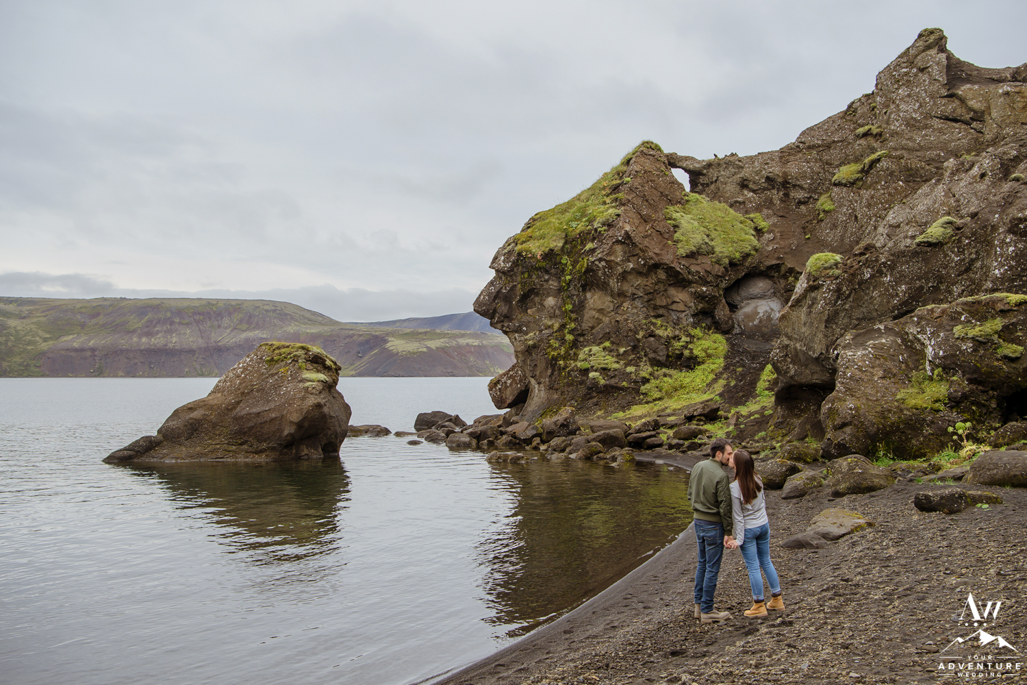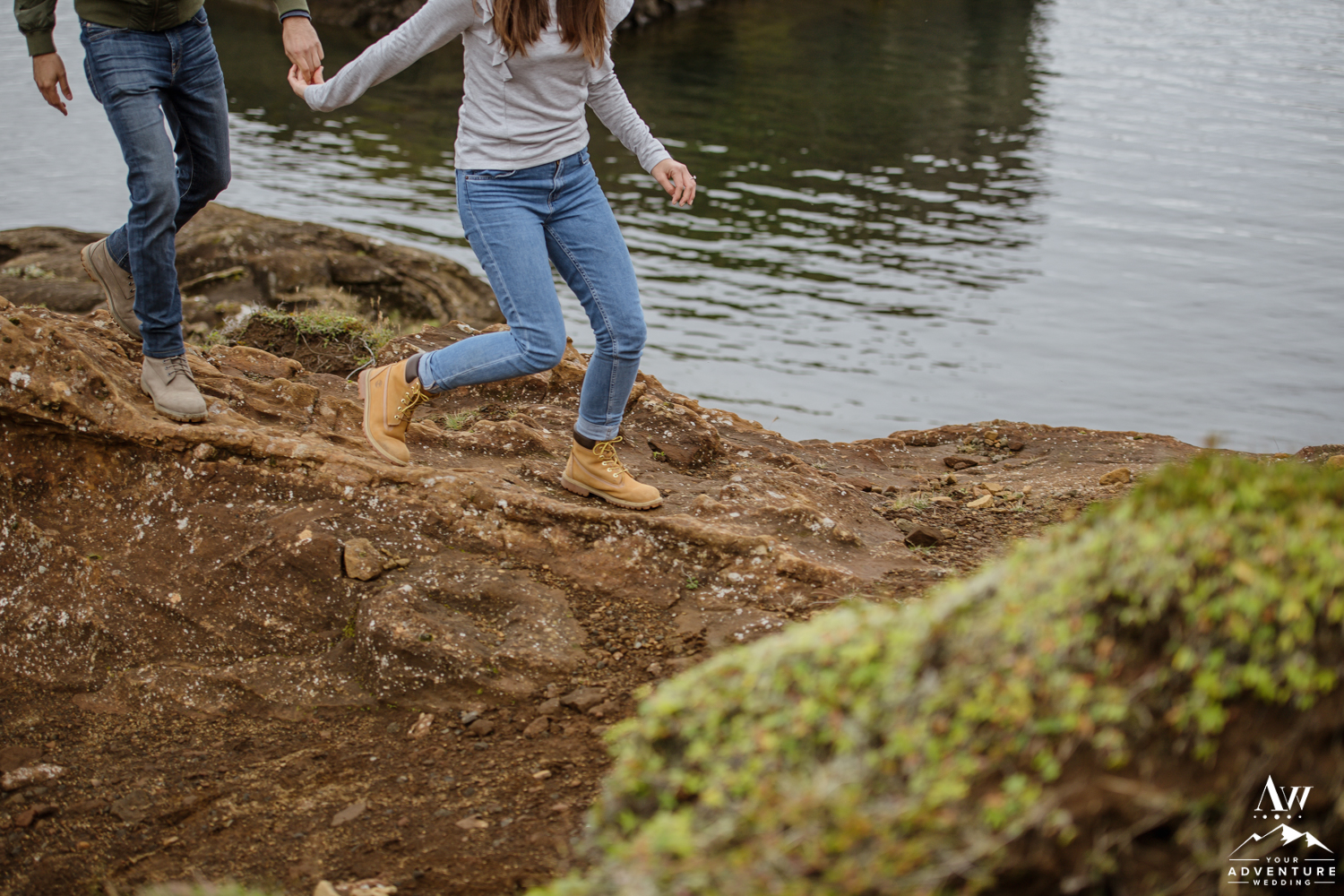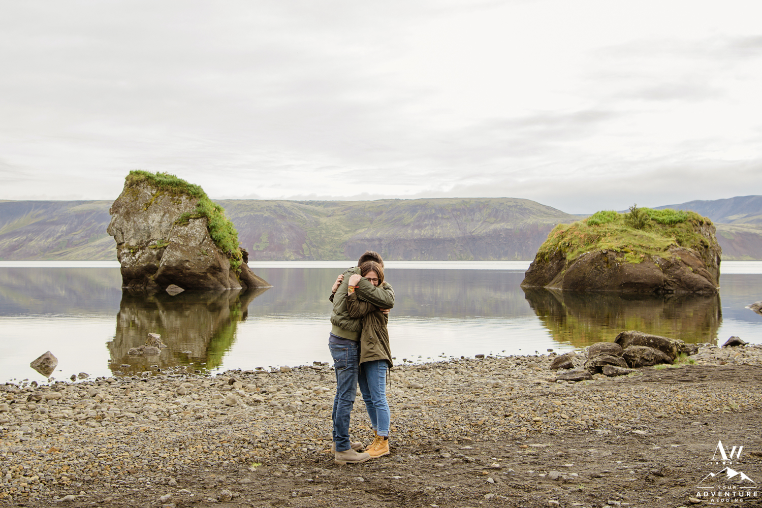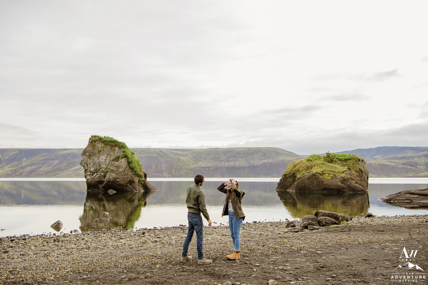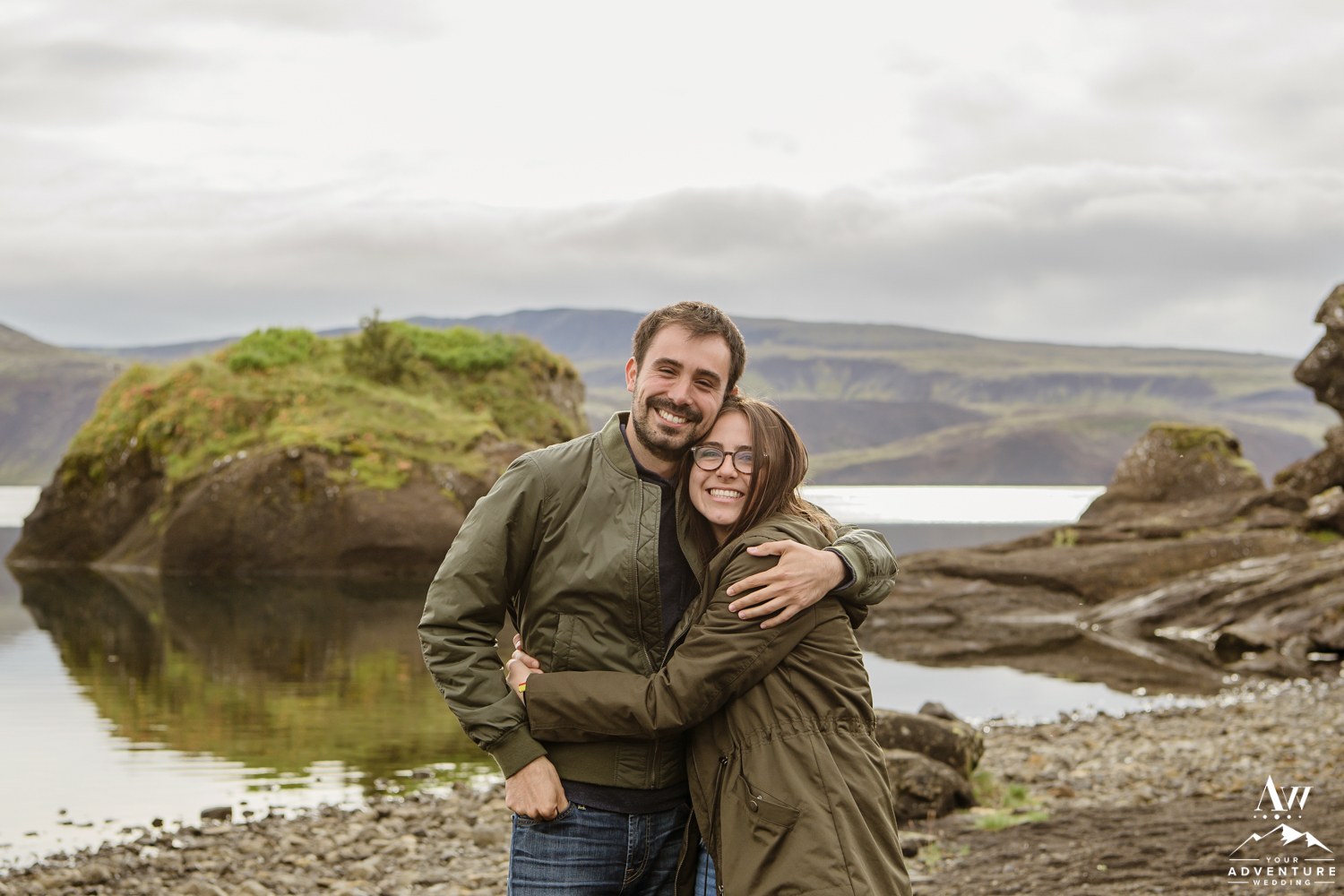 After plenty of private time and several glasses of bubbles, Gustavo was happy to let Natalia in on the last part of the surprise… A professional photography session with an Iceland wedding photographer! Wohoo! They explored the lakeside area together hand in hand and savored every freaking second of it!