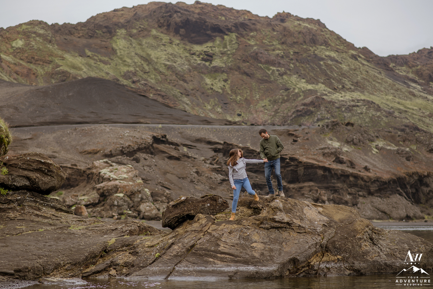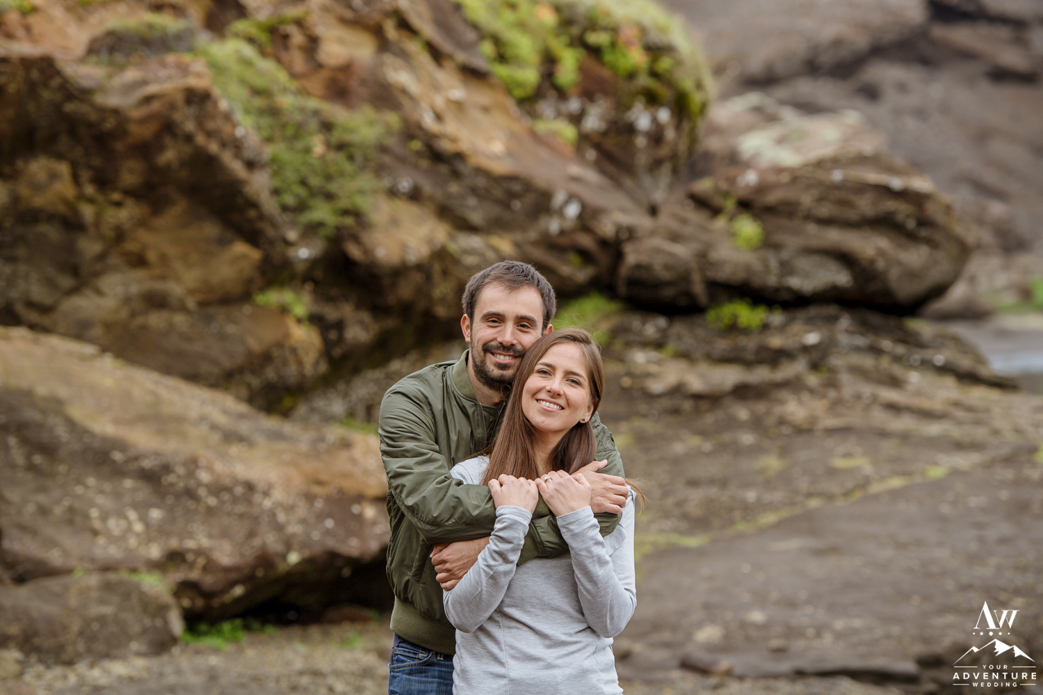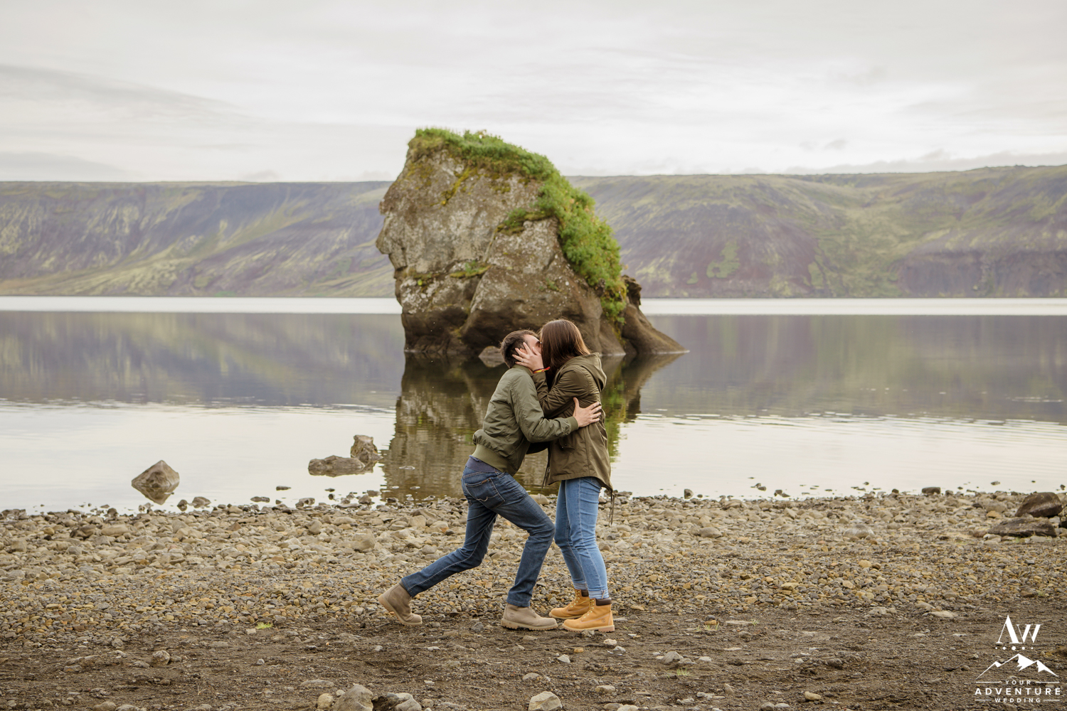 While “on the way” our Iceland proposal photographer said there was a stop that they thought they would enjoy, so they stopped, jumped out of the super jeep and headed down to some cool rock formations in the lake. While doing so, our Iceland wedding photographer mentioned they would just snap a few images as a keepsake for them. I think that caught Natalia off guard for the even bigger surprise of Gustavo proposing a lifetime of adventures together! Come along with us today to see their surprise proposal session with our Iceland Wedding Planner team!