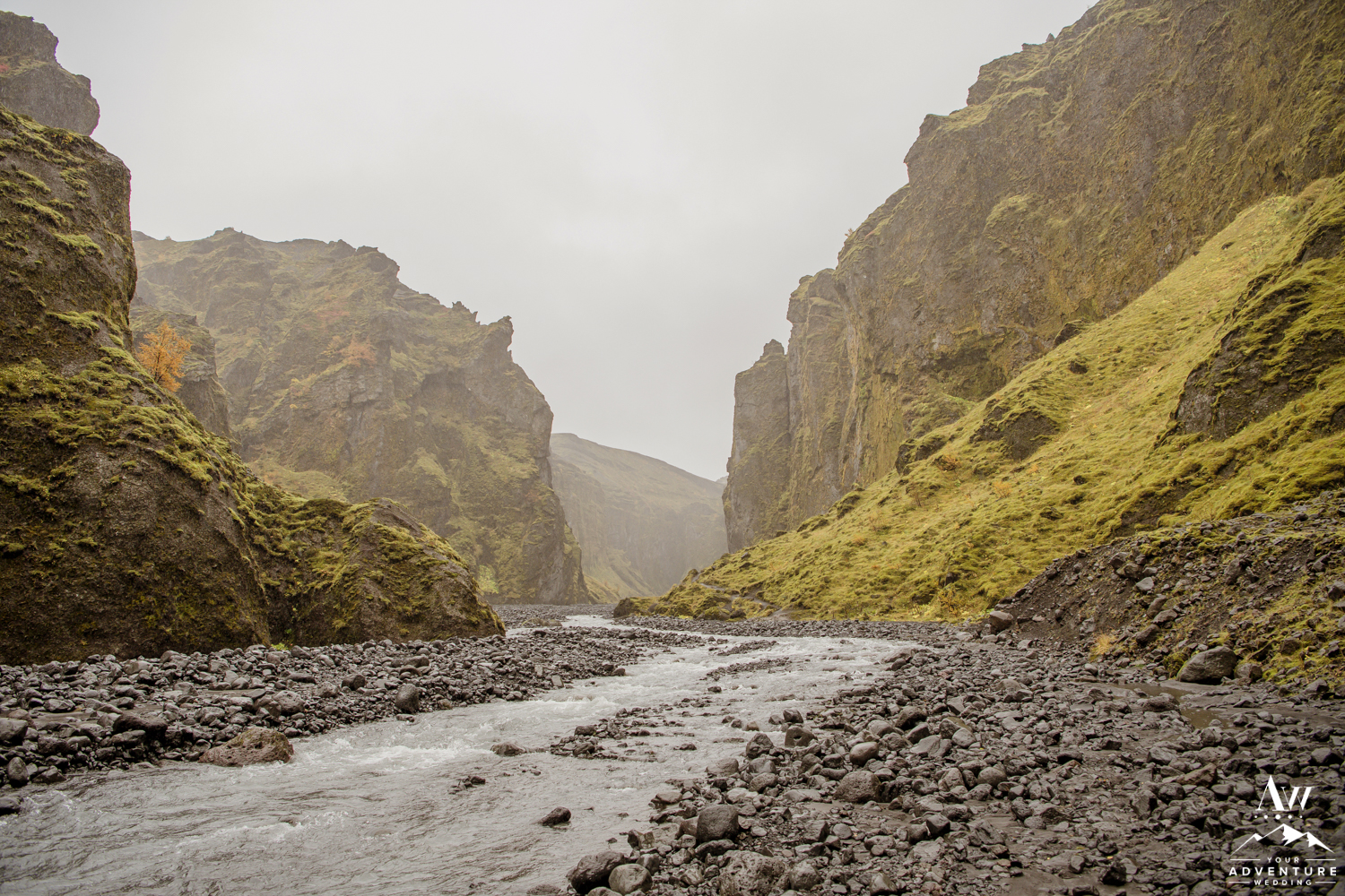As if 3 awesome hikes weren’t enough already by this point, these two adventured on another hike on their Iceland wedding day!  Their rock stars, seriously!  The last canyon they discovered together was a narrow darker river stream one where the entire time they hiked through the water.  The pay off at the end of this hike are waterfall(s).  It was incredible to see the play between the light and dark coming into the canyon for their Iceland wedding photos!  These two were fearless!