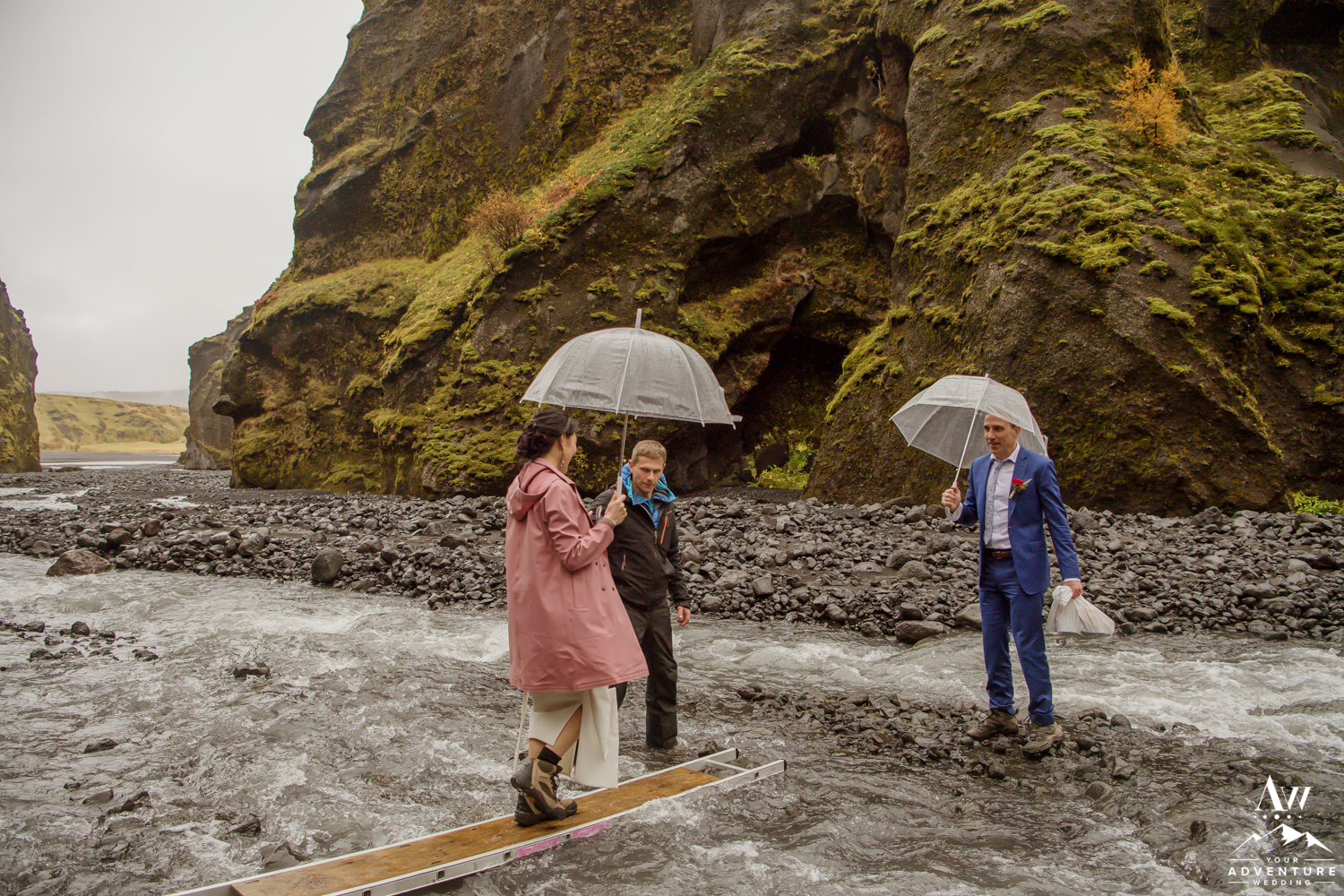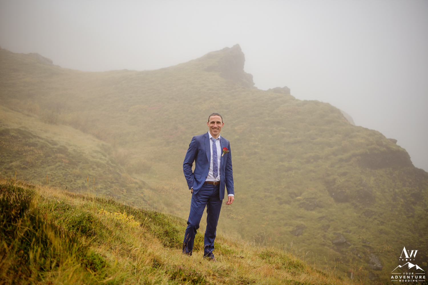 Our Iceland wedding photography team, made the call to stay at a lower point on the mountain so that there could still be some depth and textures in the wedding photos rather than being married in the midst of all white clouds and rain.  So about 30 minutes into the hike they ventured out to their secret mountain spot to hold their private Iceland wedding ceremony.  And it was sooooo freaking magical in the midst of the rain and fog!